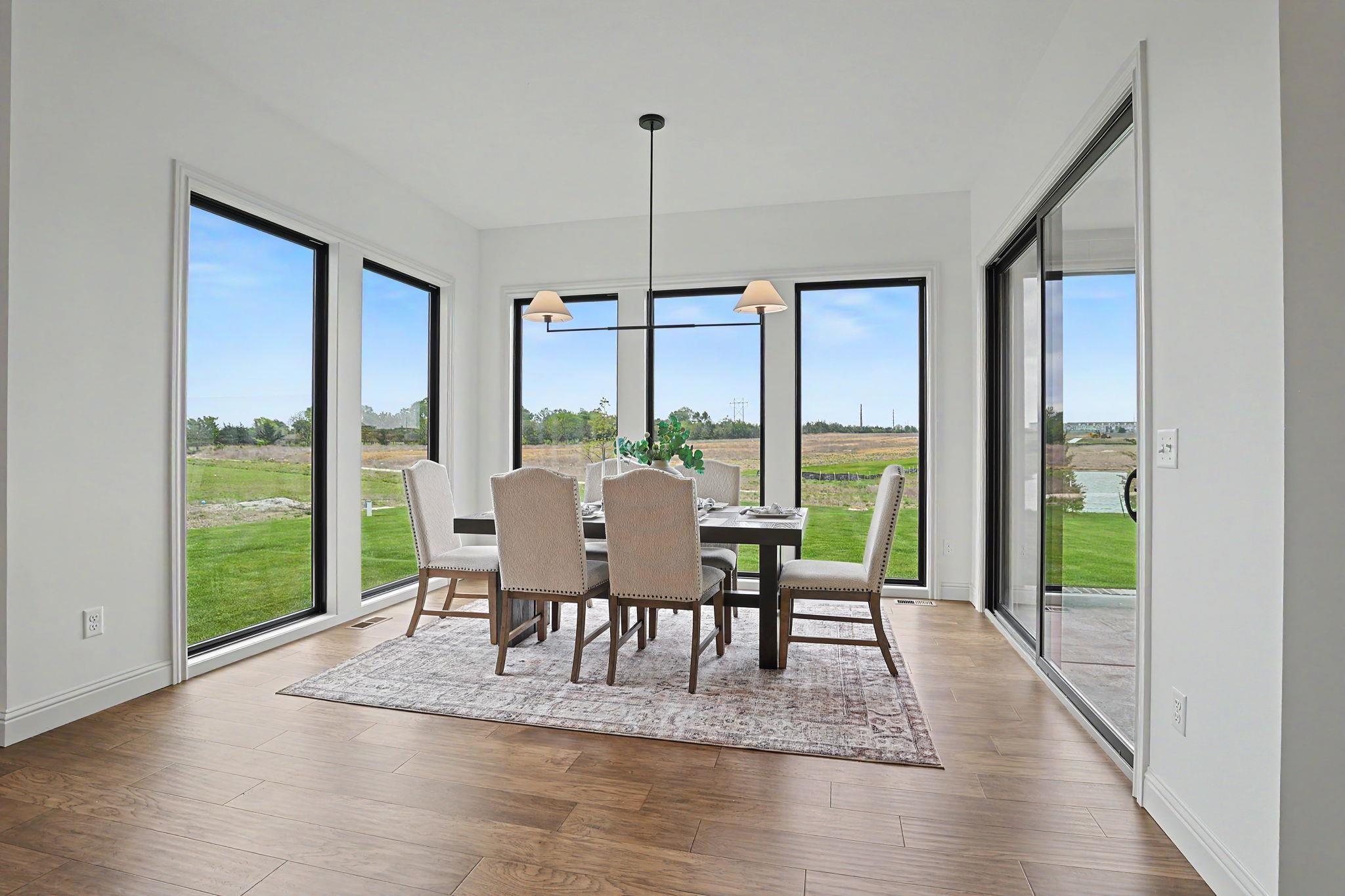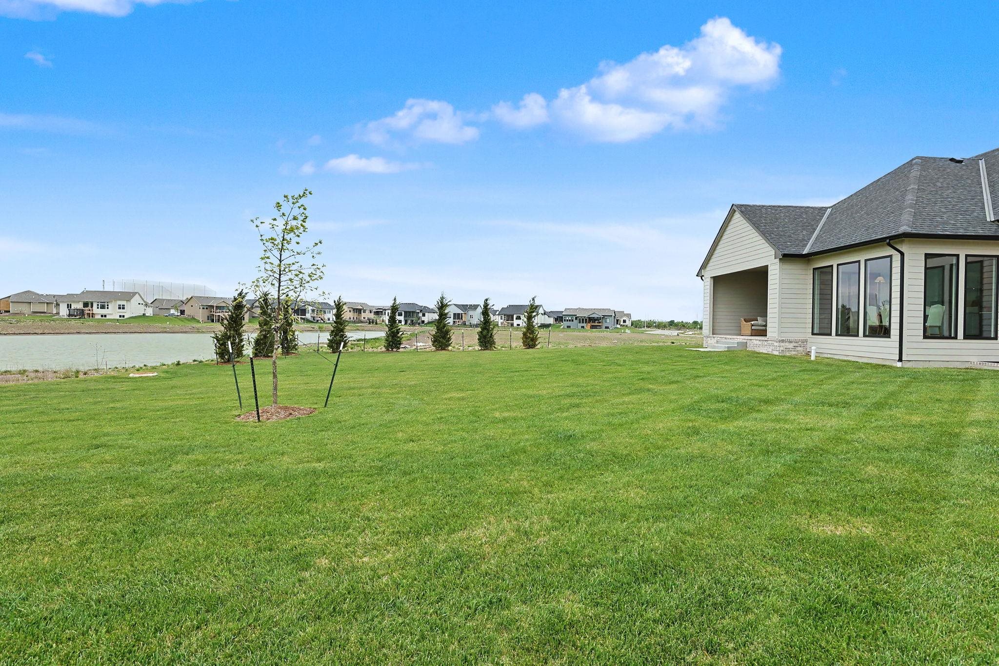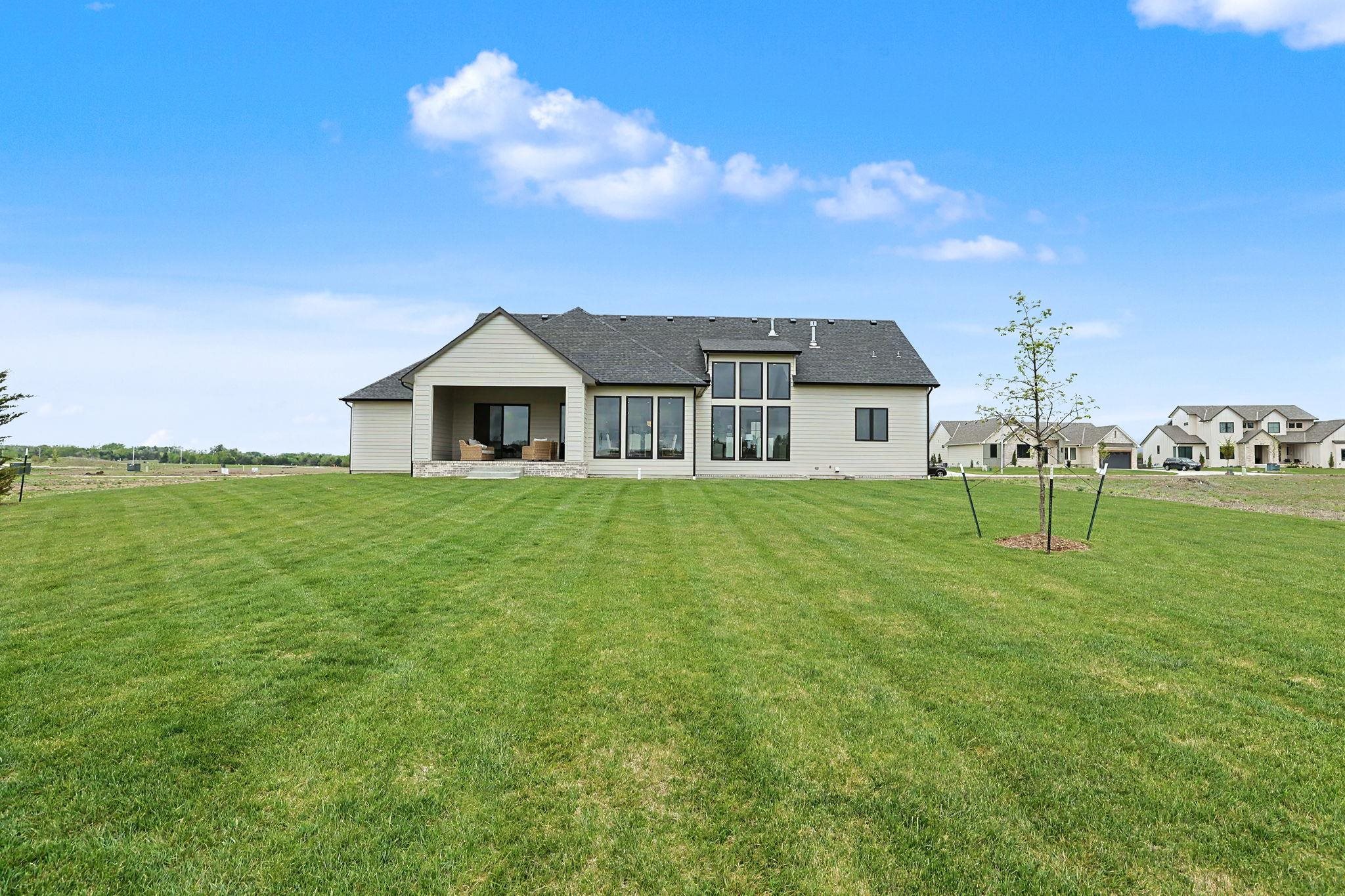 - Description: The Carolina Plan by Nies Homes – A Stunning Waterfront Retreat! Welcome to The Carolina Plan, a breathtaking new construction by renowned builder Nies Homes, perfectly positioned to take full advantage of serene water views. This exceptional residence combines modern elegance with thoughtful functionality, creating the ideal place to call home. Boasting 5 spacious bedrooms, 4 full bathrooms, and an additional half bath, this home offers ample room for both everyday living and entertaining. The main level features a home office near the primary suite, perfect for remote work or quiet reading. Floor-to-ceiling windows flood the main living areas with natural light and showcase the picturesque lake just beyond your backyard. The kitchen includes a generous working pantry, seamlessly connected to a larger pantry. The inviting dining area is a perfect for hosting gatherings with family and friends. Step outside to the covered and enclosed lanai, where you can relax and enjoy privacy and peaceful views of the water. The luxurious primary suite on the main level features a spa-like bath with a soaking tub, an expansive walk-in shower, and elegant finishes throughout. Downstairs, the basement offers an abundance of living space, including a large rec room, a separate game room, two additional bedrooms, two full baths, and a wet bar—ideal for entertaining or multigenerational living. Car enthusiasts and storage seekers alike will appreciate the unique four-car garage, configured as two separate two-car garages for added convenience and flexibility. Don’t miss your chance to own this one-of-a-kind home that blends stunning architecture with everyday comfort. Schedule your private tour today and experience the best in luxury lakeside living! Note: Taxes are based on current Sedgwick County records. Specials have not yet been fully assessed. Show all description