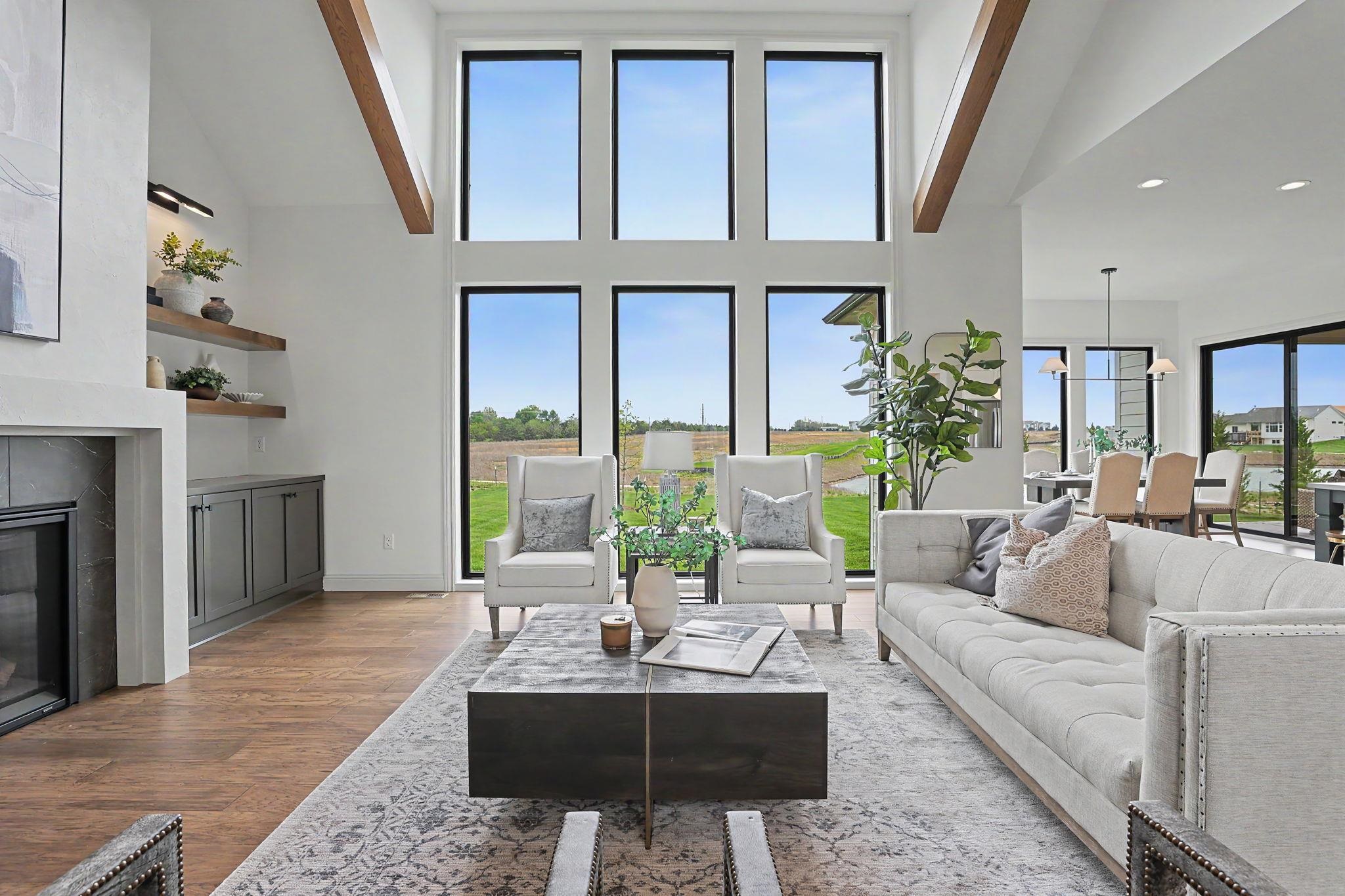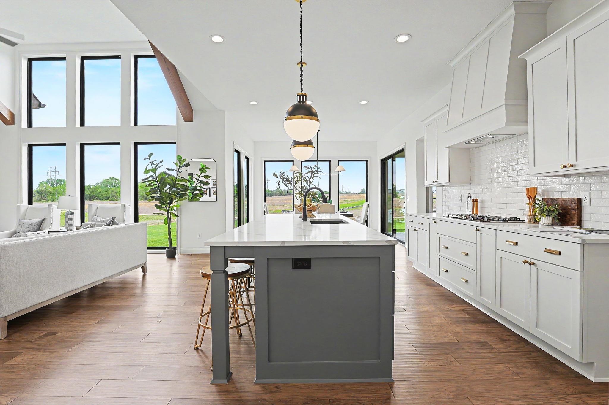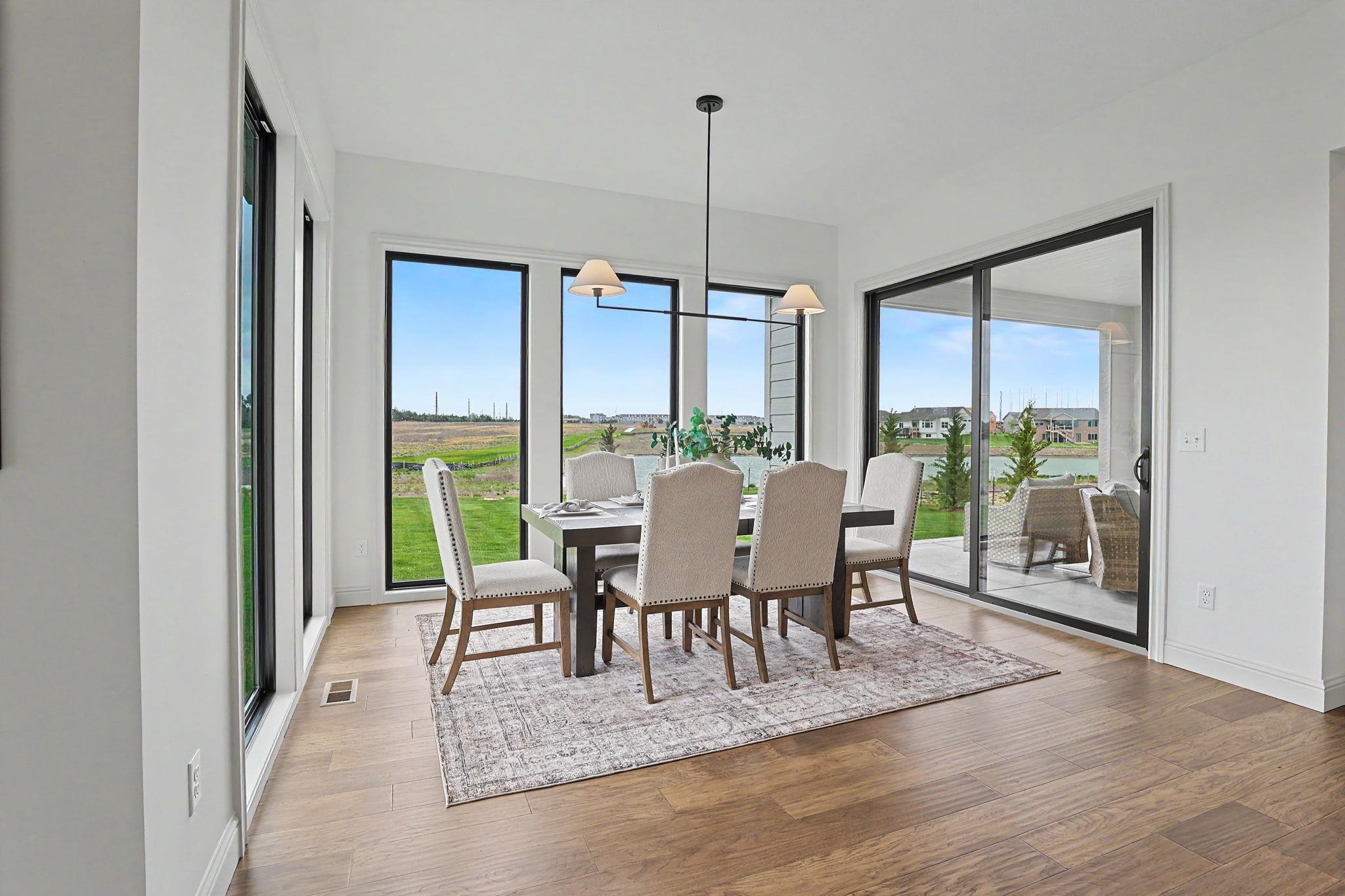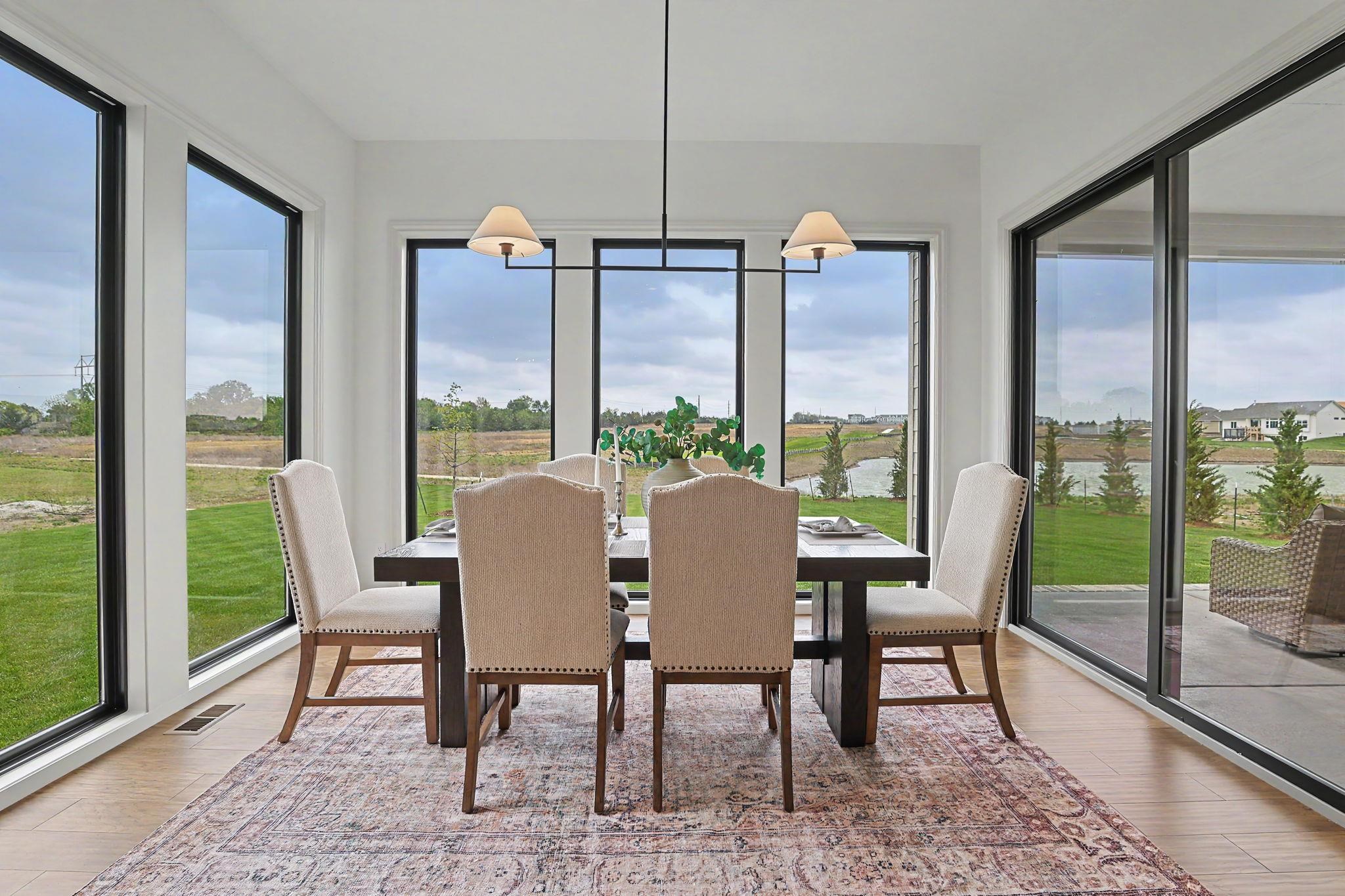 - Description: The Carolina Plan by Nies Homes – A Stunning Waterfront Retreat! Welcome to The Carolina Plan, a breathtaking new construction by renowned builder Nies Homes, perfectly positioned to take full advantage of serene water views. This exceptional residence combines modern elegance with thoughtful functionality, creating the ideal place to call home. Boasting 5 spacious bedrooms, 4 full bathrooms, and an additional half bath, this home offers ample room for both everyday living and entertaining. The main level features a home office near the primary suite, perfect for remote work or quiet reading. Floor-to-ceiling windows flood the main living areas with natural light and showcase the picturesque lake just beyond your backyard. The kitchen includes a generous working pantry, seamlessly connected to a larger pantry. The inviting dining area is a perfect for hosting gatherings with family and friends. Step outside to the covered and enclosed lanai, where you can relax and enjoy privacy and peaceful views of the water. The luxurious primary suite on the main level features a spa-like bath with a soaking tub, an expansive walk-in shower, and elegant finishes throughout. Downstairs, the basement offers an abundance of living space, including a large rec room, a separate game room, two additional bedrooms, two full baths, and a wet bar—ideal for entertaining or multigenerational living. Car enthusiasts and storage seekers alike will appreciate the unique four-car garage, configured as two separate two-car garages for added convenience and flexibility. Don’t miss your chance to own this one-of-a-kind home that blends stunning architecture with everyday comfort. Schedule your private tour today and experience the best in luxury lakeside living! Note: Taxes are based on current Sedgwick County records. Specials have not yet been fully assessed. Show all description