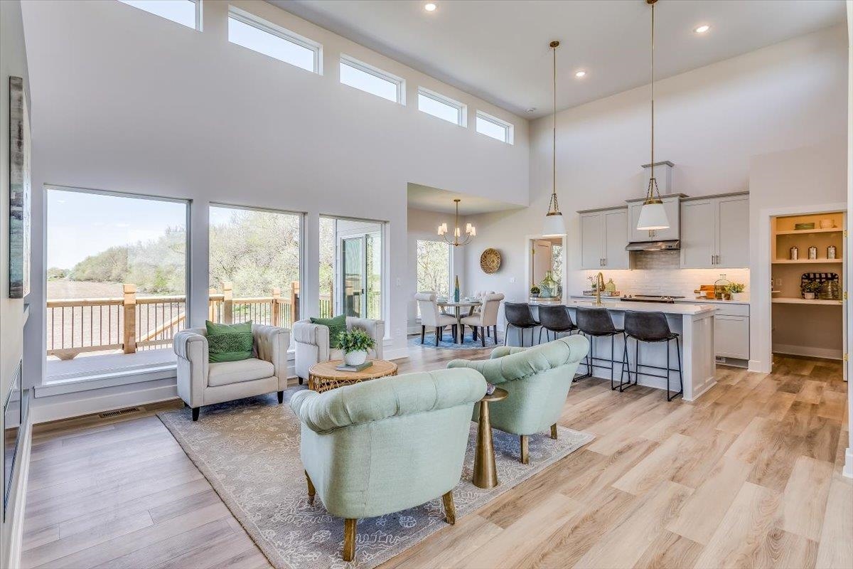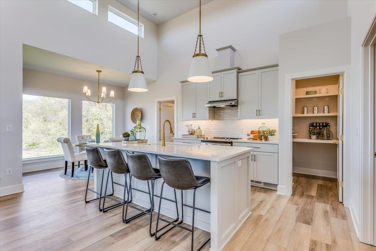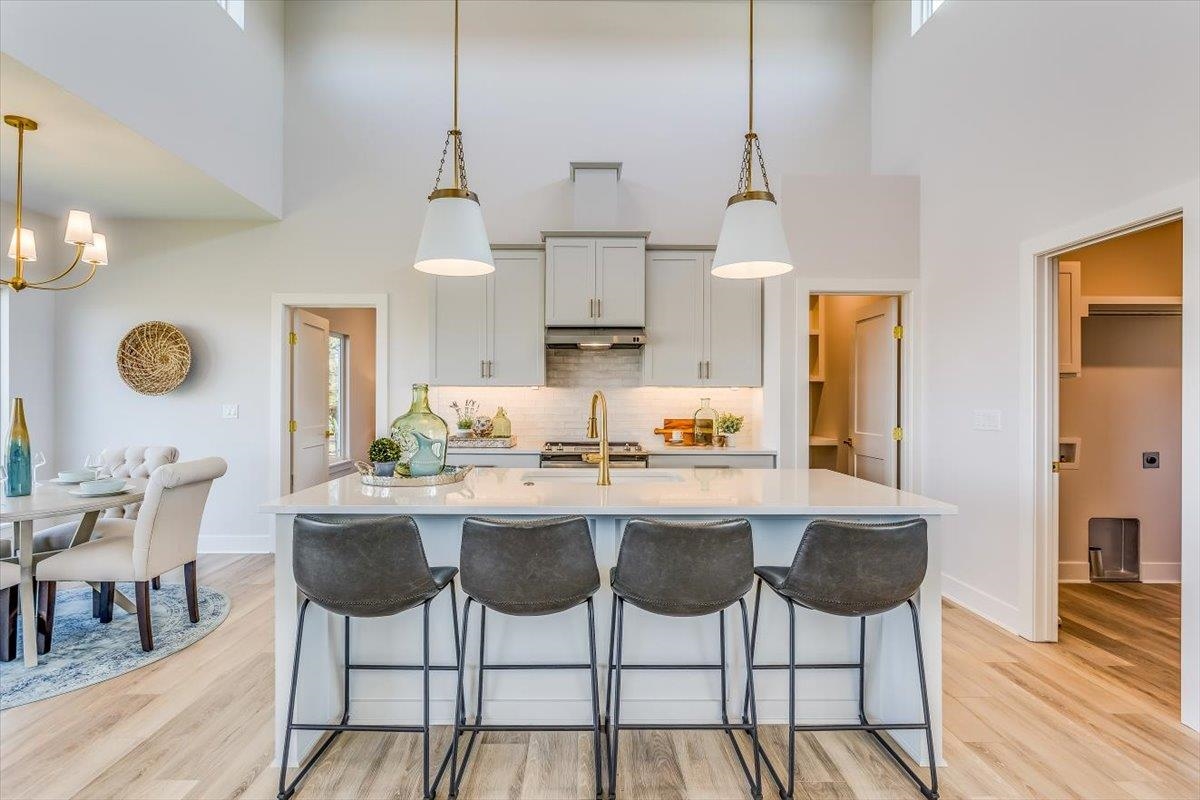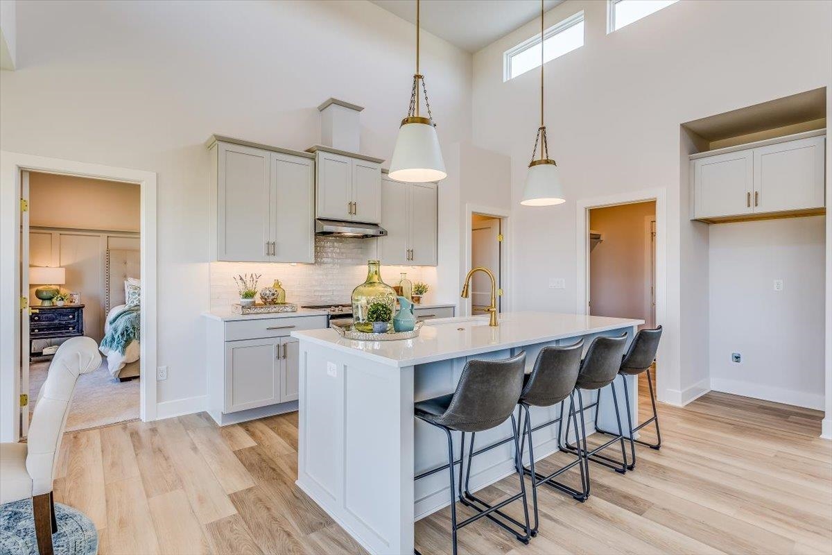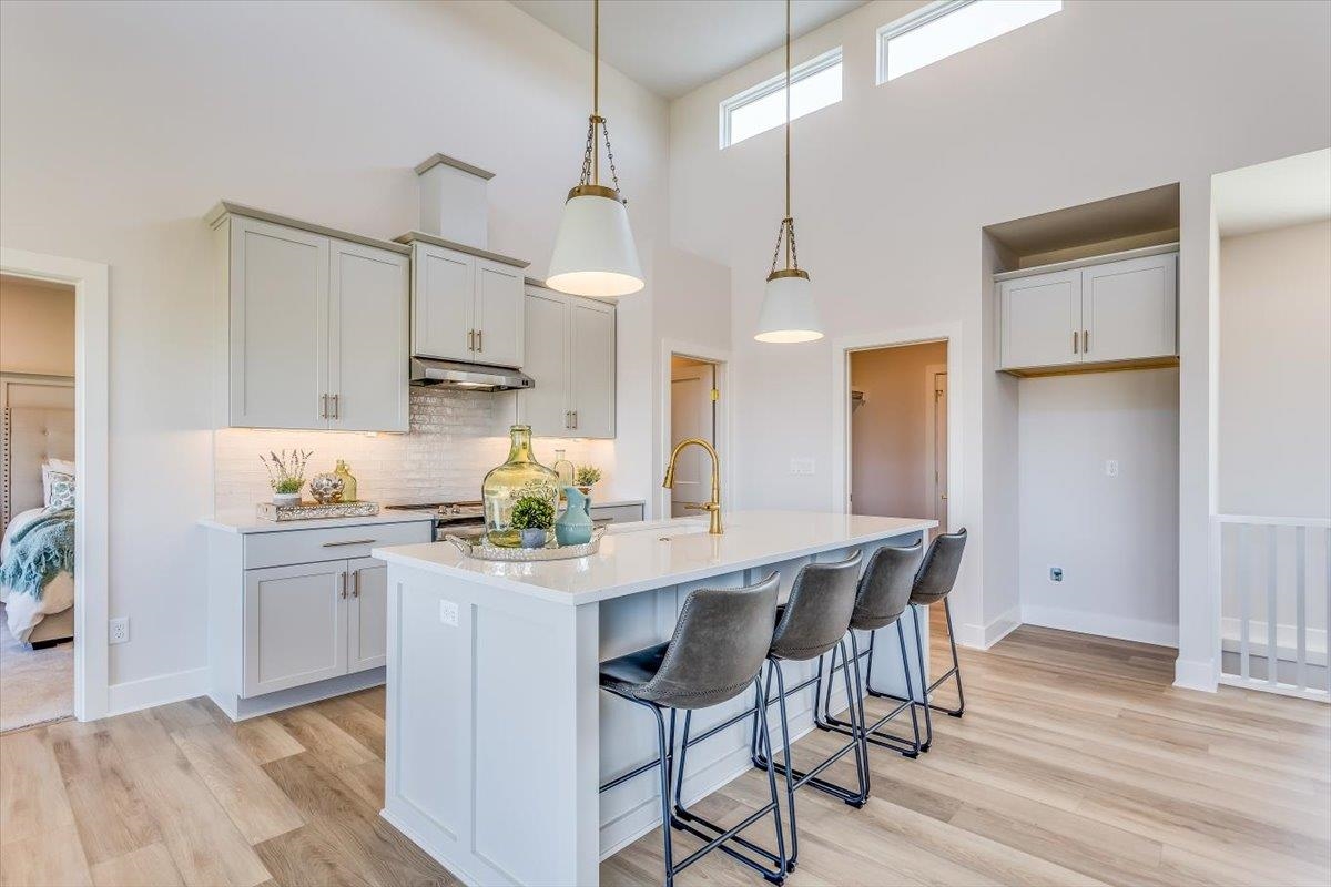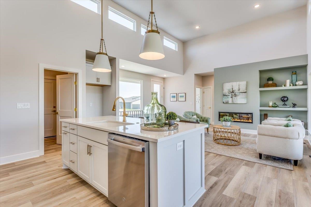 - Description: Ultra Modern Cambridge plan by Paul Gray Homes. Functional and practical split bedroom home. 5 bedroom, 3 bath 3 car garage with open kitchen, living dining combo and 14 foot ceilings with high transom windows! Kitchen Island overlooks dining and living space with plenty of space to entertain. Kitchen features a walk-in pantry with plenty of storage and space to move around while cooking. Living room features access to covered deck overlooking back yard. Both kids rooms are on the other side of home. Master bedroom overlooks wooded back yard. Master bath has large shower with his and her vanities with nice size walk-in closet and custom walk in tile shower. Basement is finished with family room, bathroom and 2 more bedrooms Custom landscaping and sprinklers are included! Home is new construction and taxes have not been levied yet, you must call county to get accurate property tax info. All information deemed reliable, but not guaranteed. Show all description