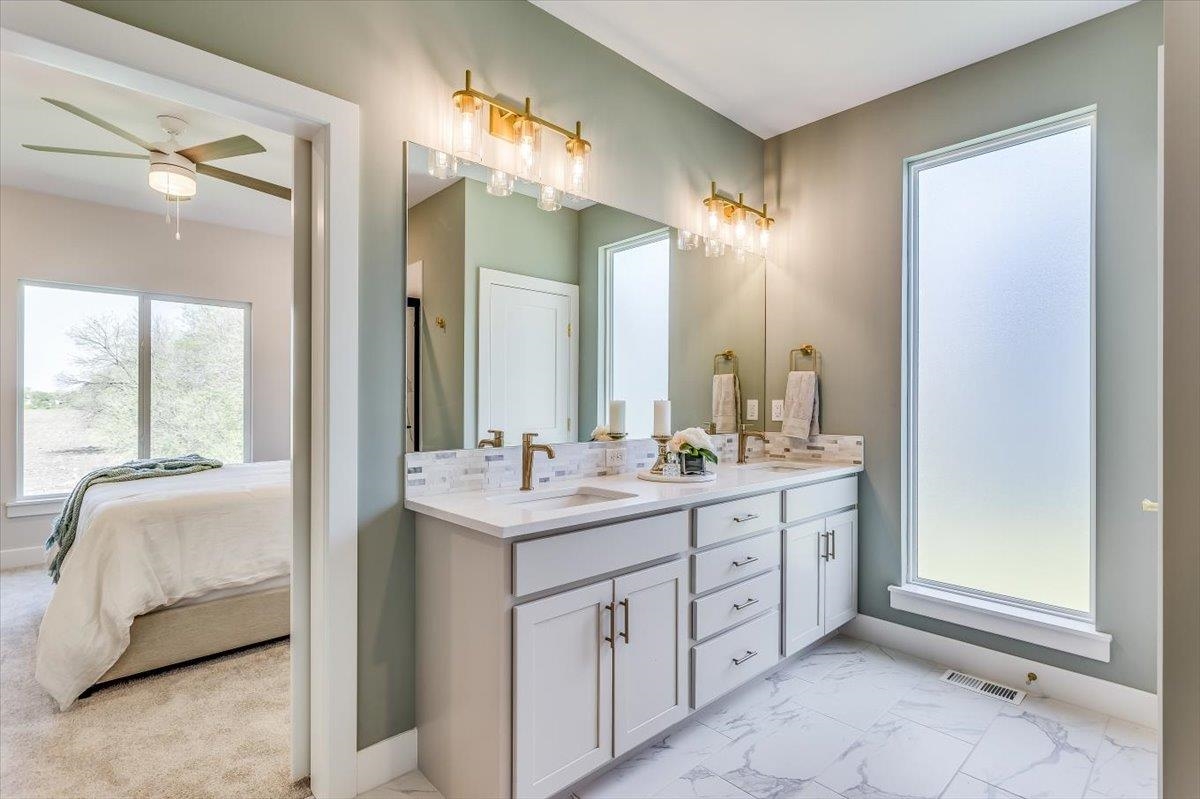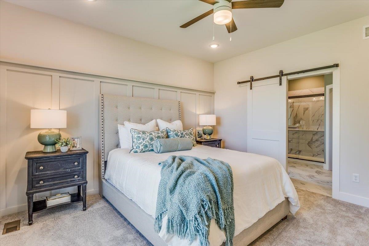 - Master Bedroom: Master Bdrm on Main Level, Split Bedroom Plan, Master Bedroom Bath, Shower/Master Bedroom, Two Sinks, Quartz Counters, Water Closet