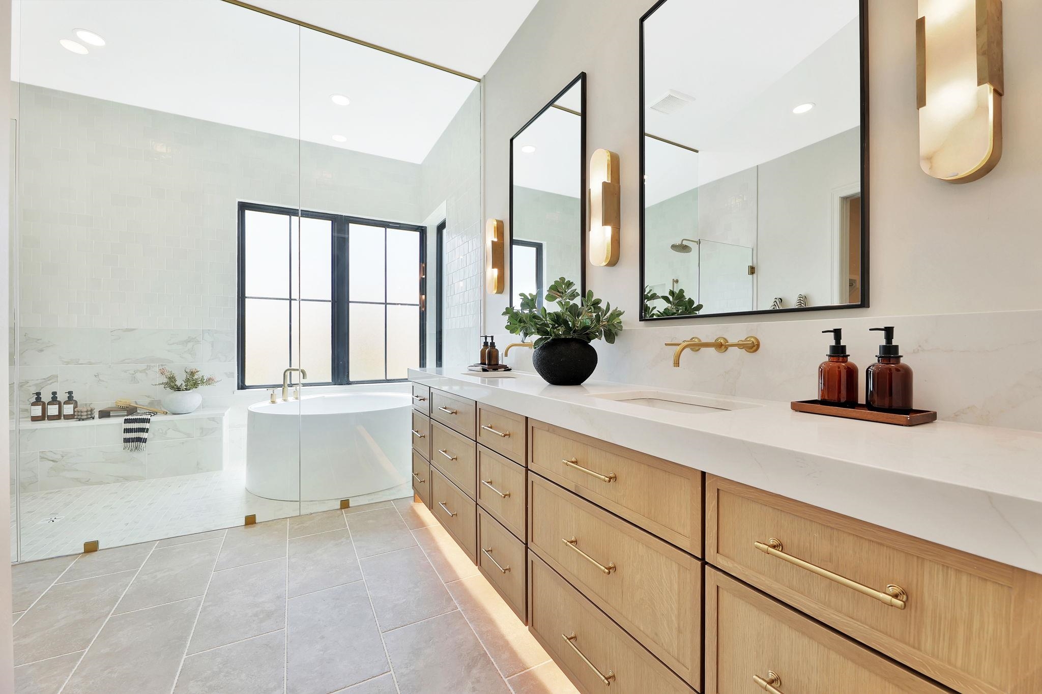 - Master Bedroom: Master Bdrm on Main Level, Split Bedroom Plan, Master Bedroom Bath, Tub/Master Bedroom, Sep. Tub/Shower/Mstr Bdrm, Two Sinks, Granite Counters, Quartz Counters, Water Closet