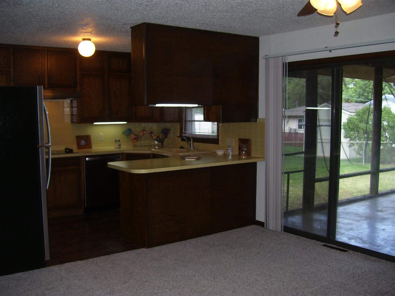 - Description: Very, very nice home with extra large rooms. This home has been updated with all new stainless steel appliances, new carpet, refinished hardwood floors. Kitchen and bathroom have custom cabinets. Beautiful woodwork throughout this home. Wood burning fireplace. Freshly painted inside and outside. Master bedroom is very large with large closets. Screened-in patio overlooks large fenced backyard with a utility shed. This home also has a storm/tornado cellar with plenty of extra storage room, LABOR DAY SPECIAL 119850 UNTIL SEPT 5TH THEN PRICE GOES BACK TO 124850 Show all description
