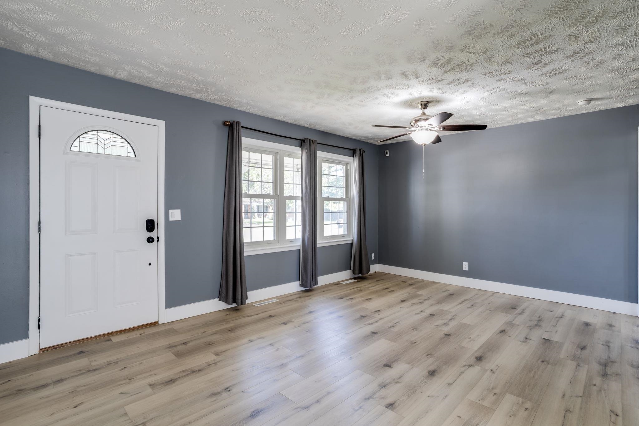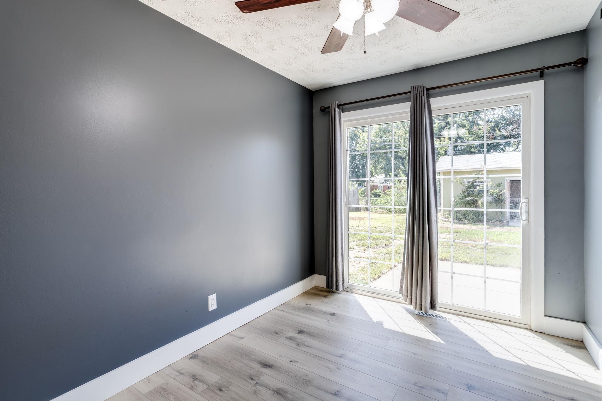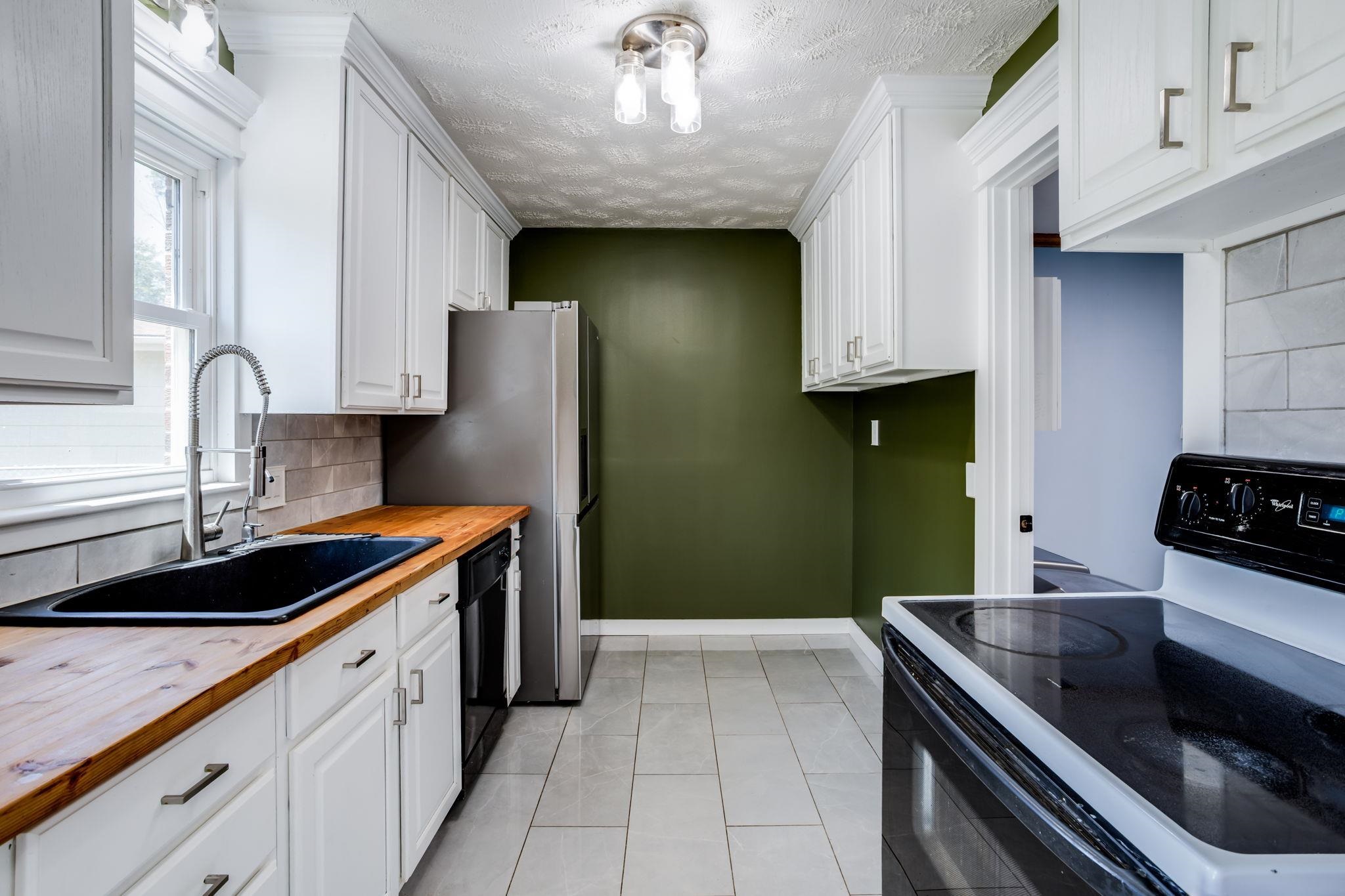 - Description: Attractive, updated luxury vinyl flooring throughout all three bedrooms, living room and dining area. Kitchen features butcher block countertops and tile flooring. All appliances, including washer and dryer will stay! Bath is also nicely updated. Vinyl windows throughout. Full brick exterior. Fully fenced back yard. Very nice, spacious shed out back with electricity. Located on a well kept, quiet street. This is a great value! Show all description