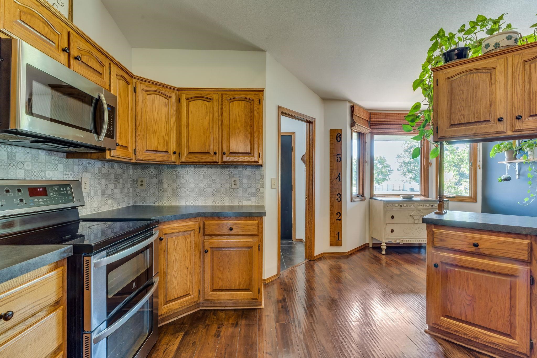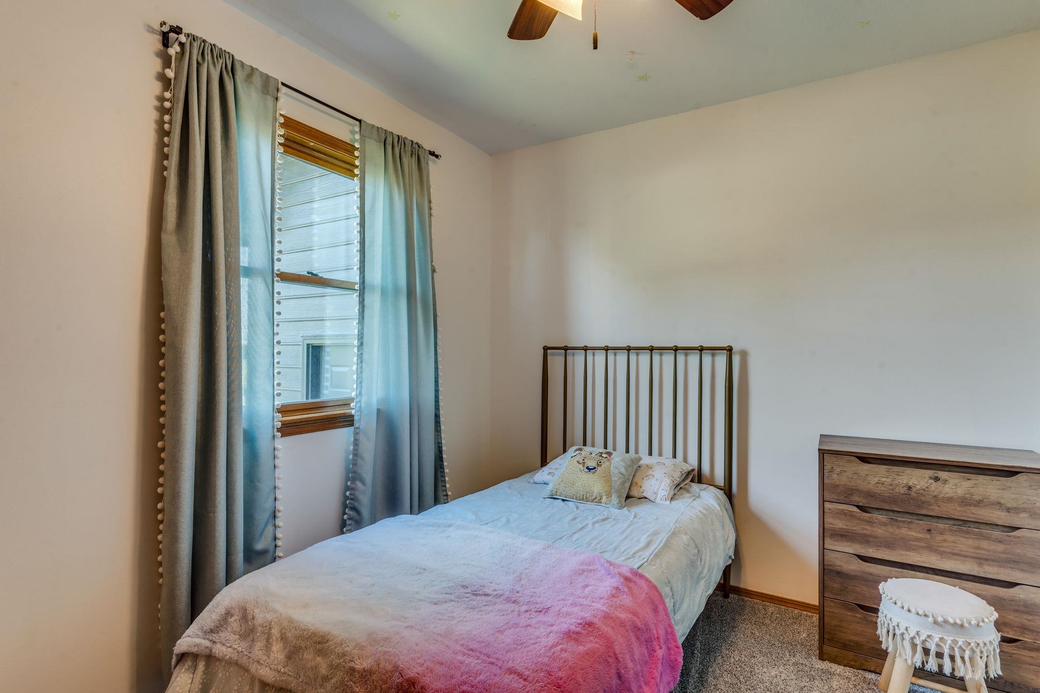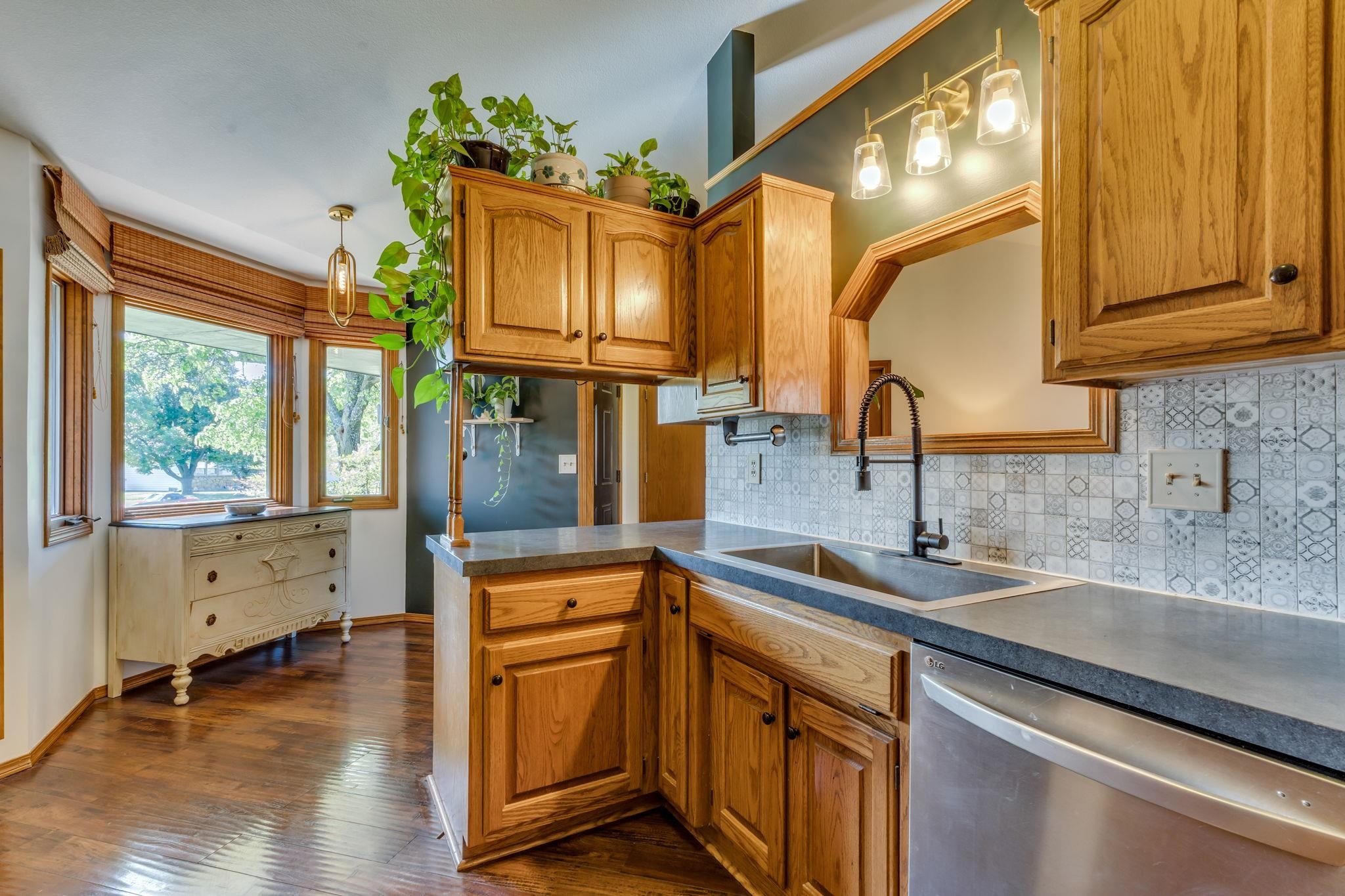 - Description: Don't miss this updated 4 BR, 3 BA home with 4 year old ROOF! New roofs are a huge bonus these days. Master bath and other main floor bath have been remodeled. Many kitchen updates. There is an extra room in basement that could be 5th non conforming bedroom, office, craft roof, exercise area etc. Gas fireplace in basement family room for cozy winter days. Cute home with rebuilt covered deck overlooking large fully fenced backyard. Home exterior completely painted in May 25. This will not last long so schedule your tour today. Show all description