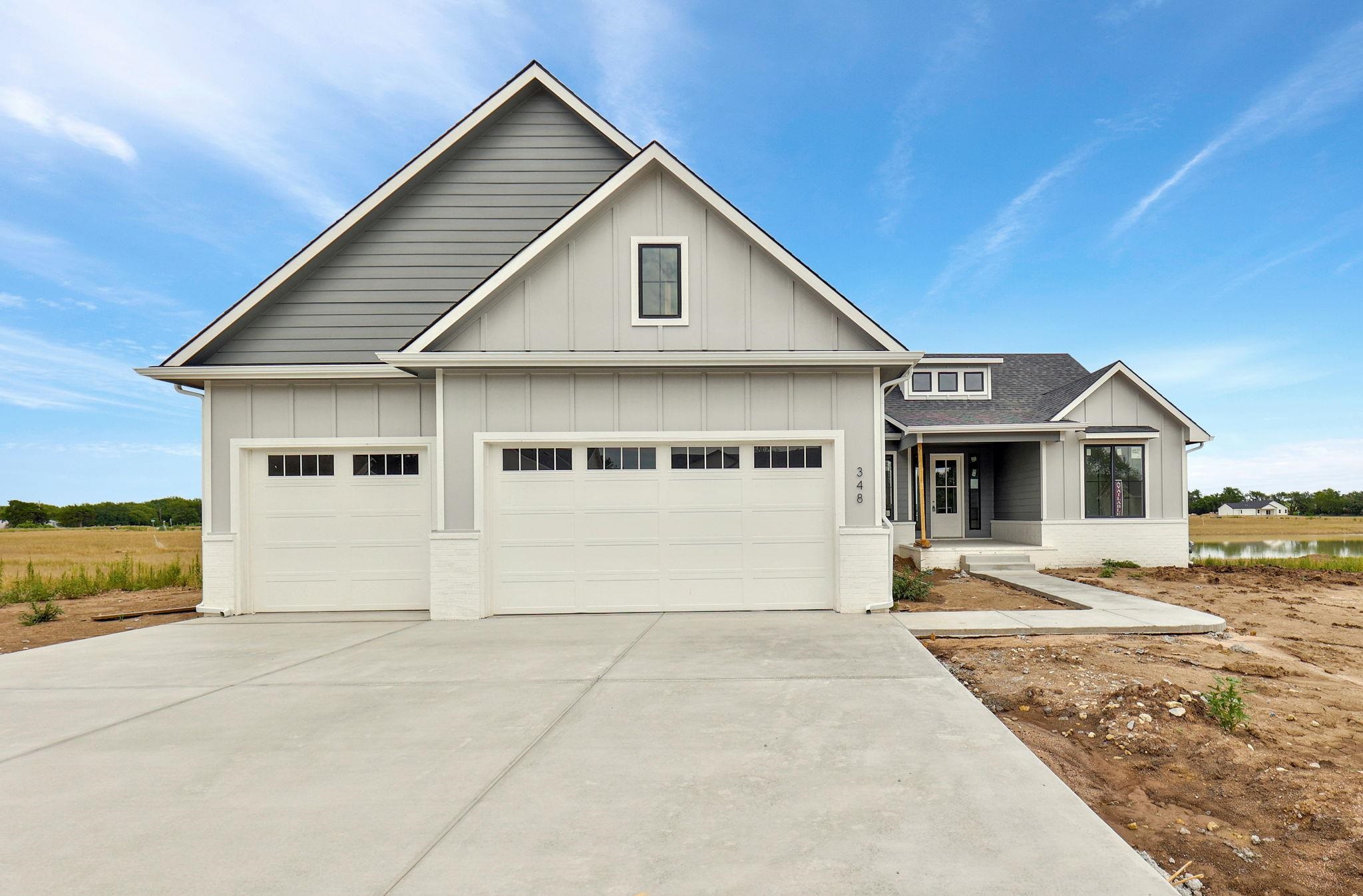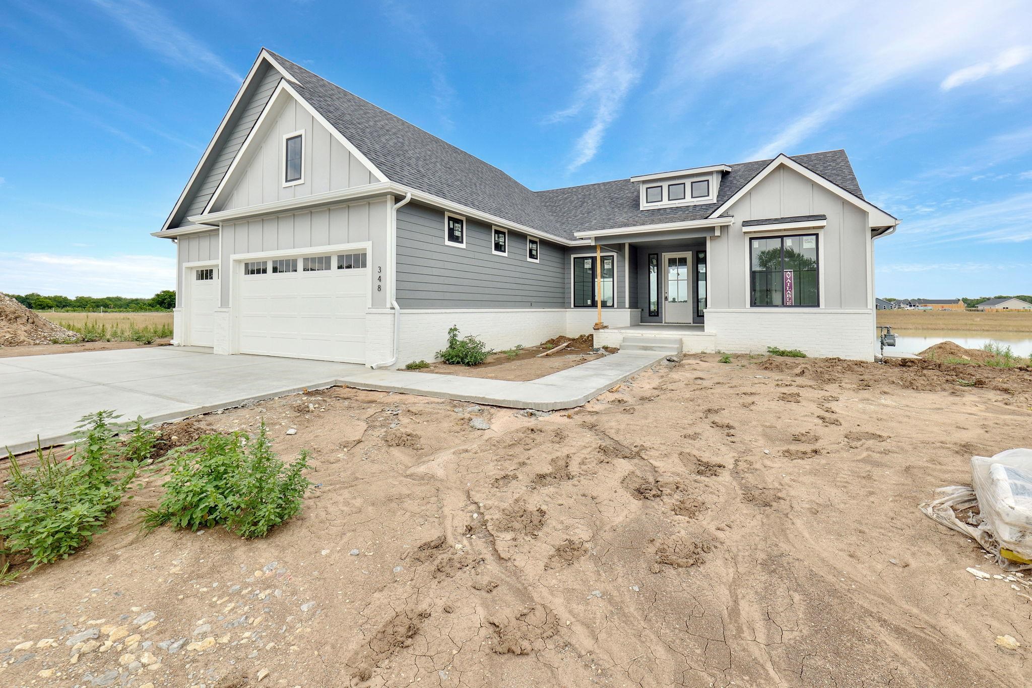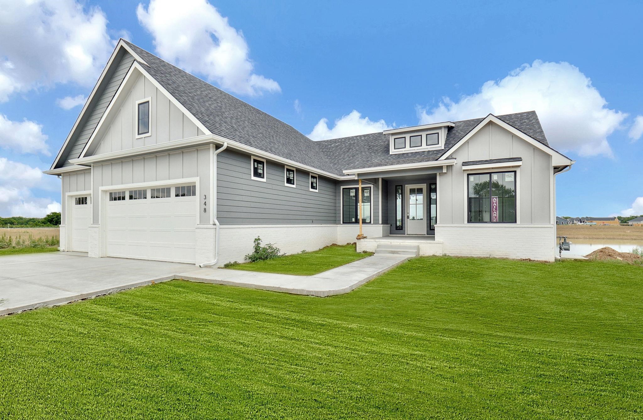 - Description: Newly constructed residence in the desirable Sterling East subdivision, offering a beautiful contemporary lakefront lot. Sterling East PROMOTION is up to 15 thousand dollars in buyer incentives on any custom or spec home under construction by March 1 2025!! This home features custom upgrades throughout, including stunning granite countertops and upgraded kitchen cabinets. Enjoy the luxurious walk-in shower with a glass door. The well-designed split bedroom floor plan provides ample privacy, and the spacious three-car garage offers plenty of storage. Relax on the covered deck overlooking the serene lake. Additional features include a sprinkler system and sod for the perfect outdoor space. Will be fully completed by 8/5/25! Show all description