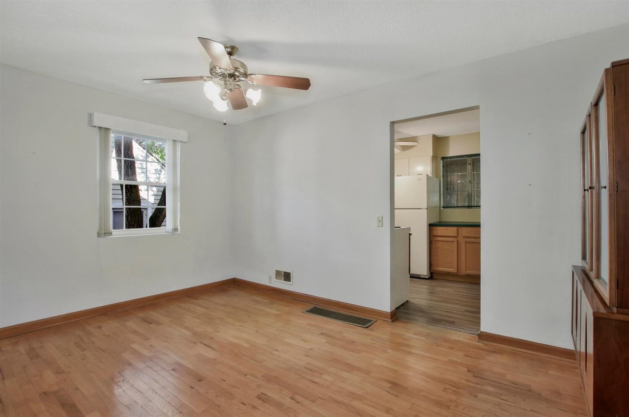 - Description: This is truly a remarkable home. This two bedroom, two bath home sits on a large corner lot with an oversized two car garage attached to the house through a breezeway/sitting room. Even with the added garage, there is still plenty of room for a yard and there is a nice shed for storing outside things. Inside, the cozy kitchen includes a breakfast booth along with plenty of storage space in the U-shaped kitchen. The formal dining room has been opened to the living room for a more spacious feel. The two bedrooms are good sized and have the original hardwood floors. The partially finished basement features a large family room and a full bath. The unfinished part of the basement provides for a workroom, workout room, craft room or storage. The truly unique part of this house, though, is mostly hidden. You'll get a sense of it where the wall was removed from between the living room and the dining room. The walls in this house are all concrete, inside and out. This provides excellent sound proofing and also lower utility costs. See this one for yourself to believe it. I know I "knocked" on more than a few walls as I walked through! Show all description