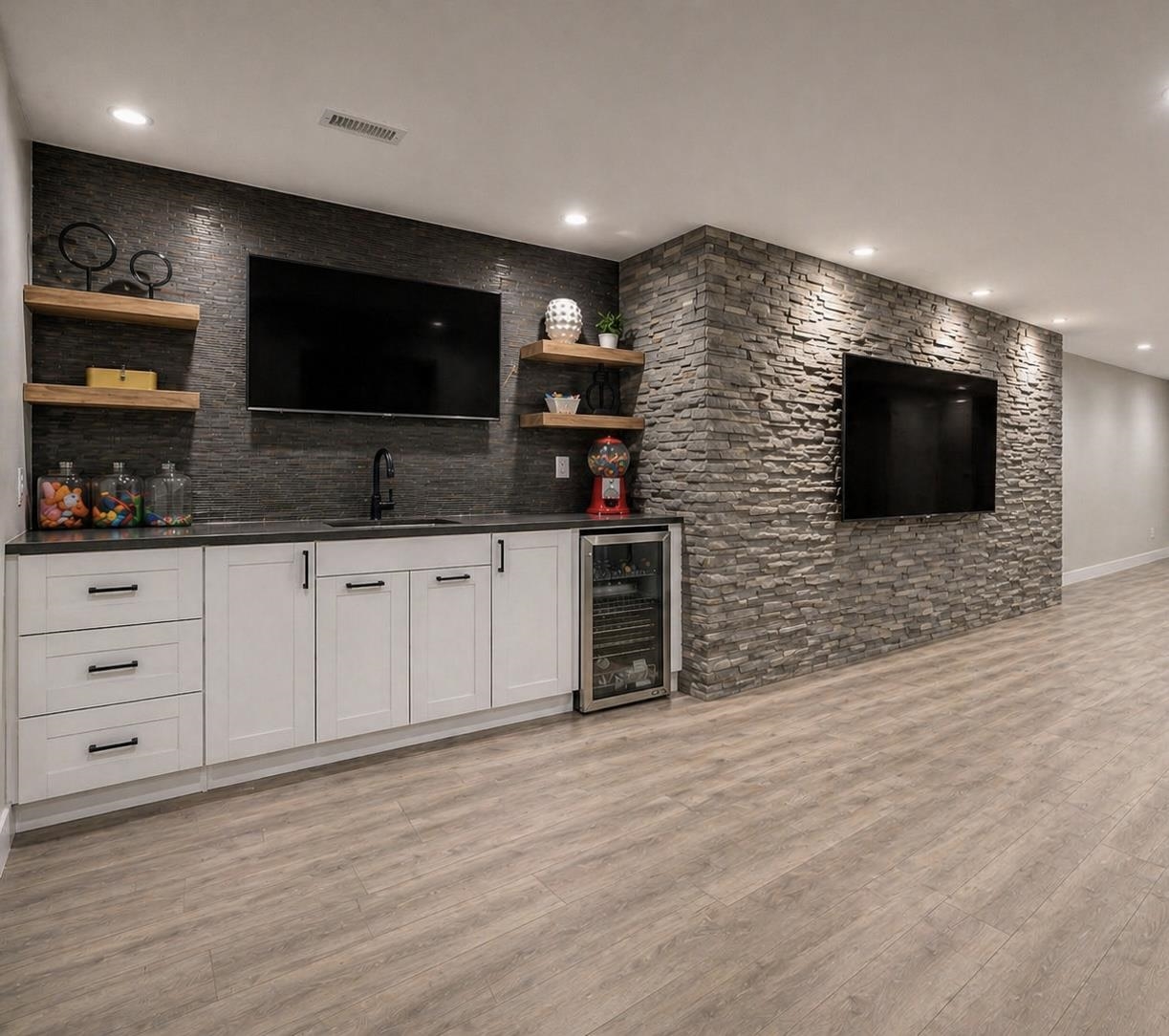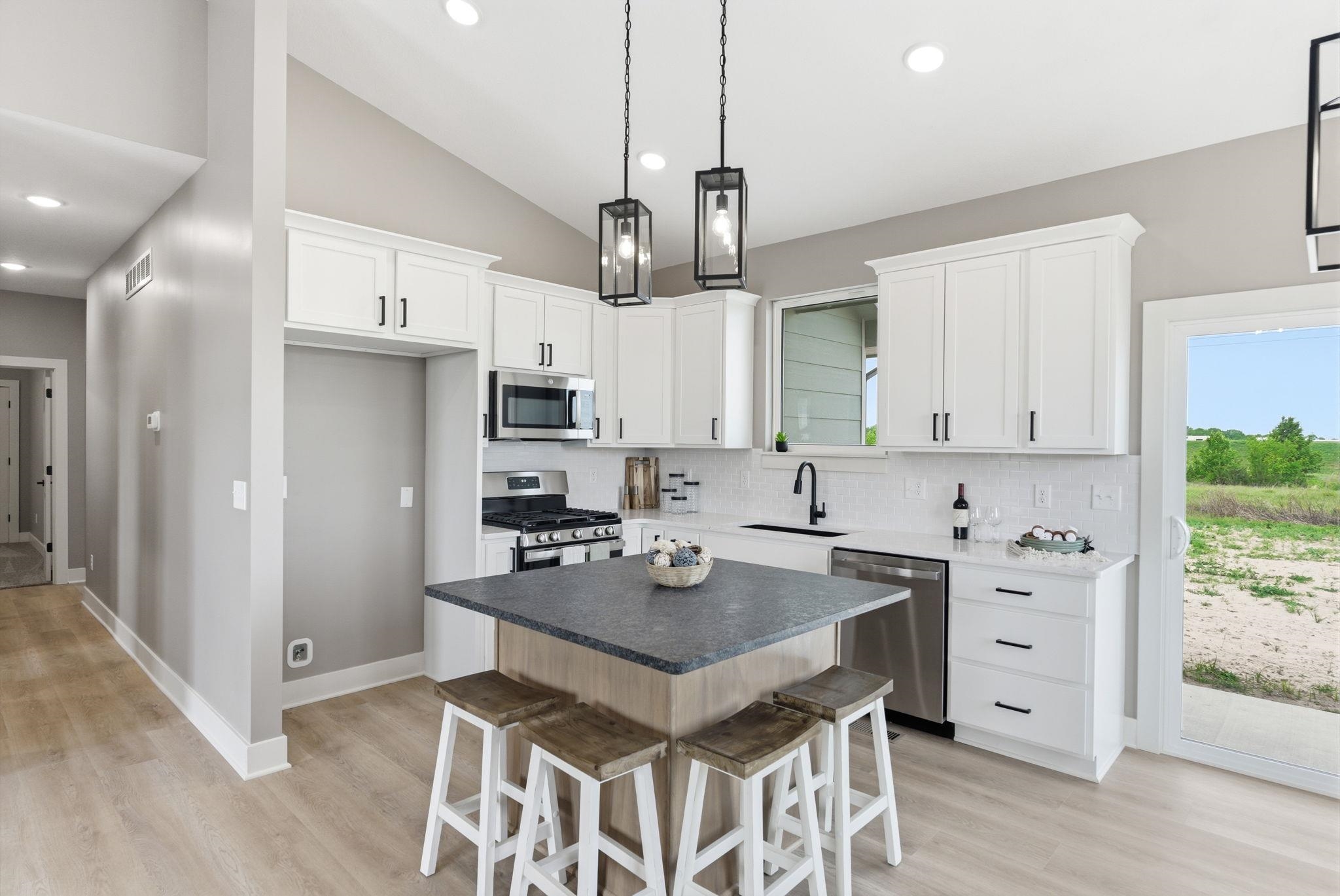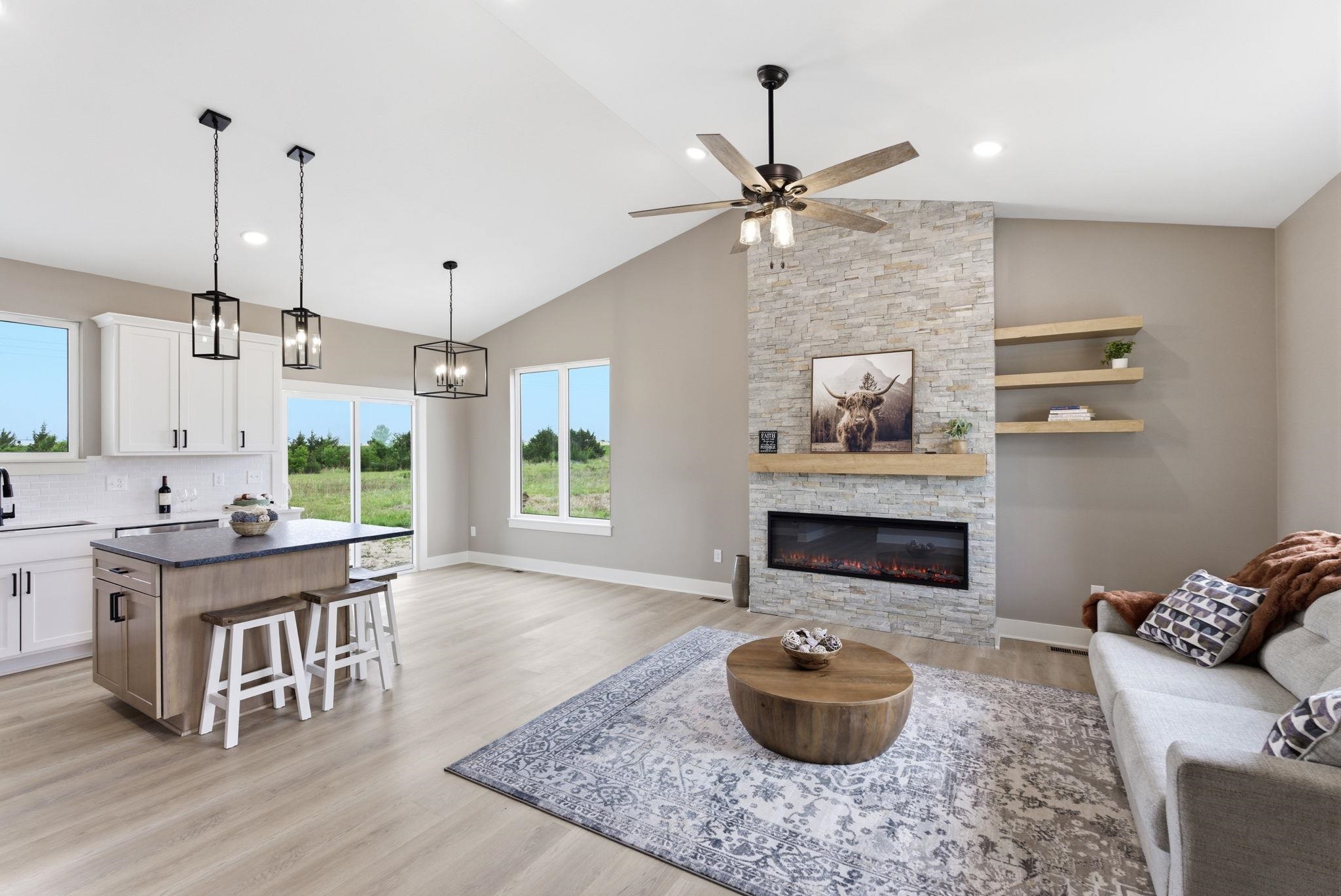 - Description: Hidden Jem!! Lake community in SW Wichita in Haysville school district?! Yes!! This stunning custom offers 3-bedroom, 2 full bath and a 3-car garage with 12' ceilings for the car enthusiast with lifts or space driven homeowners. With a basement finish out can be 5 bed, 3 bath with spacious family room, wet bar and media wall for tv. Vaulted ceilings in the living room with stone wall and built in 6' linier fireplace. Natural woods for mantle and floating shelves. High end luxury vinyl flooring throughout main level. All wood constructed cabinets with crown molding, granite island and quartz tops on surround with under mount composite sink. Fitted with stainless GE gas range, microwave and dishwasher. Main floor laundry and mud room. Master bedroom features massive his and hers walk in closets with makeup or dresser wall niche. Tray ceiling with ceiling fan and wired wall for tv mount. Granite tops with marble floor and custom walk-in shower paired with his and her sinks. You have 2 more main floor bedrooms with one that features a built-in dresser and the other having a walk-in closet. Main floor bathroom is very spacious with marble flooring and granite top. The house was built with high quality products with the buyer in mind. High-efficient windows with .25 efficiency rating, LP smart siding, 80% HVAC RUDD, the best of the best products used on interior. The basement is fitted with a full bathroom already has plumbing, electrical and tub/shower. This entire basement has completed HVAC, all electrical lighting, switched, outlets, covers, all plumbing for 3rd bathroom with tub/shower already set and wet bar plumbing complete. All very ready and easy to finish the basement that just needs drywall, doors, flooring and trim and have a massive family room, 2 more bedrooms and a 3rd full bath with a full entertainment wall prewired and full wet bar. The home has a massive backyard with a covered patio ready for your relaxing sunset views and entertaining. Seller is licensed REALTOR in the state of Kansas Show all description