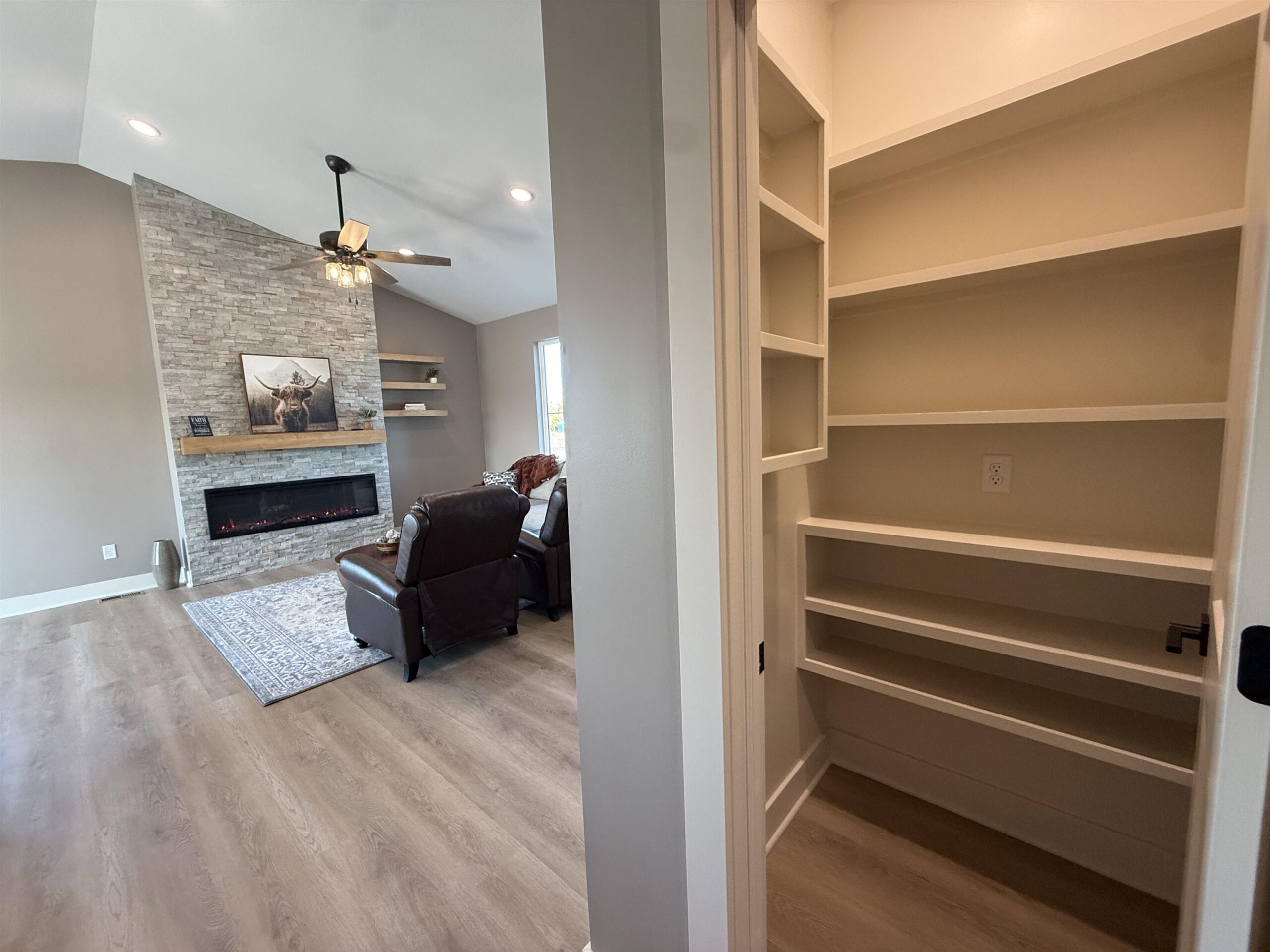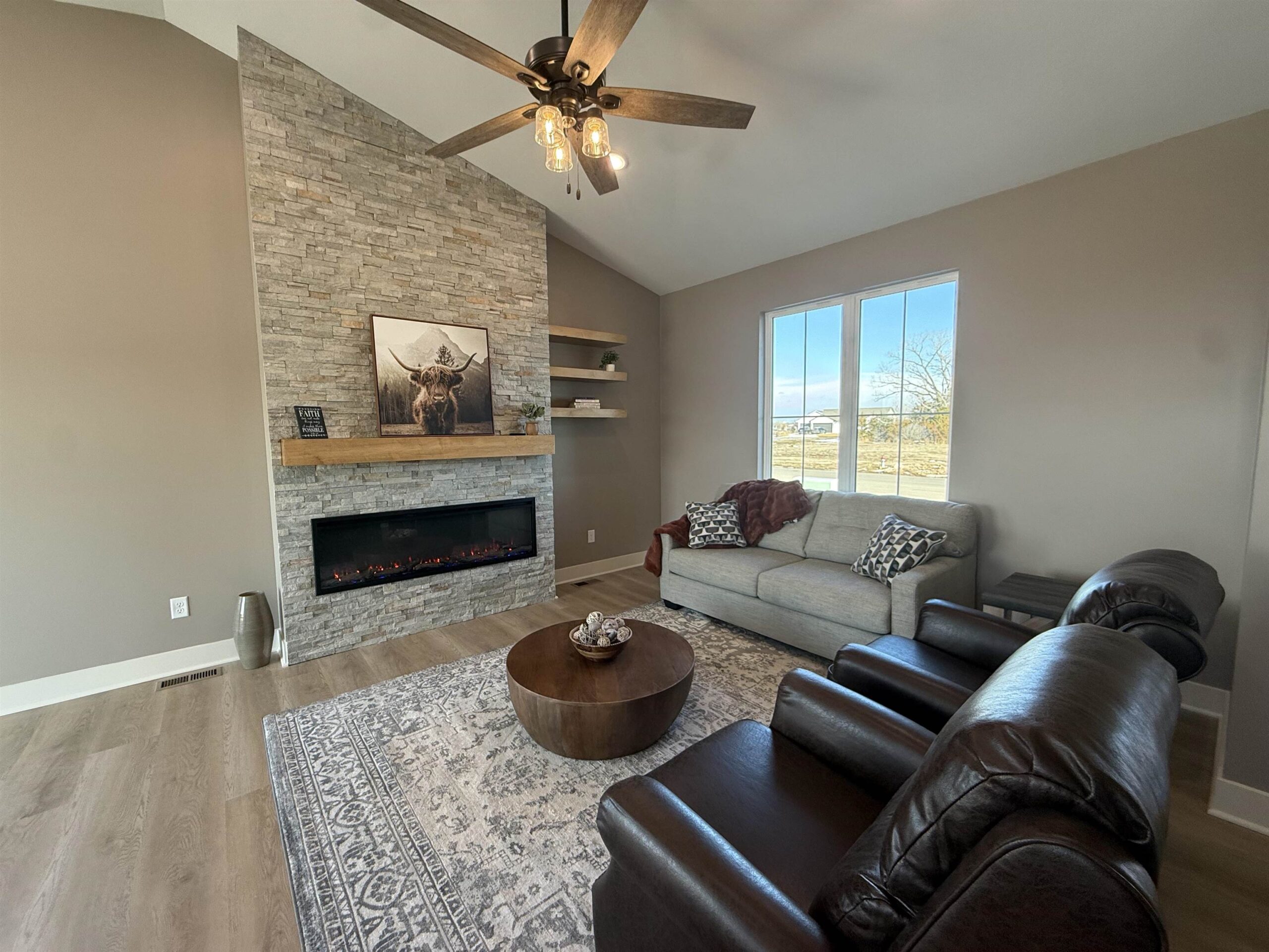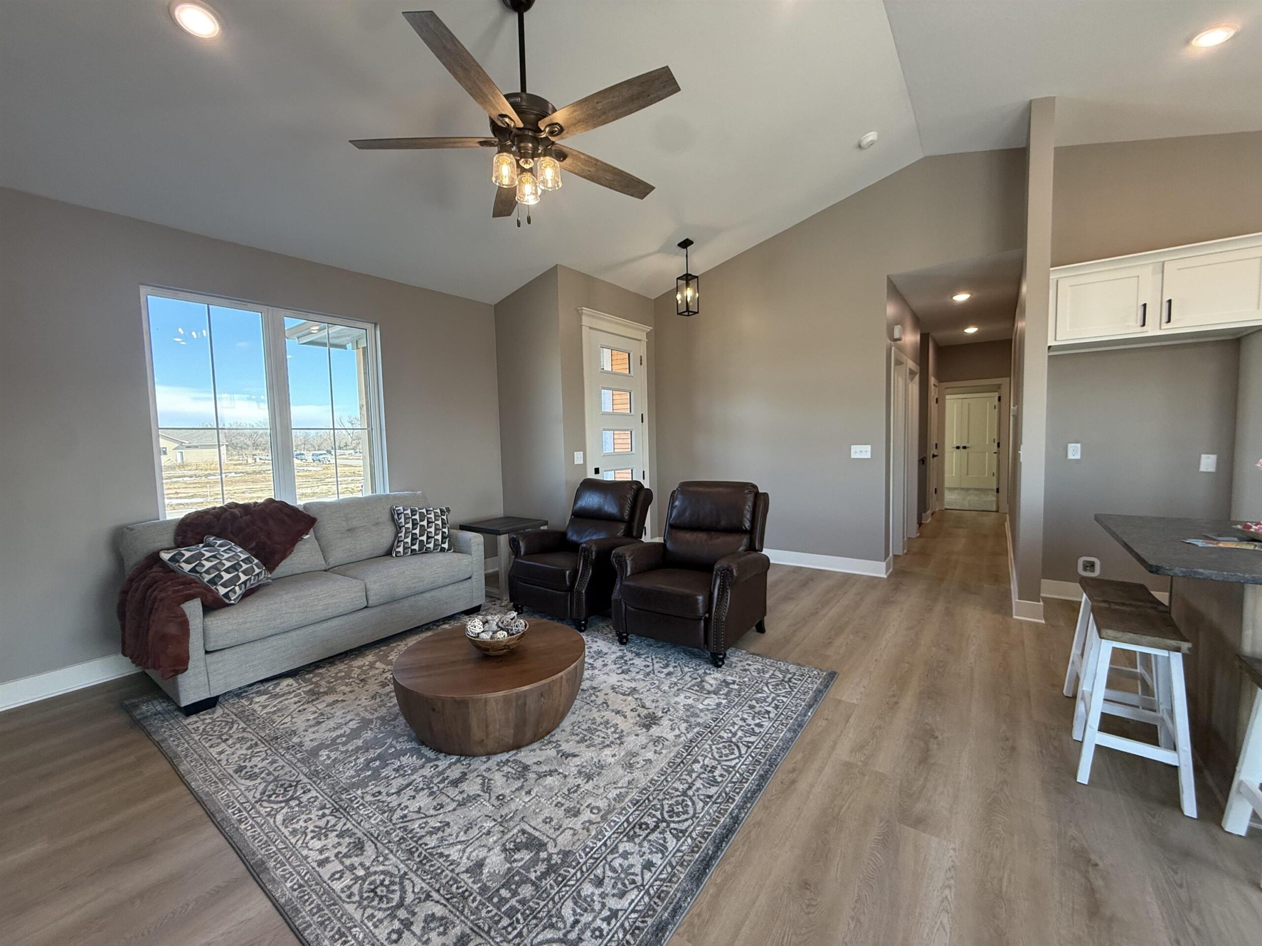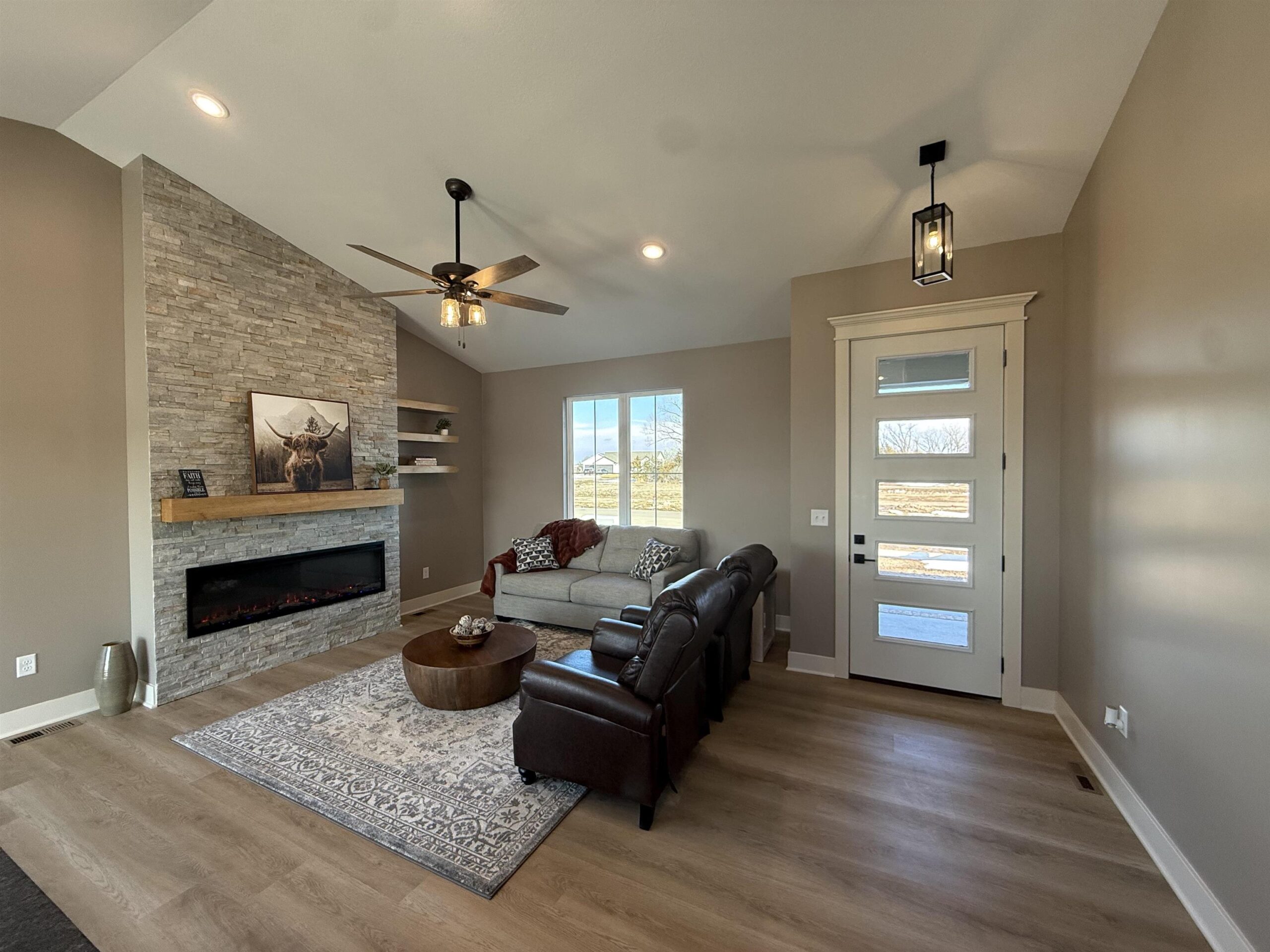 - Description: Builder incentive through the end of March for accepted contracts! Incentive to including matching GE stainless refrigerator. Must have contract in before end of March. Lake community in the heart of Wichita?! Yes!! This stunning custom offers 3-bedroom, 2 full bath and a 3-car garage with 12' ceilings for the car enthusiast with lifts or space driven homeowners. Vaulted ceilings in the living room with stone wall and built in 6' linier fireplace. Natural woods for mantle and floating shelves. High end luxury vinyl flooring throughout main level. All wood constructed cabinets with crown molding, granite island and quartz tops on surround with under mount composite sink. Fitted with stainless GE gas range, microwave and dishwasher. Main floor laundry and mud room. Master bedroom features massive his and hers walk in closets with makeup or dresser wall niche. Tray ceiling with ceiling fan and wired wall for tv mount. Granite tops with marble floor and custom walk-in shower paired with his and her sinks. You have 2 more main floor bedrooms with one that features a built-in dresser and the other having a walk-in closet. Main floor bathroom is very spacious with marble flooring and granite top. The basement is fitted with a full bathroom already has plumbing, electrical and tub/shower. This entire basement has HVAC, electrical, plumbing and wet bar. All very ready and easy to finish the basement and have a massive family room, 2 more bedrooms and a full bath with a full entertainment wall prewired and full wet bar. The home has a massive backyard with a covered patio ready for your relaxing sunset views and entertaining. This is your chance to get in this beautiful new build and settle in just in time for bringing in the new year! Seller is licensed REALTOR in the state of Kansas Show all description