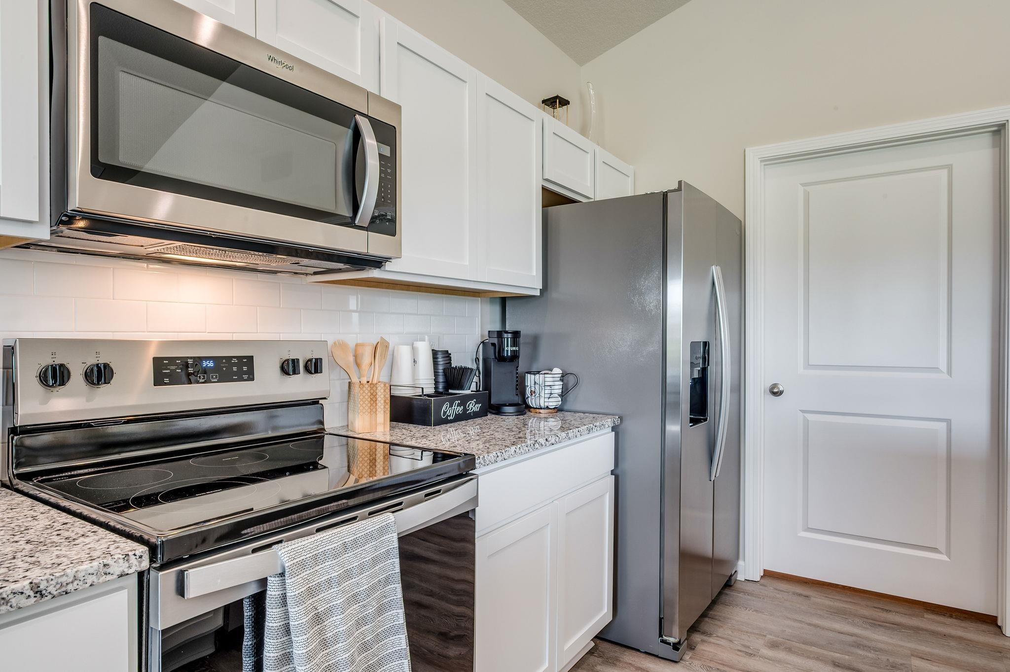 - Appliances: Dishwasher, Disposal, Microwave, Refrigerator, Range, Washer, Dryer