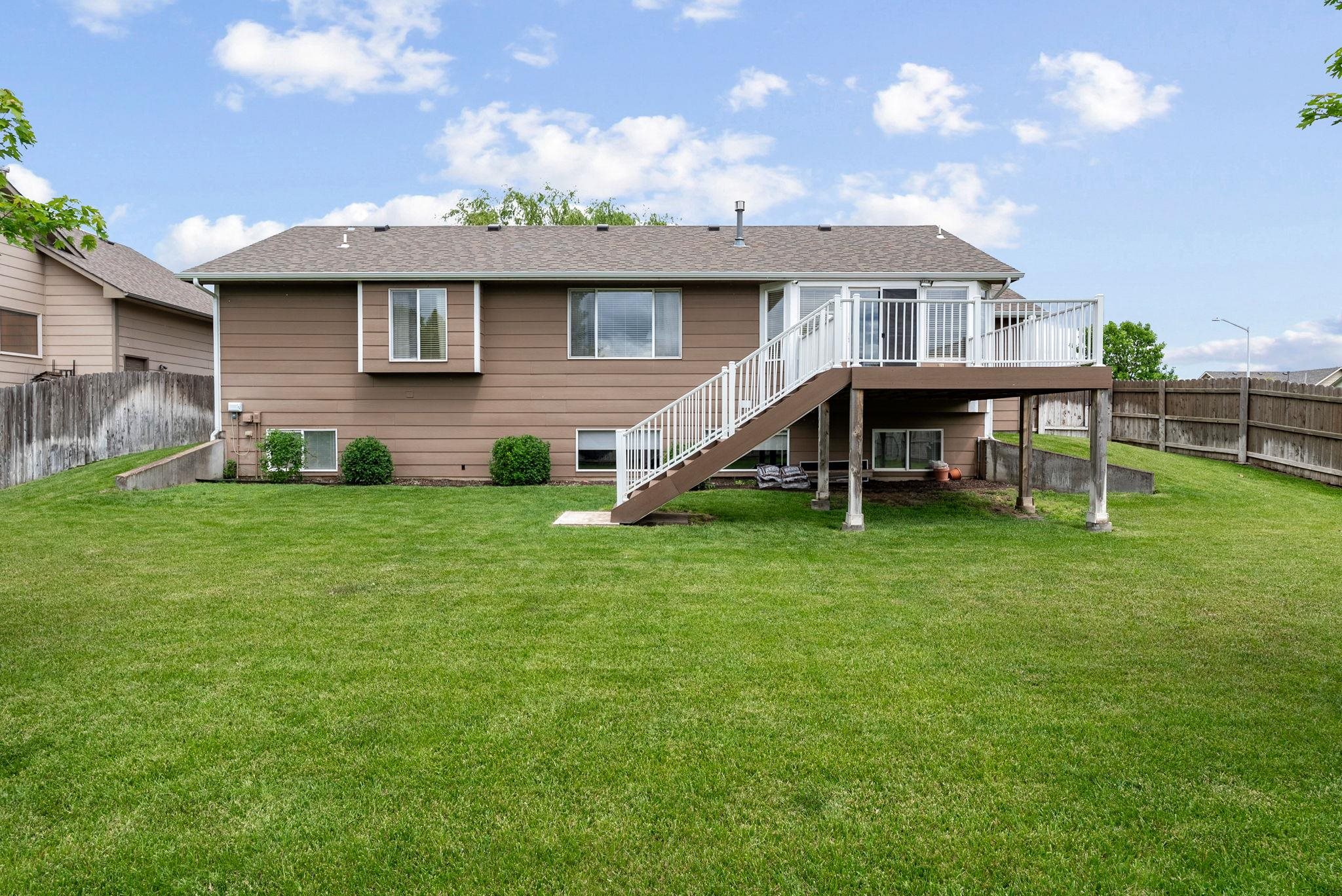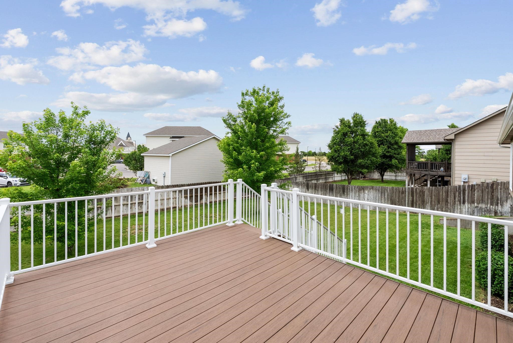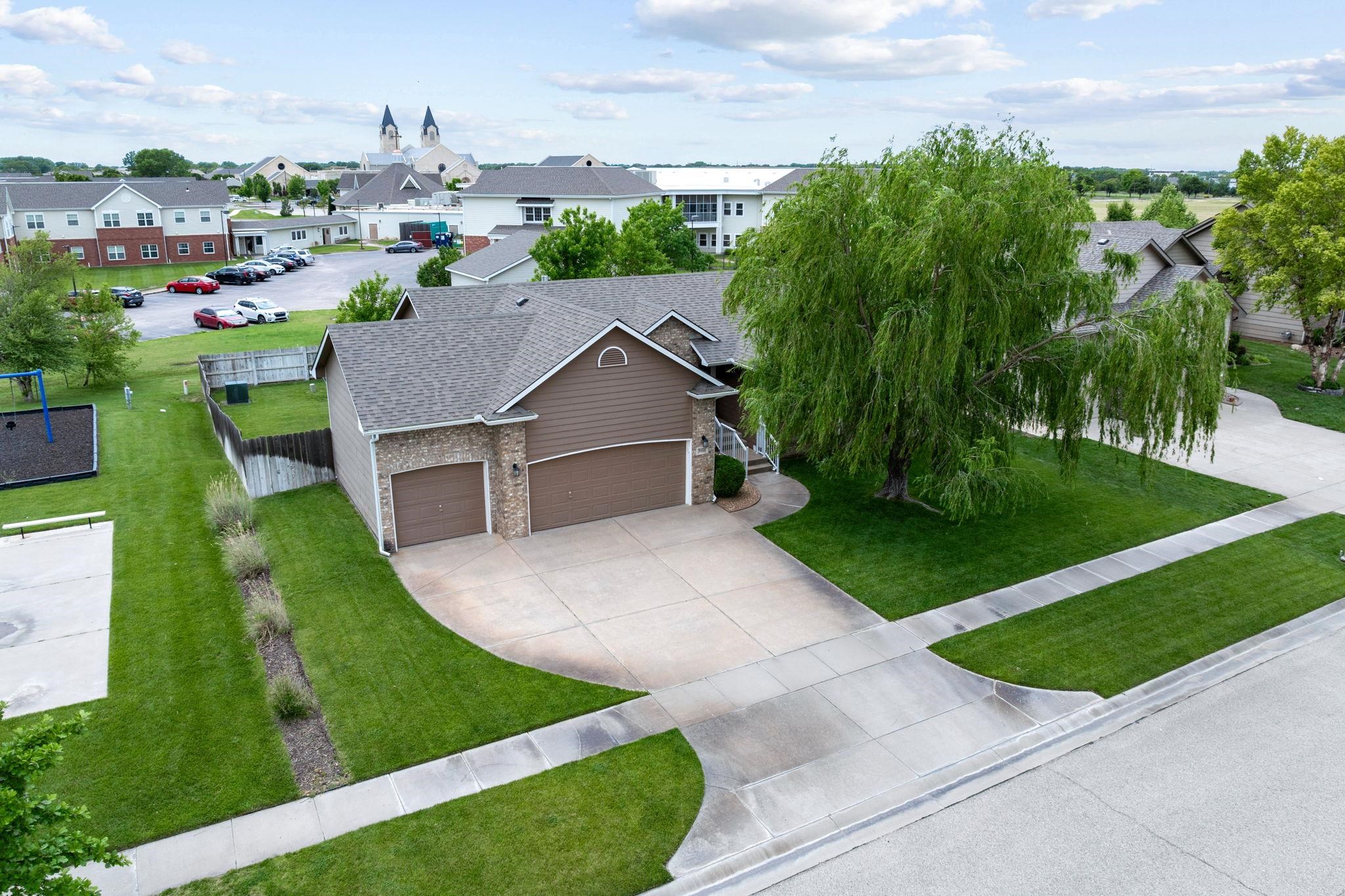 - Description: Welcome home to this absolutely immaculate 5 bed / 3 bath / 3 car ranch in the coveted Maize South district with no special taxes! This beautifully maintained home is completely move-in ready and offers a perfect blend of comfort, style, and functionality. As you arrive, you'll notice excellent curb appeal highlighted by a mature willow tree and lush, green lawn. Step inside to find newer rich hardwood floors throughout the main level, a cozy two-way gas fireplace, and abundant natural light. The vaulted living room flows seamlessly into the heart of the home - a sunshine-filled kitchen and dining area featuring a large center island, built-in desk, newer range (2020), and newer dishwasher (2023). Just off the kitchen, a convenient main floor laundry room with access to the garage adds everyday ease. The spacious primary suite boasts a window seat, coffered ceiling, walk-in closet, and en suite bath complete with dual vanities, a soaker tub, and separate shower. Two additional main floor bedrooms are generously sized with great closet space, and the pristine hall bath completes the level. Downstairs in the view-out basement, you’ll discover a large, open family/rec room with durable Pergo flooring, two more bedrooms, a full bath with shower/tub combo, under-stairs storage, and an expansive mechanical/storage room. Major mechanical updates include a Class III impact-resistant roof (2022), new gutters (2023), and updated HVAC (2017). Outside, enjoy the fully fenced yard with irrigation well and sprinkler system. Relax on the elevated deck with partial lake views, featuring newer composite flooring and railings - perfect for taking in Kansas sunsets and skies. Located in a friendly neighborhood close to restaurants, shopping, groceries, and highways, this home offers everything you’ve been looking for! Homes this well-maintained are a rare find - come see it today before it’s gone! *Be sure to check out the promo video for additional views of this property.* Show all description