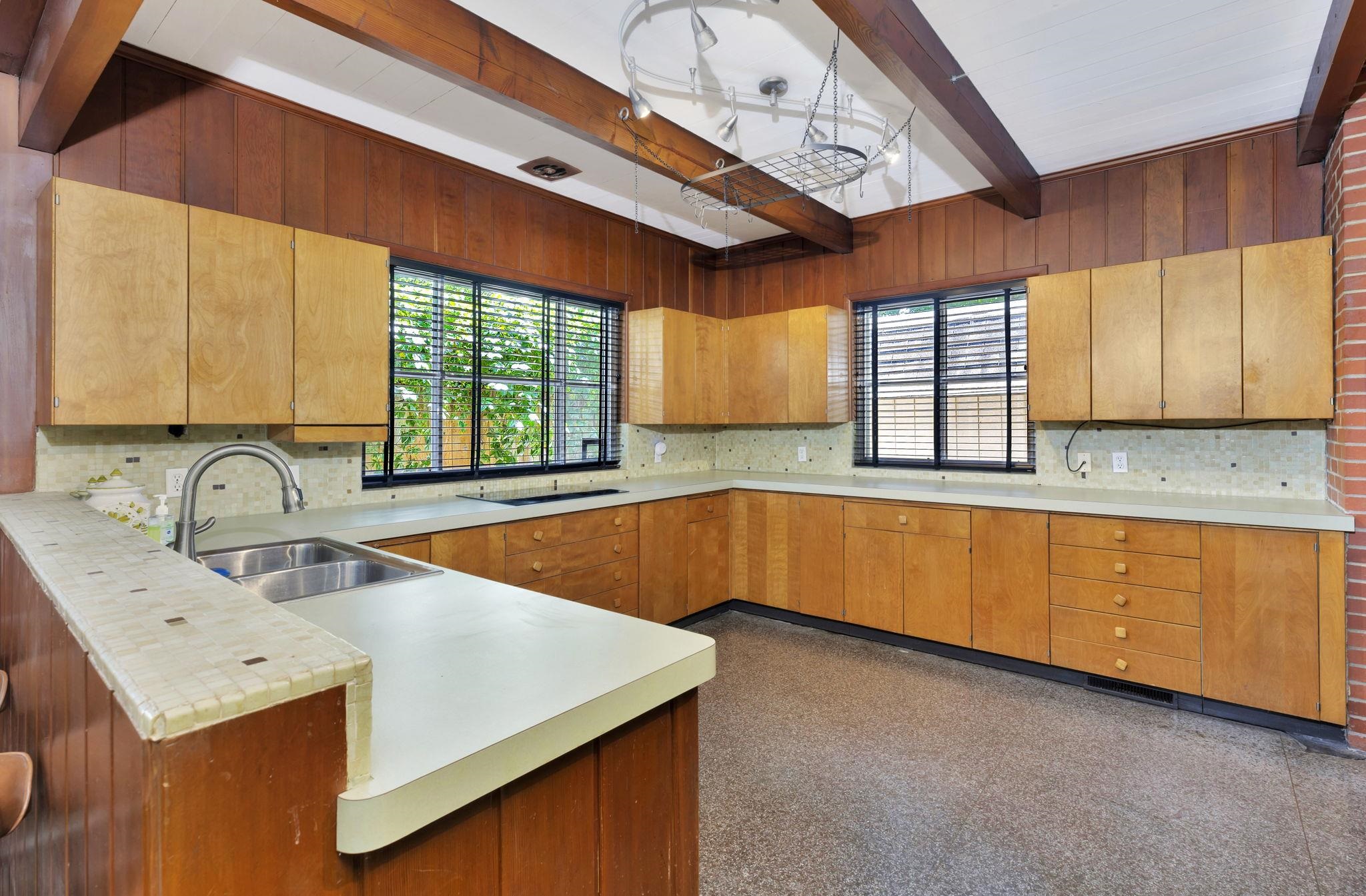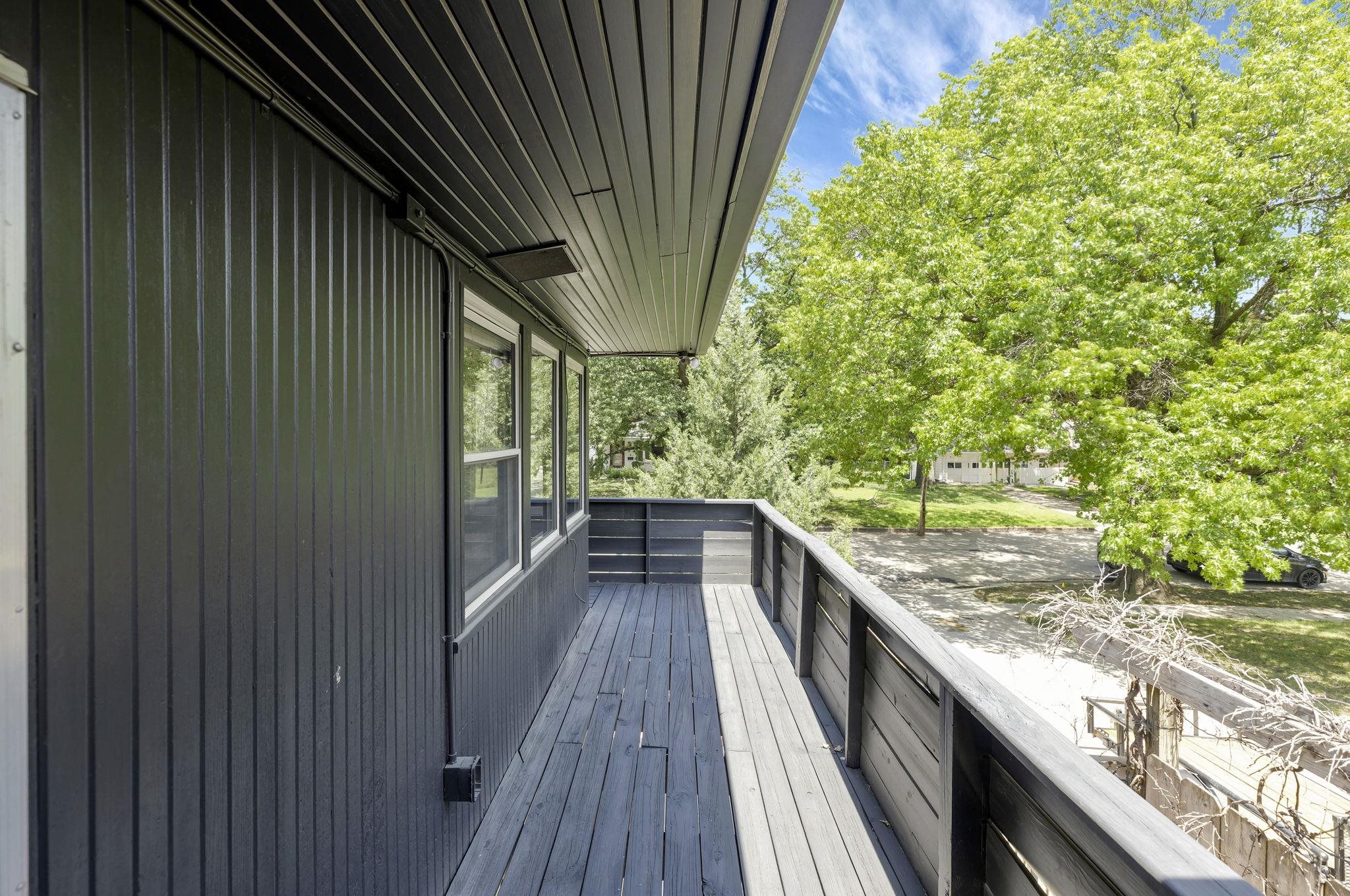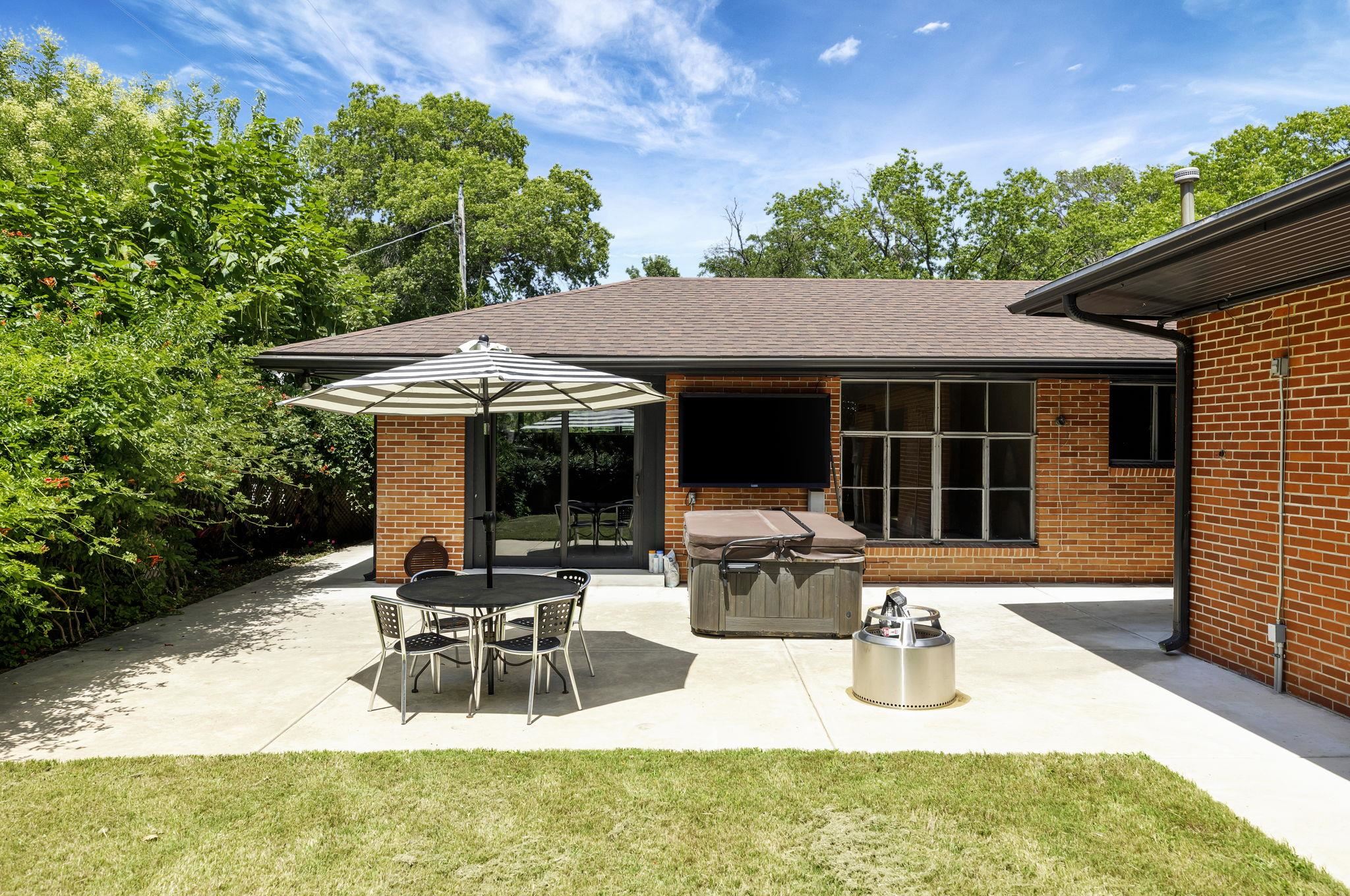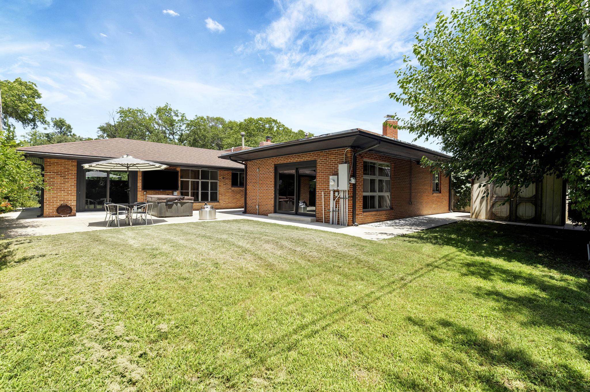 - Description: Welcome home to this fabulous contemporary home in the heart of Wichita. Inspired by Frank Lloyd Wright, and kept in its unique style. It features 4 bedrooms and 2 bath. The bedroom on the upper floor features a wrap around deck. The cozy living room with a wood burning fireplace boasts a beautiful wall of windows. It features a spacious kitchen with nice appliances and a wood burning fireplace, and off of that a formal dining room. A separate main floor laundry room with washer and dryer. Enjoy outdoor living with a fenced yard and private courtyard and patio with hot tub and mounted tv. This home is close to Wesley Hospital and McDonald golf course. Don’t miss out on this unique home. Listing agent is related to the seller. Show all description