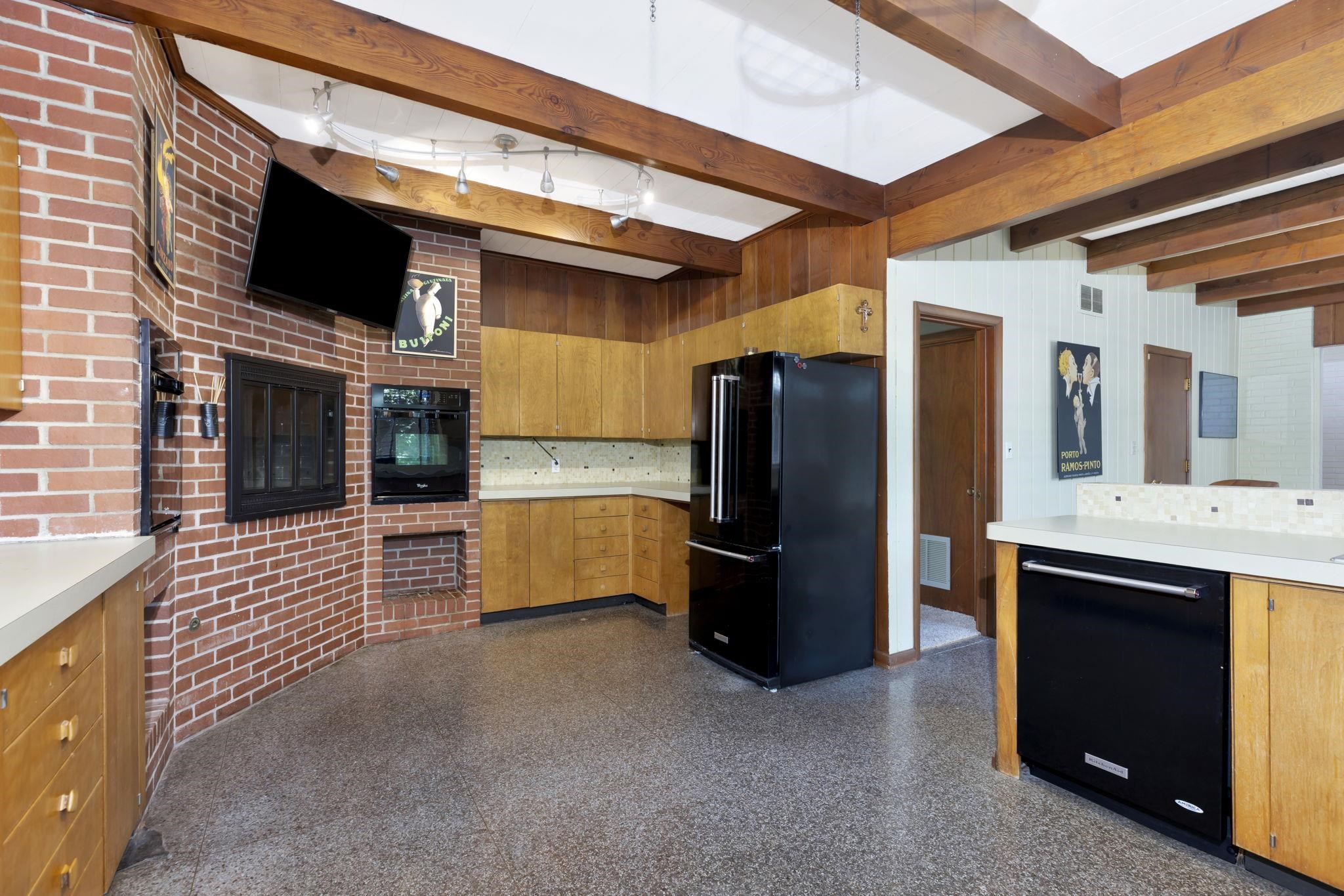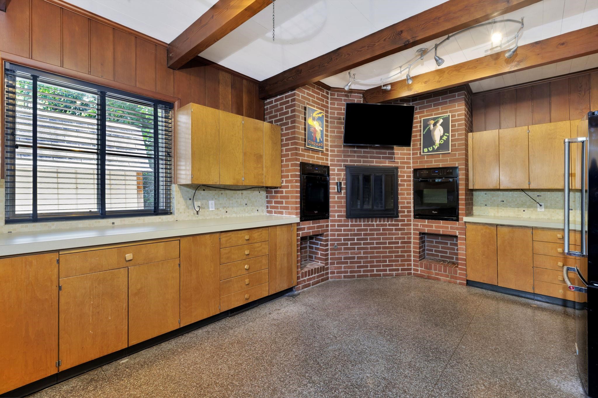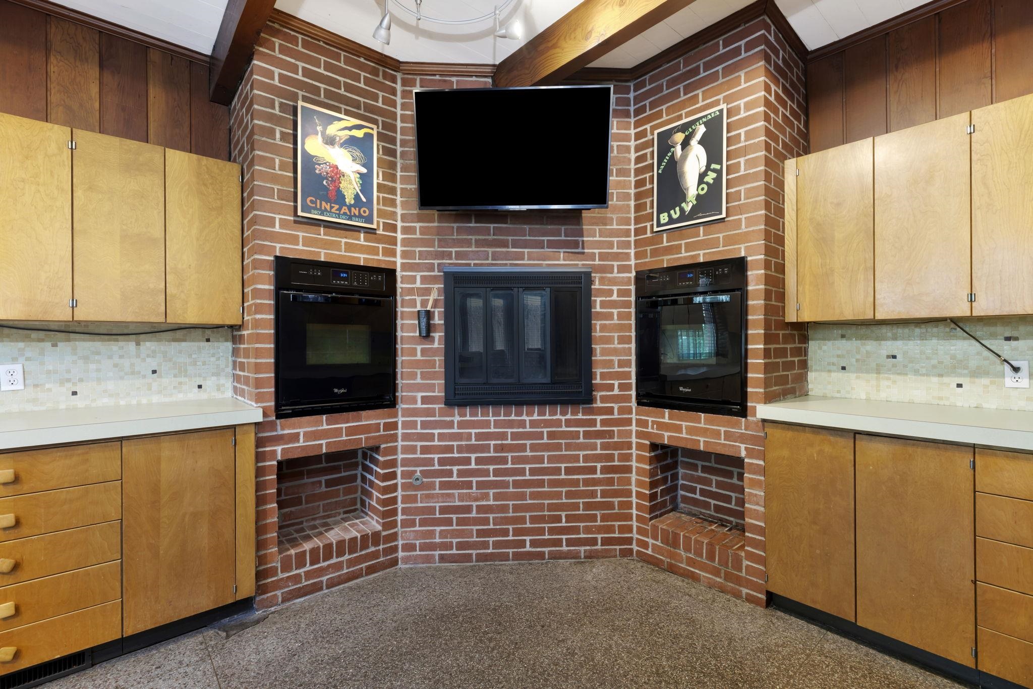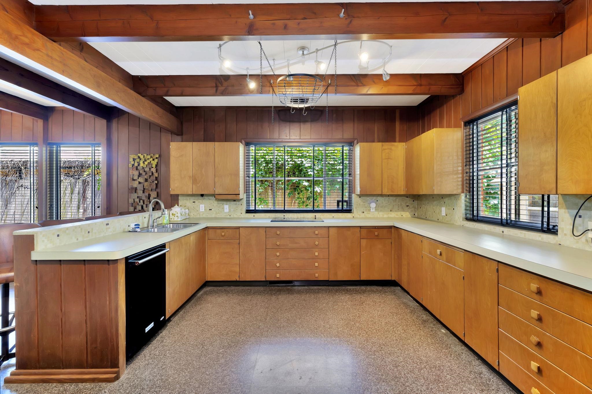 - Description: Welcome home to this fabulous contemporary home in the heart of Wichita. Inspired by Frank Lloyd Wright, and kept in its unique style. It features 4 bedrooms and 2 bath. The bedroom on the upper floor features a wrap around deck. The cozy living room with a wood burning fireplace boasts a beautiful wall of windows. It features a spacious kitchen with nice appliances and a wood burning fireplace, and off of that a formal dining room. A separate main floor laundry room with washer and dryer. Enjoy outdoor living with a fenced yard and private courtyard and patio with hot tub and mounted tv. This home is close to Wesley Hospital and McDonald golf course. Don’t miss out on this unique home. Listing agent is related to the seller. Show all description
