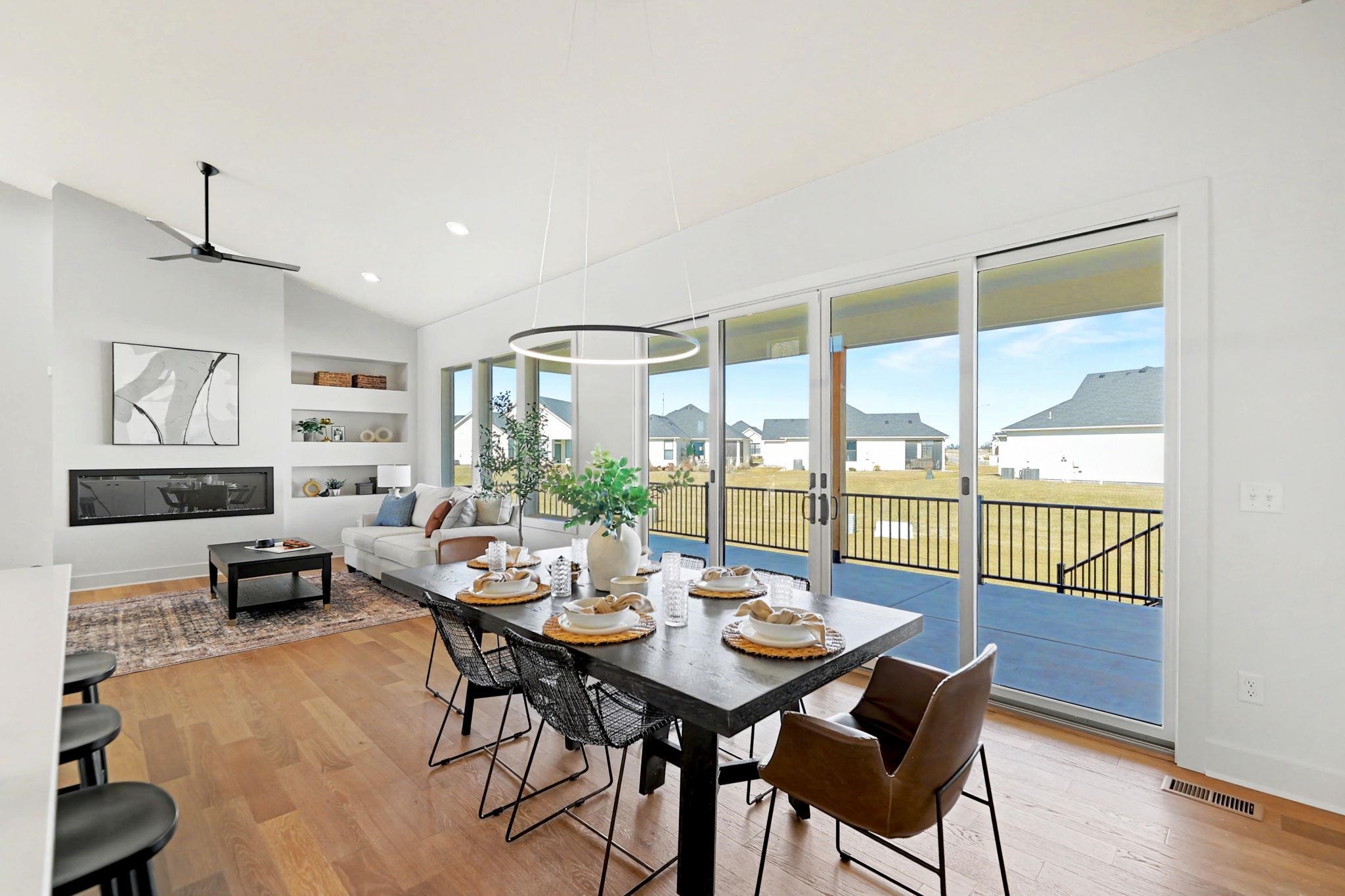 - Description: Welcome to 3658 Bristol Court, located in the highly sought-after Brookfield neighborhood. This stunning home is the Monarch floor plan by Nies Homes and offers an impressive 3, 335 square feet of beautifully designed living space, including 1, 893 square feet on the main level and 1, 442 square feet of finished basement space. The modern design is filled with natural light, highlighted by expansive floor-to-ceiling windows throughout many of the rooms. The finished basement is ideal for entertaining, featuring a spacious recreation room, game room, and wet bar, along with a bedroom and full bath and an additional flex room perfect for a home office, gym, or hobby space. Step outside to enjoy the generous 30 x 12 covered patio, offering excellent outdoor entertaining space. With landscaping already completed, this home is truly move-in ready and waiting for its next owner. Show all description