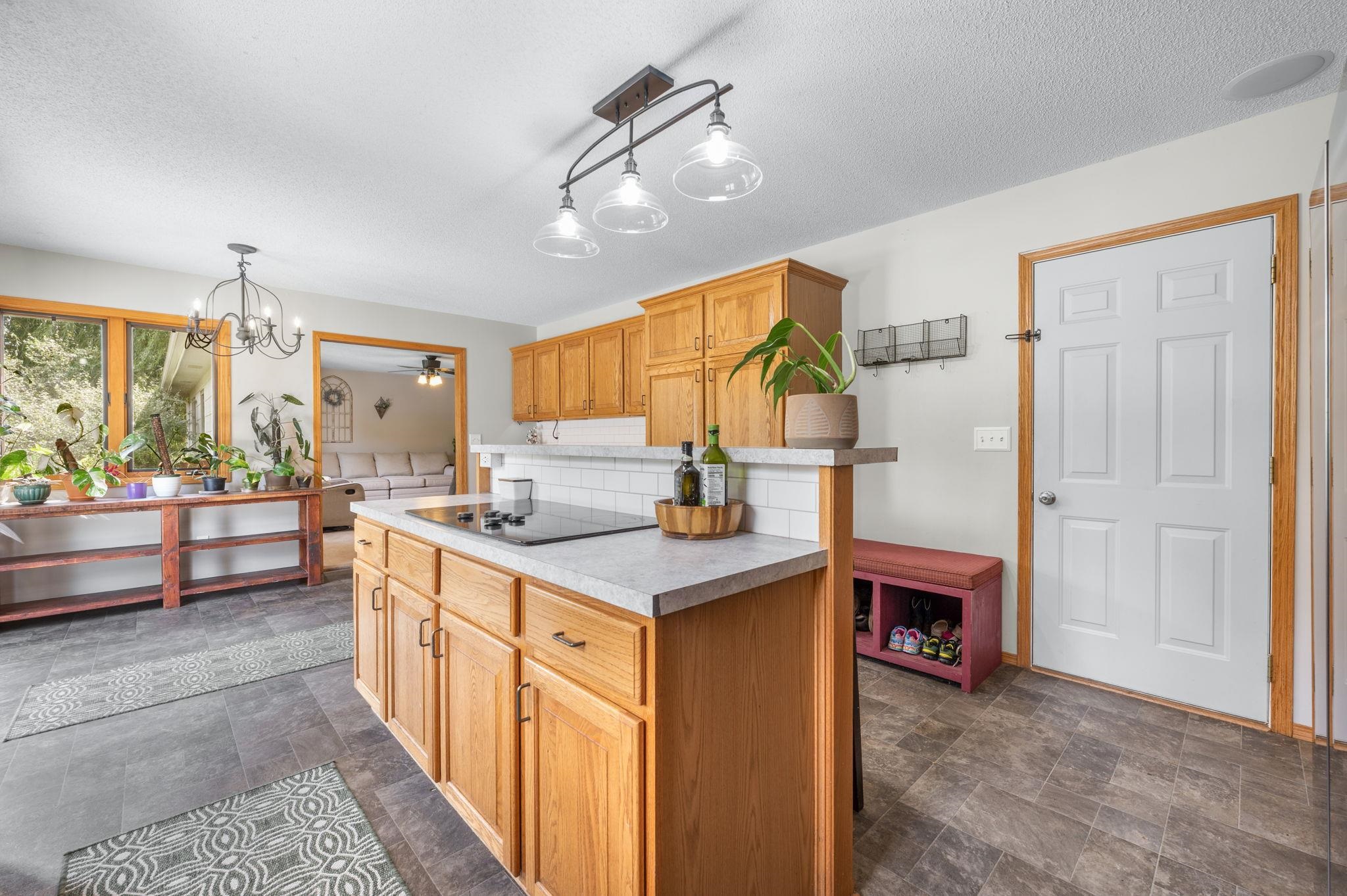 - Description: Discover your private oasis in Derby! This 3 bedroom, 2 bathroom home is ready for you to enjoy with an oversized 1/2 acre lot, in ground pool with automatic cover, easy access to the green space behind the home and a new septic system will be installed prior to closing. Open layout, spacious rooms, wired for surround sound inside and out with many upgrades make this a great home for relaxing and entertaining. The main floor offers a large living room with decorative mantle, formal dining room and a lovely kitchen. The kitchen features an additional eating space, eating bar, built in desk area, pantry storage, an island with an electric cook top, double oven and it overlooks the beautiful backyard. Three bedrooms and two full bathrooms complete the main floor. The primary bedroom includes two closets and an attached bathroom. Downstairs there is plenty of place for seating, a basement office, a game or craft area. It's ready to make the space your own. The third car garage is insulated with an AC unit for comfort and makes a nice shop with a barn door separating it from the two car garage. There is room to park a trailer, RV or boat under the large carport with double gate access. Chickens can roam free in the yard with a shed for storage and a nice garden area. Welcome home! Show all description