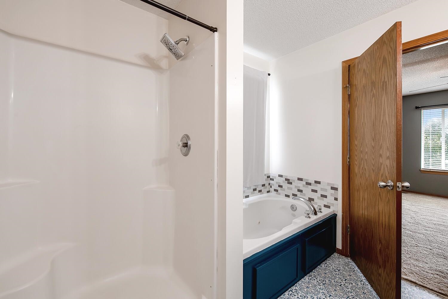 - Master Bedroom: Master Bdrm on Main Level, Split Bedroom Plan, Sep. Tub/Shower/Mstr Bdrm, Quartz Counters