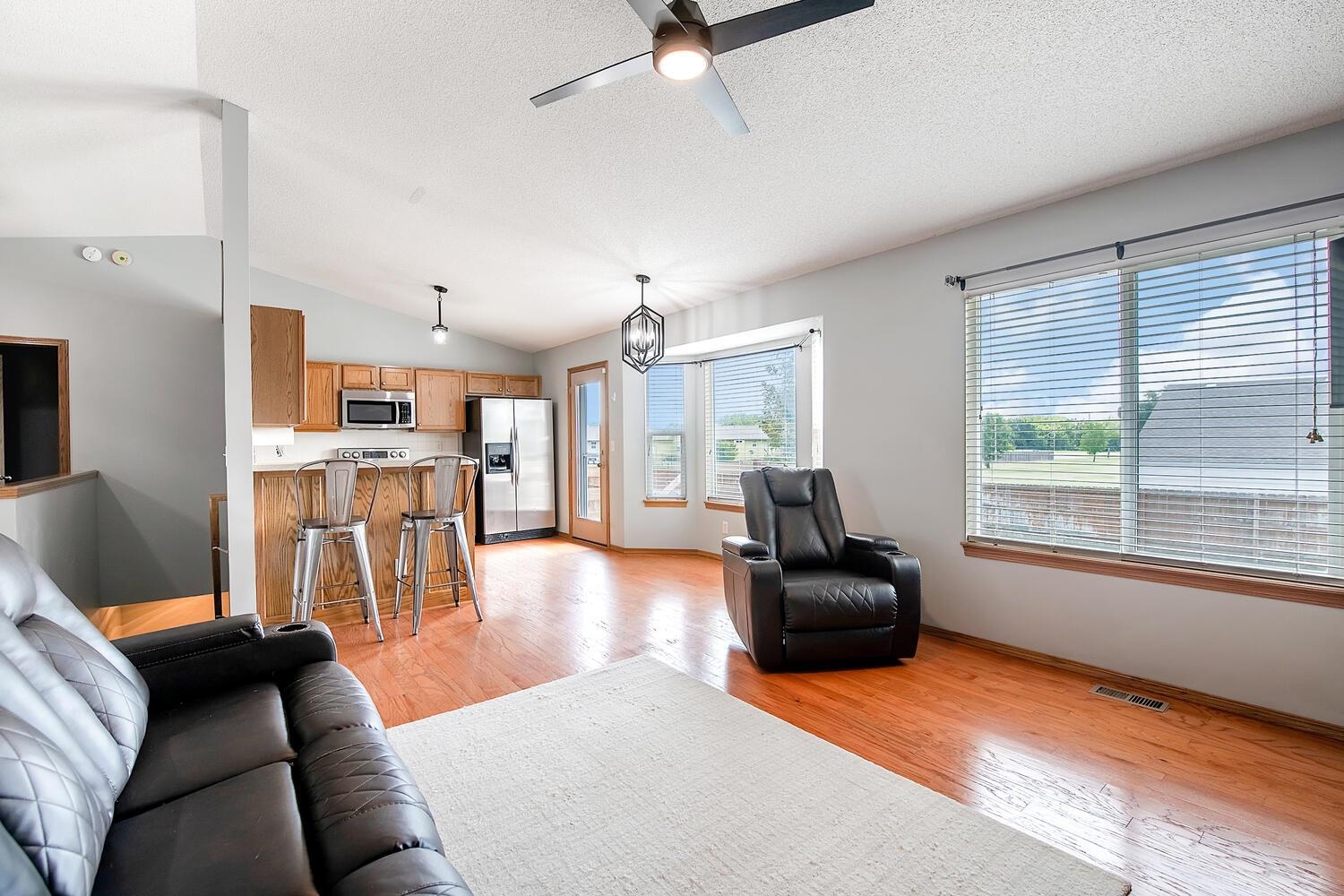 - Description: Escape the city and check out this charming 3 bedroom, 3 bathroom home located in Harvest Ridge. These Motivated Sellers have maintained this home nicely and have kept it impeccably clean during their ownership. The main floor showcases an open floor plan, hardwood floors, vaulted ceilings, and a fireplace. The basement features a huge family room, additional guest bedroom, a bonus room perfect for a home office, and extra storage. This gorgeous yard is easier to manage with a sprinkler system and more economical to sustain with an irrigation well to avoid high water bills. Enjoy quiet living in the desired Goddard School District (USD 265) and take advantage of the convenience of easy access to Kellogg, K-42, I-235, and Eisenhower Airport. Neighborhood amenities include a community pond, playground, and jogging path. Do not miss the opportunity to make this home yours and love all the aspects it has to offer. Sellers are offering a $1,500 carpet allowance with acceptable offer. Show all description