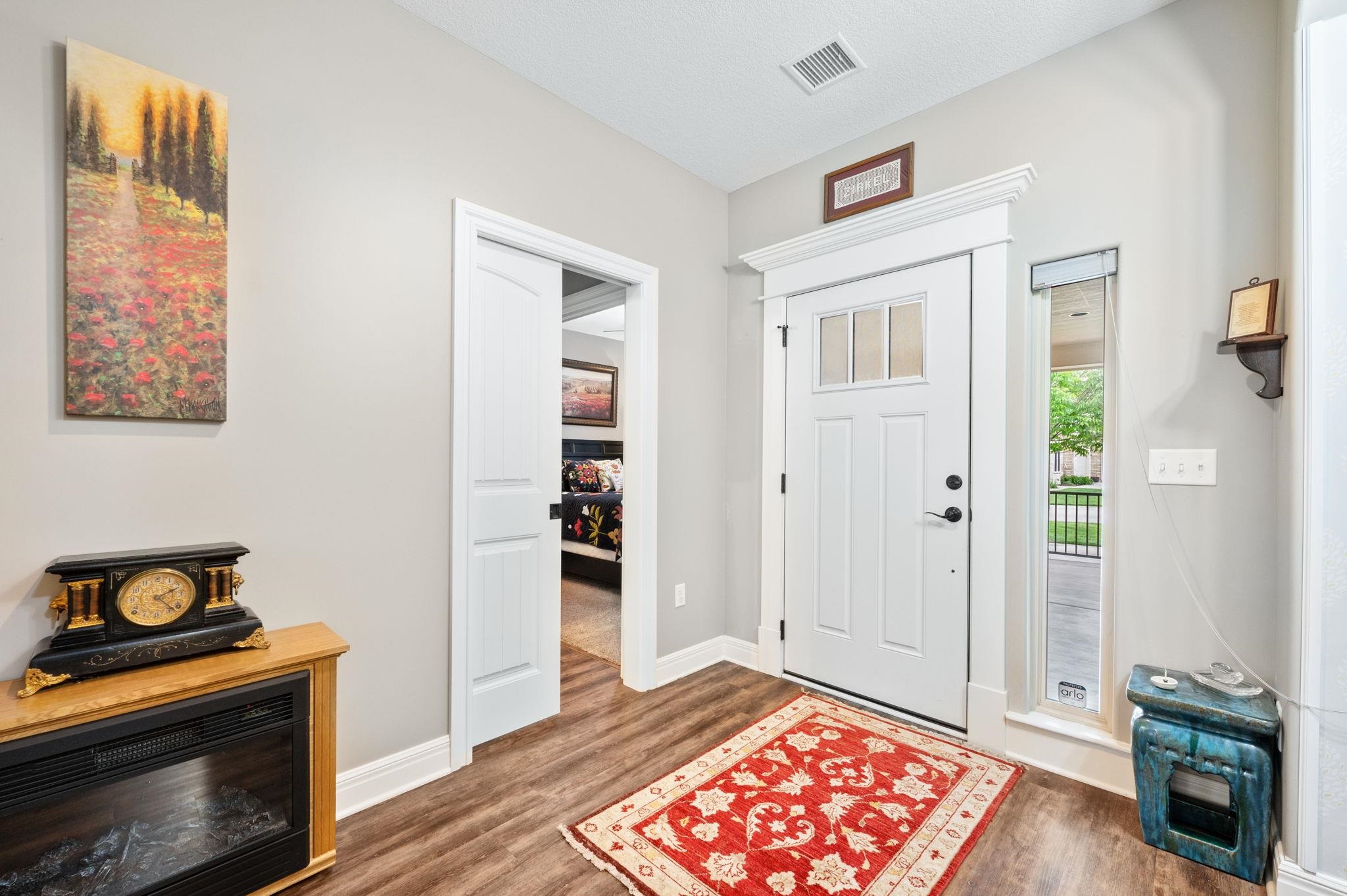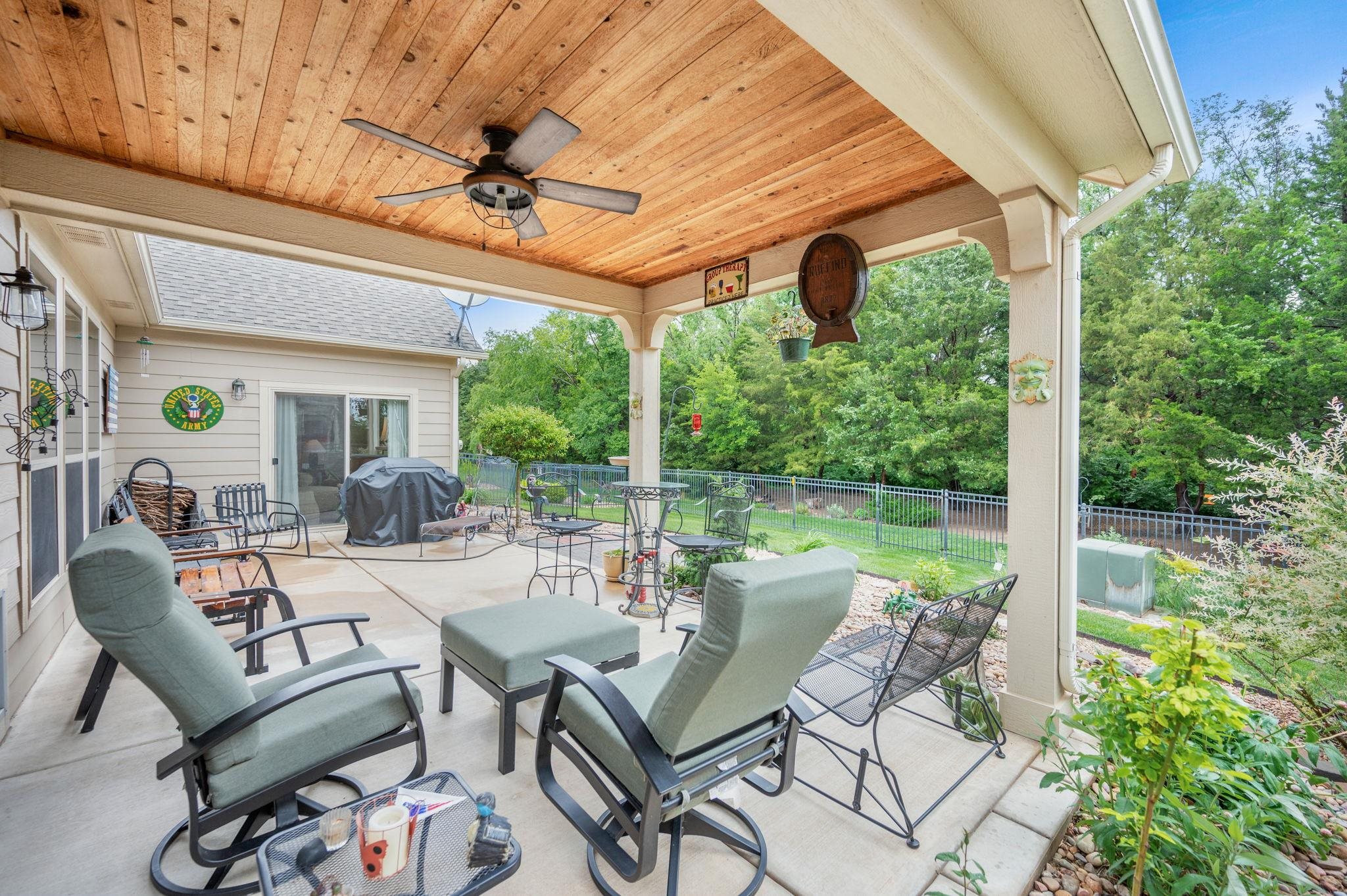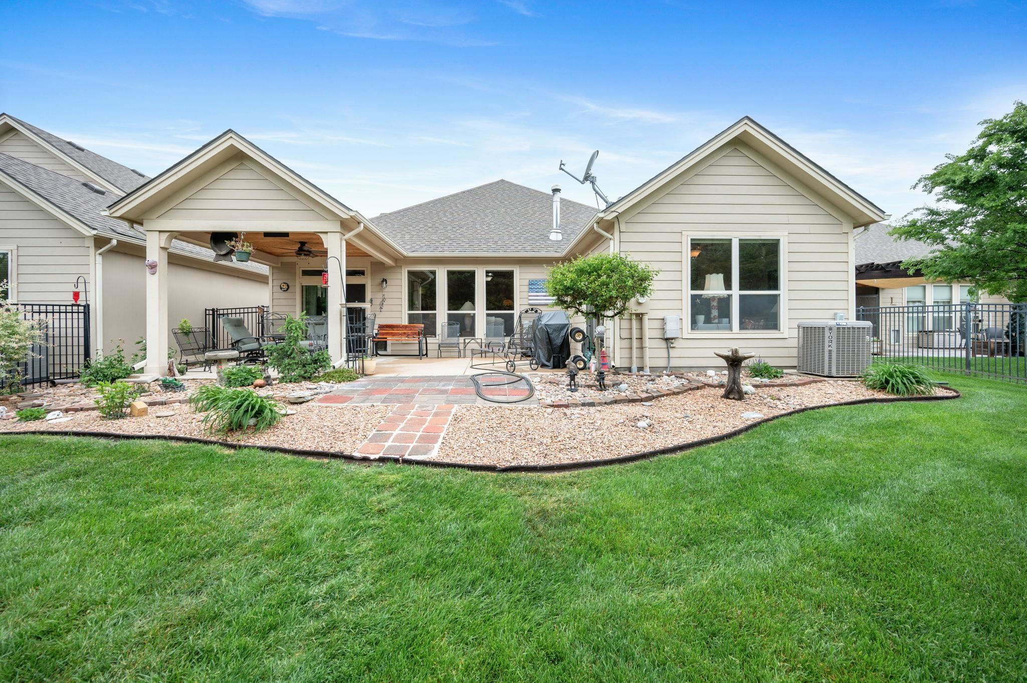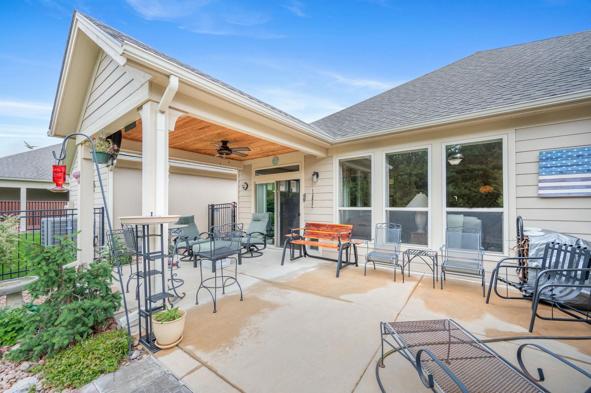 - Description: Welcome to a rare opportunity in the friendly Estancia community, where two exceptional features—luxury living and community charm—come together in this beautifully upgraded, zero-entry patio home. Thoughtfully designed for comfort, style, and accessibility, this home welcomes you with a spacious covered front porch surrounded by wrought iron fencing and mature landscaping. Step inside this zero-entry home to a bright, open layout with soaring ceilings, LVP floors, and a recently added, custom wood-burning stove surrounded by brick that adds warmth and character to the living room with expansive windows looking out to the awesome back patio and yard. The gourmet kitchen is an entertainer’s dream, boasting quartz countertops, a farmhouse sink, pot filler, a gas cooktop, upgraded appliances, plenty of cabinet space including a pantry, plus an eating bar island. Whether you're hosting guests or enjoying a quiet evening, the flow from the kitchen to the tray ceiling dining and living area is flawless. The spacious primary suite is a true retreat including tray ceiling and its private sitting room with its own access to a serene patio overlooking the lush, tree-lined reserve behind the wrought iron fenced back yard. The back yard invites you to listen to birds singing and occasionally even see deer. The master bath is spa-like, featuring a unique walk-in tile shower, double vanity, including a water closet and walk-in closet that provides plenty of space and doubles as a safe room. A second large bedroom with another walk-in closet and guest bathroom are tucked back to the opposite corner with a pocket door separating them from the rest of the house for added privacy. The utility room includes a sink, multiple cabinets, and a partially shelved walk-in closet. Another shelved closet is just inside the entry from the garage. A home office with a sliding patio door and doggie door adds flexibility and charm. Outside, enjoy a stunning 28x13 partially covered large back patio and rock gardens perfect for entertaining or relaxing in nature. The oversized 3-car garage (32x25) includes storage space as well as a workbench offering a versatile area for hobbies or creative projects. Estancia’s maintenance-free lifestyle includes lawn care, snow removal, exterior painting, trash, and sprinkler maintenance. And the community amenities elevate everyday living, with a clubhouse, salt water heated pool, pickleball courts, multiple ponds, and a calendar full of neighborhood events. So be ready to play cards, attend monthly dinners, neighborhood gatherings, and live life to the fullest in this welcoming atmosphere. From the custom upgrades to the vibrant community spirit, this home is more than just a place to live—it’s a place to truly call home. Show all description