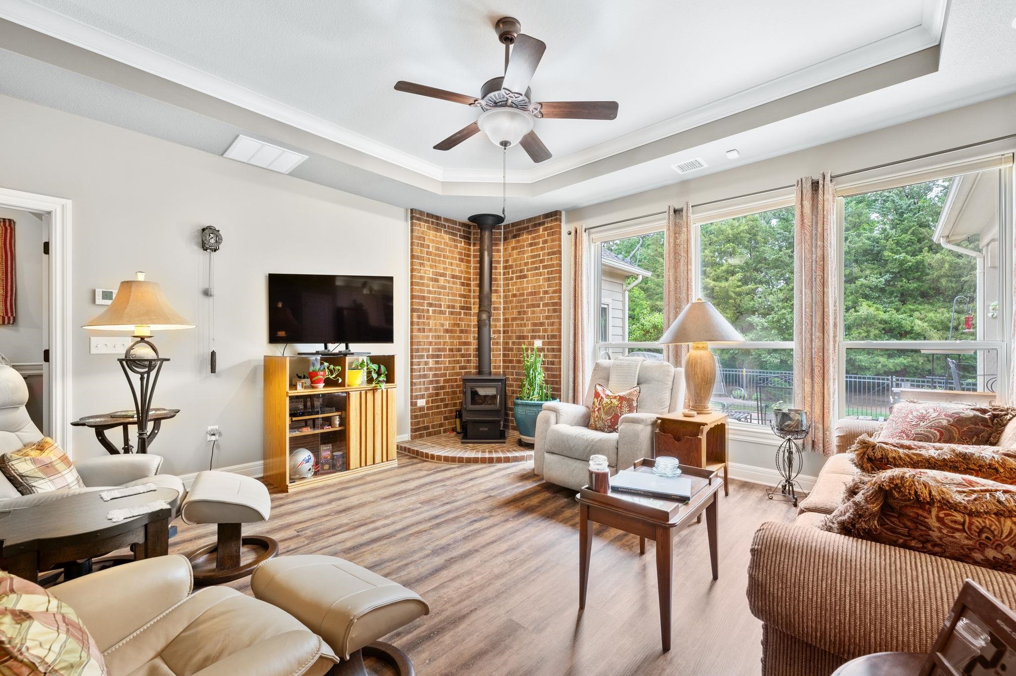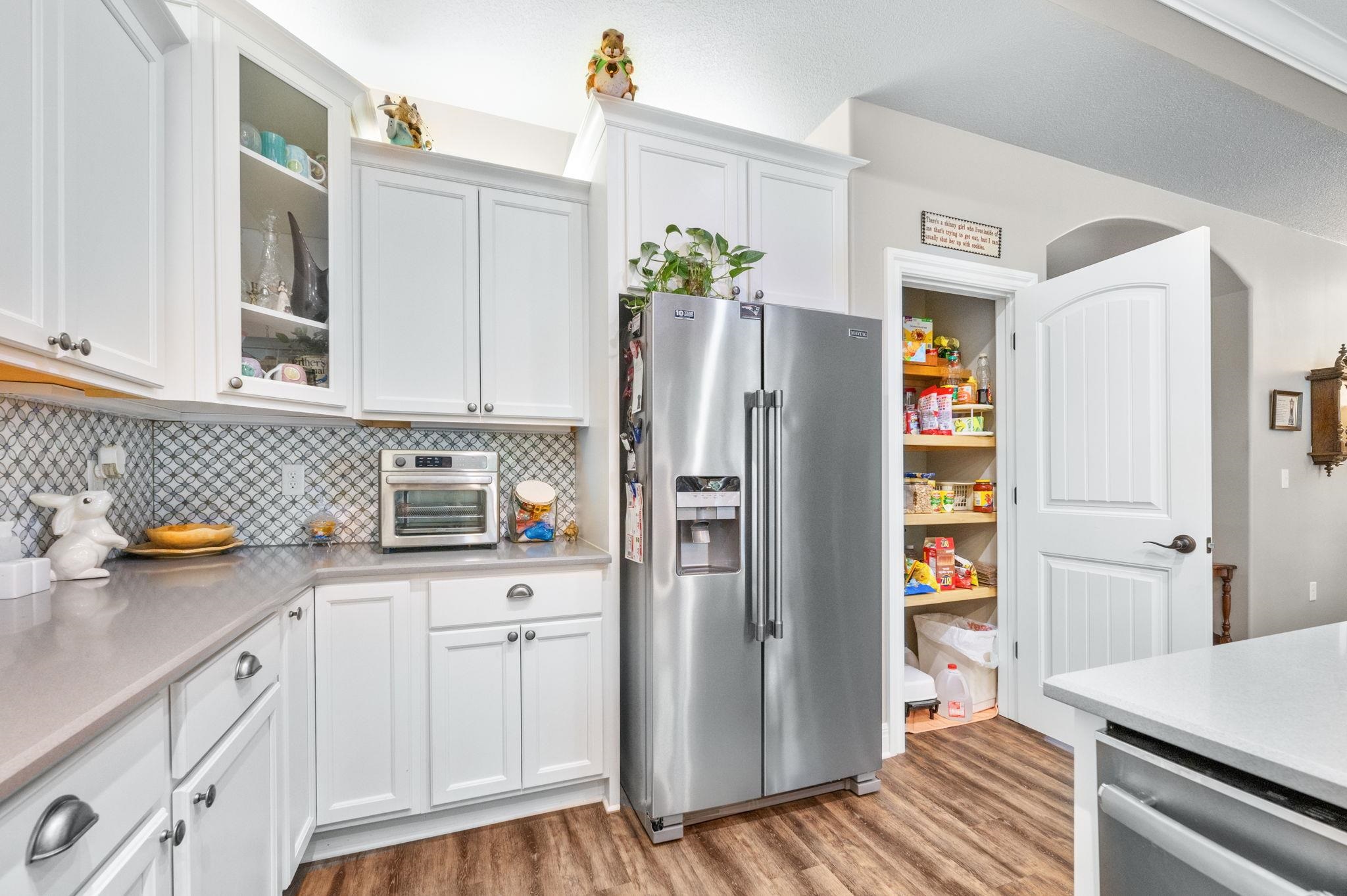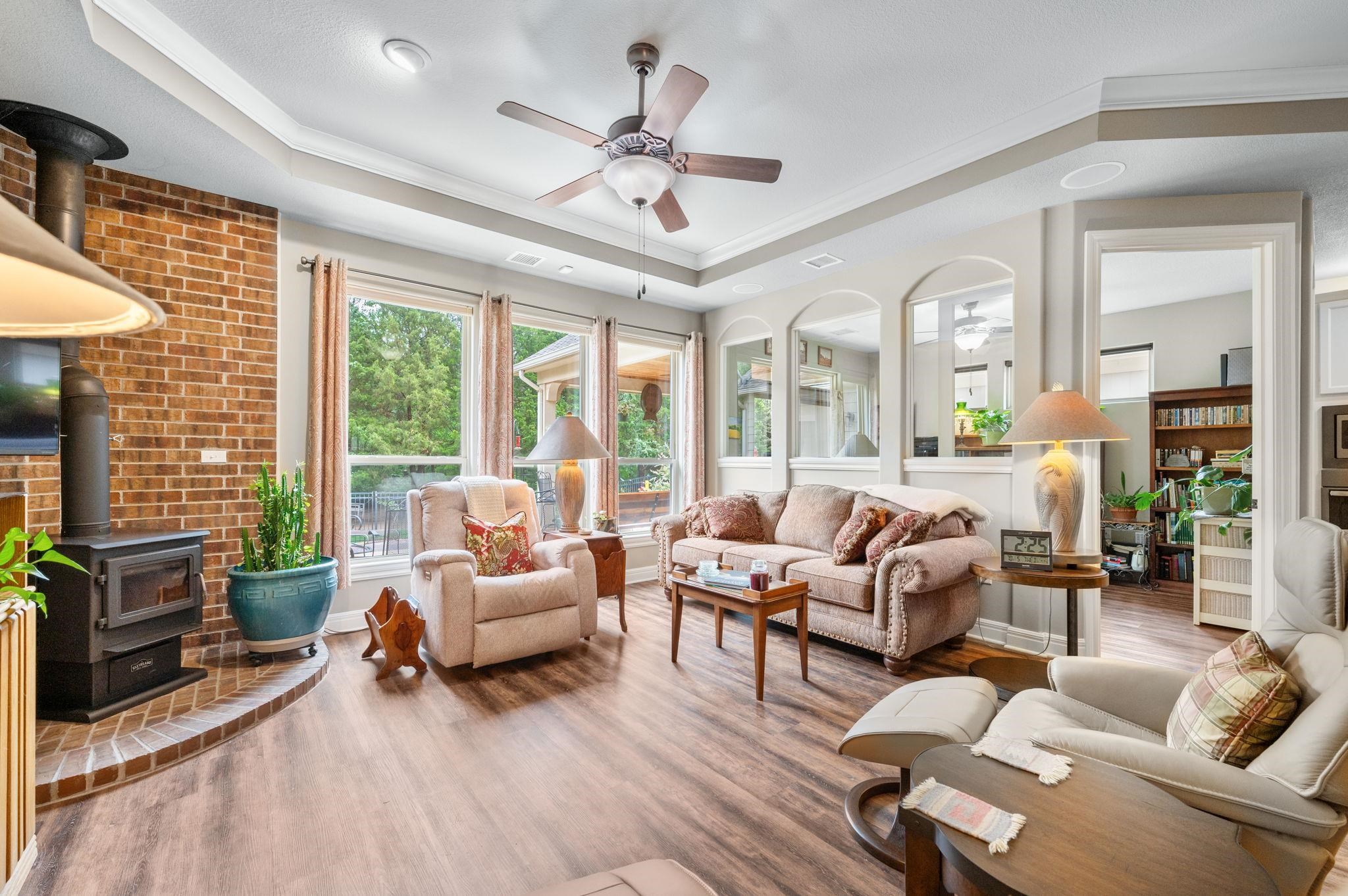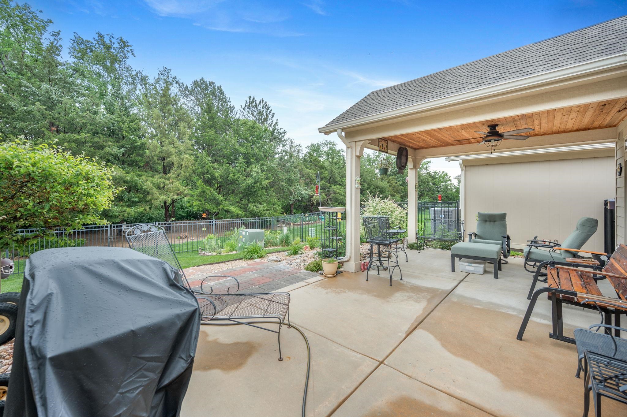 - Description: Welcome to a rare opportunity in the friendly Estancia community, where two exceptional features—luxury living and community charm—come together in this beautifully upgraded, zero-entry patio home. Thoughtfully designed for comfort, style, and accessibility, this home welcomes you with a spacious covered front porch surrounded by wrought iron fencing and mature landscaping. Step inside this zero-entry home to a bright, open layout with soaring ceilings, LVP floors, and a recently added, custom wood-burning stove surrounded by brick that adds warmth and character to the living room with expansive windows looking out to the awesome back patio and yard. The gourmet kitchen is an entertainer’s dream, boasting quartz countertops, a farmhouse sink, pot filler, a gas cooktop, upgraded appliances, plenty of cabinet space including a pantry, plus an eating bar island. Whether you're hosting guests or enjoying a quiet evening, the flow from the kitchen to the tray ceiling dining and living area is flawless. The spacious primary suite is a true retreat including tray ceiling and its private sitting room with its own access to a serene patio overlooking the lush, tree-lined reserve behind the wrought iron fenced back yard. The back yard invites you to listen to birds singing and occasionally even see deer. The master bath is spa-like, featuring a unique walk-in tile shower, double vanity, including a water closet and walk-in closet that provides plenty of space and doubles as a safe room. A second large bedroom with another walk-in closet and guest bathroom are tucked back to the opposite corner with a pocket door separating them from the rest of the house for added privacy. The utility room includes a sink, multiple cabinets, and a partially shelved walk-in closet. Another shelved closet is just inside the entry from the garage. A home office with a sliding patio door and doggie door adds flexibility and charm. Outside, enjoy a stunning 28x13 partially covered large back patio and rock gardens perfect for entertaining or relaxing in nature. The oversized 3-car garage (32x25) includes storage space as well as a workbench offering a versatile area for hobbies or creative projects. Estancia’s maintenance-free lifestyle includes lawn care, snow removal, exterior painting, trash, and sprinkler maintenance. And the community amenities elevate everyday living, with a clubhouse, salt water heated pool, pickleball courts, multiple ponds, and a calendar full of neighborhood events. So be ready to play cards, attend monthly dinners, neighborhood gatherings, and live life to the fullest in this welcoming atmosphere. From the custom upgrades to the vibrant community spirit, this home is more than just a place to live—it’s a place to truly call home. Show all description
