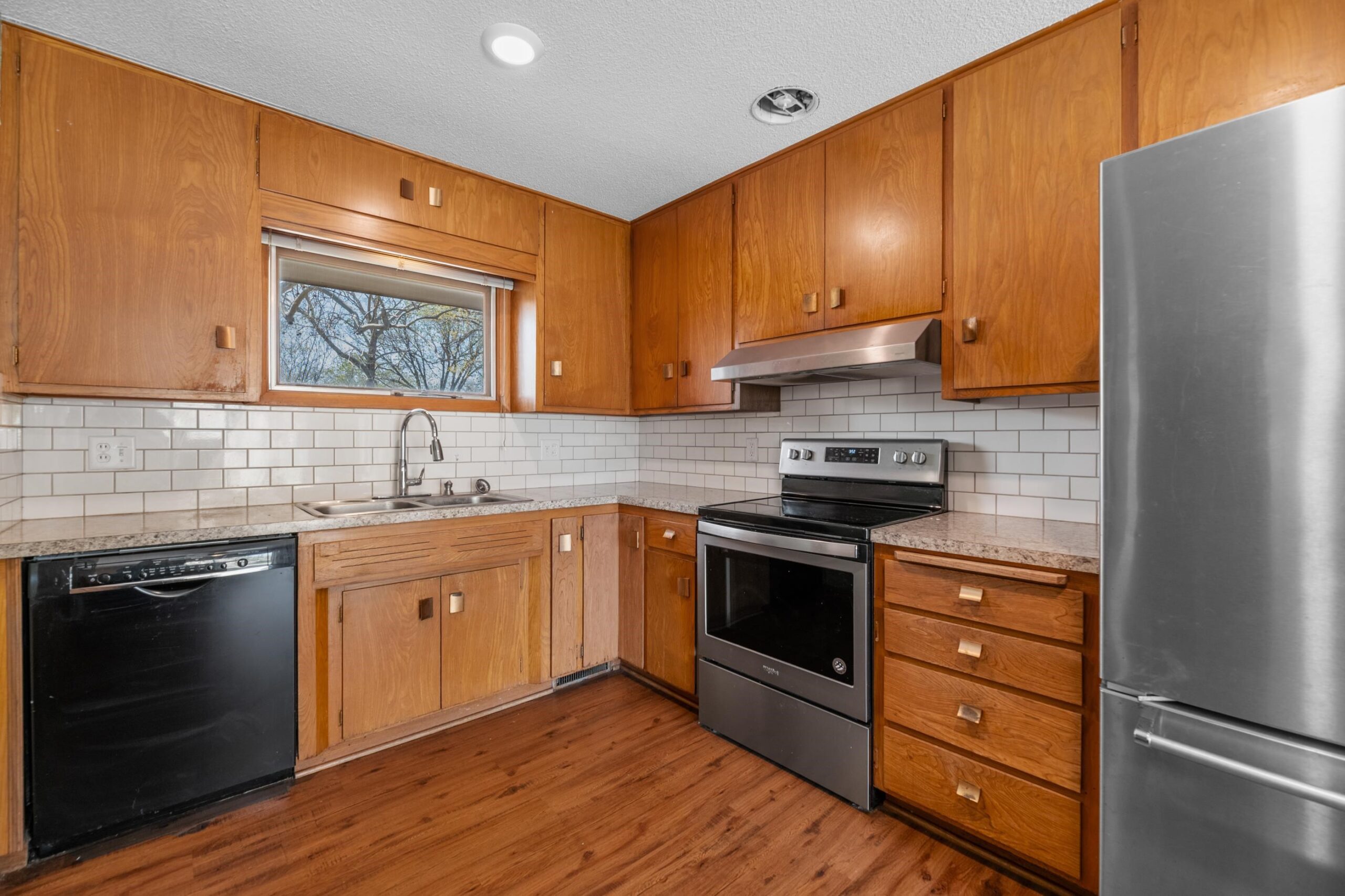- Description: Step into charm and style with this meticulously maintained home, perfectly blending mid-century modern vibes with everyday comfort. Nestled on a spacious, fully fenced lot, this property offers room to breathe, play, and entertain. Inside, you'll find 3 main floor bedrooms, an inviting layout, and a cozy yet open feel. The living room steals the show with a true wall of windows—flooding the space with natural light and offering peaceful views that change with the seasons. The kitchen has a perfect blend of updates and mid century charm. There's even a hard to find extra half bath on the main floor. The finished basement expands your living space with a warm and welcoming fireplace, a dry bar perfect for entertaining, generous storage, and a non-conforming bedroom that makes an ideal office, guest space, or hobby room. Don't miss the laundry chute. Out back, a large patio is ready for your morning coffee or evening gatherings under the stars. Whether you're hosting or relaxing, you’ll love the space and privacy this home provides. The storage shed is perfect for storing all the things to maintain the beautiful lawn. A brand new high efficiency HVAC system with variable speed fan and a humidifier too! Adorable from the curb and even better inside, this home’s location makes getting anywhere in town a breeze. Don’t miss this rare blend of style, space, and convenience. Show all description