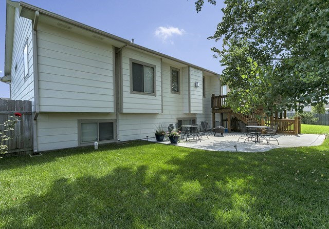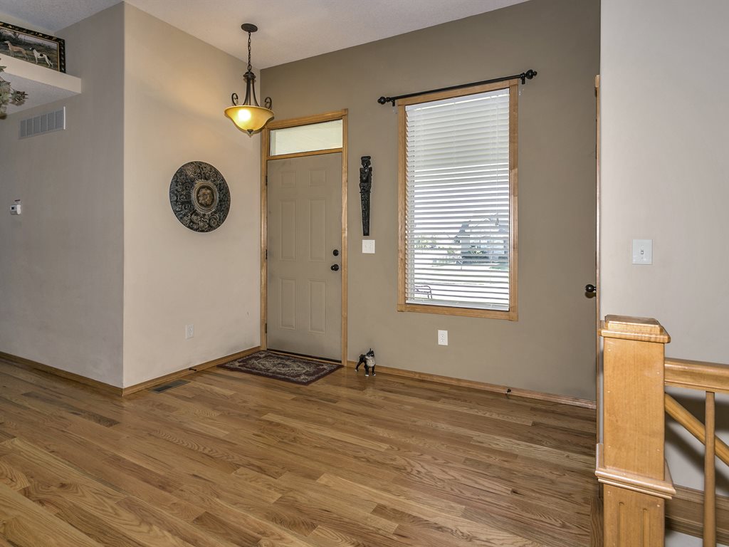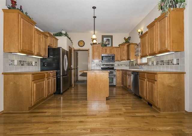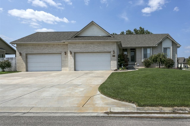 - Description: Located in the Maize South School District, this beautifully maintained custom home boasts an OVERSIZED 4 CAR GARAGE, on short 1/2 Acre fenced lot with MATURE TREES! You'll love the gleaming hardwood floors in Living, dining, kitchen and halls, Spacious Kitchen with Center Isle and maple cabinetry, a lower level family room with walkout to covered patio, wetbar, projection TV, 3rd Bath & Bedroom 4 & 5 each with walk-in closets! Cleaning day is a breeze with the whole house central vac with kick plate dust catcher in the kitchen! Energy conscious buyers will love the Blown in Bat insulation, High Efficiency Heat & Air, double pane windows with Argon gas, and cement fiber siding! Show all description