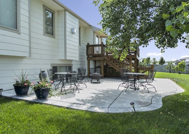 - Exterior Amenities: Patio, Deck, Fence-Wood, Guttering - ALL, Irrigation Well, Sprinkler System, Storm Doors, Frame w/Less than 50% Mas