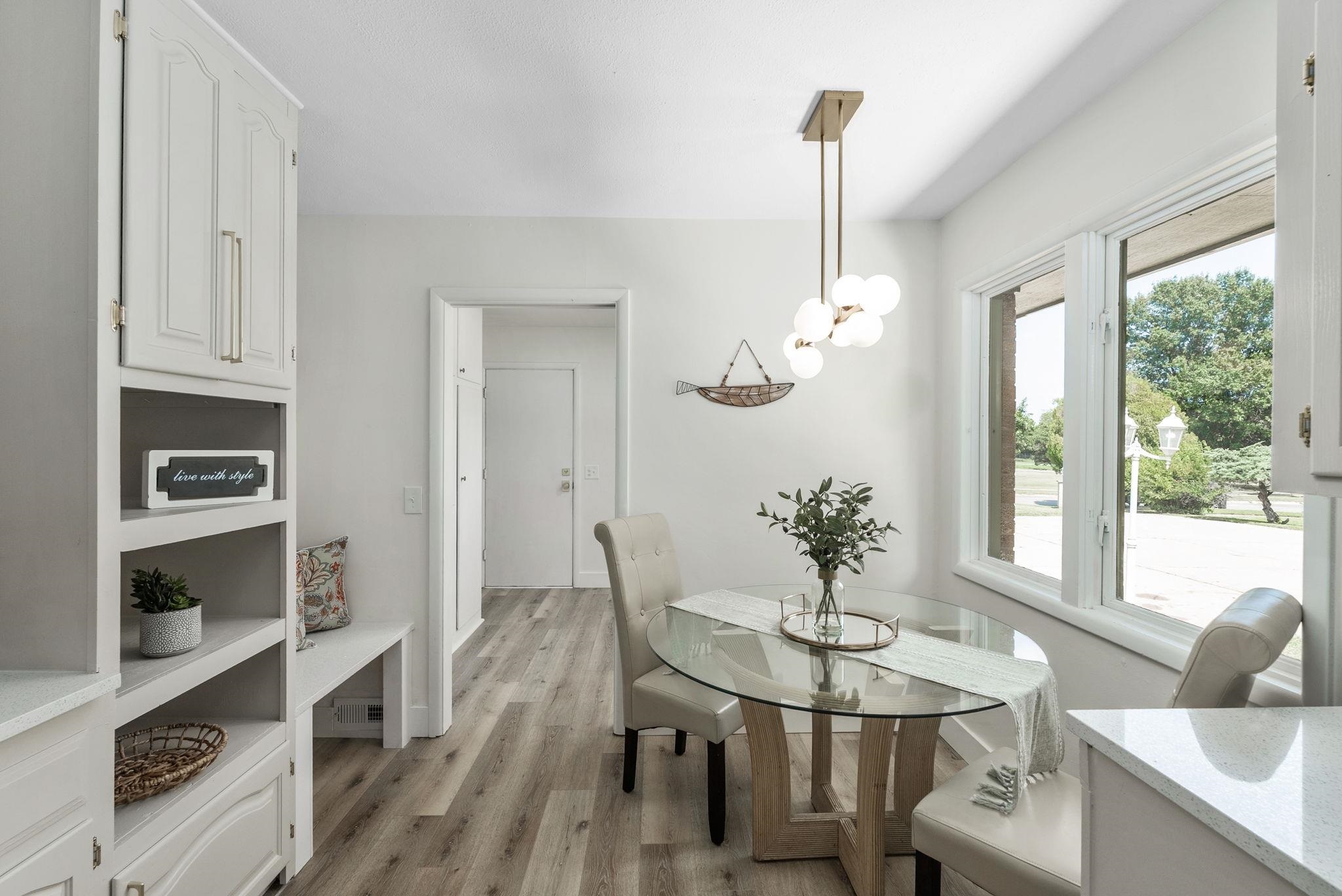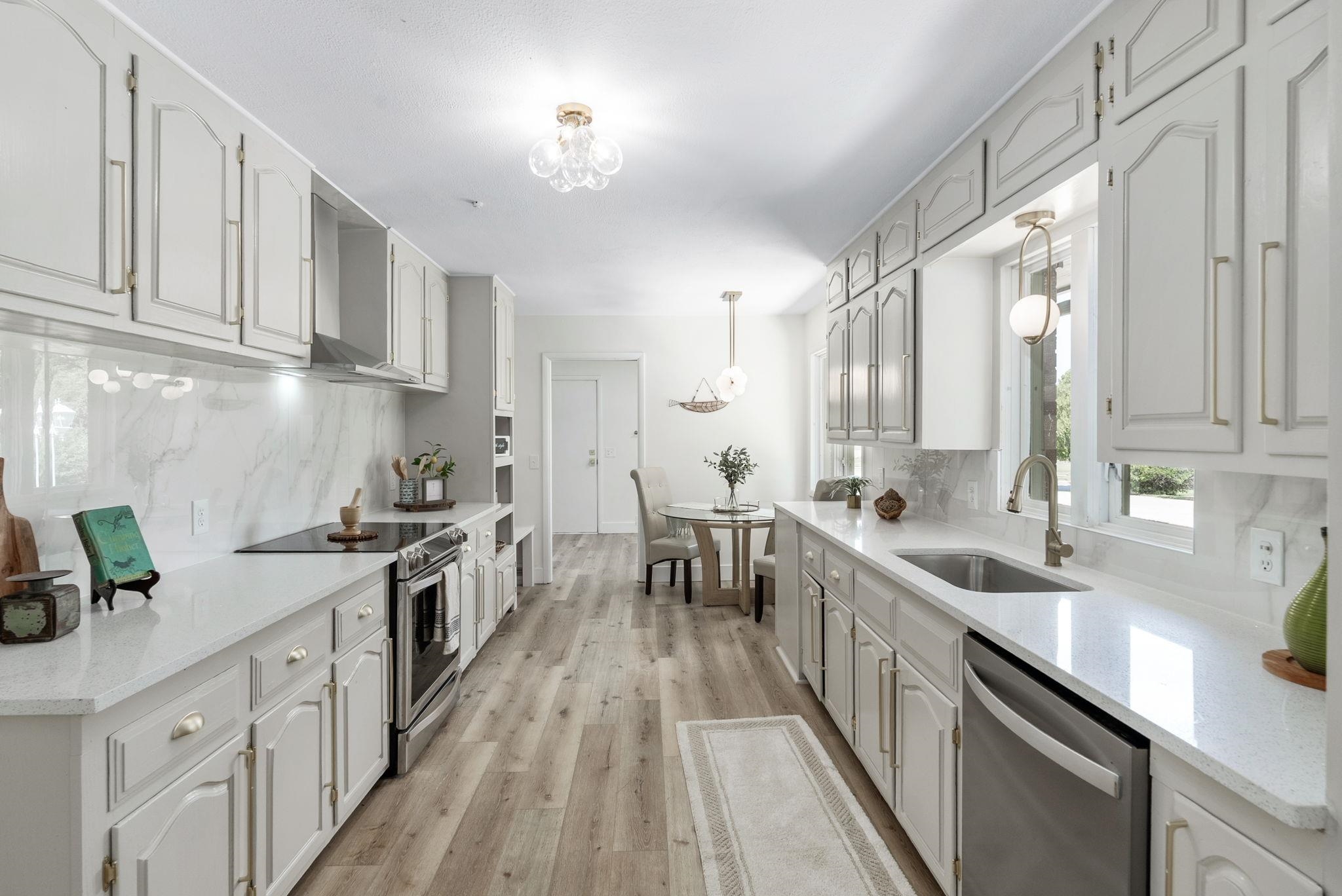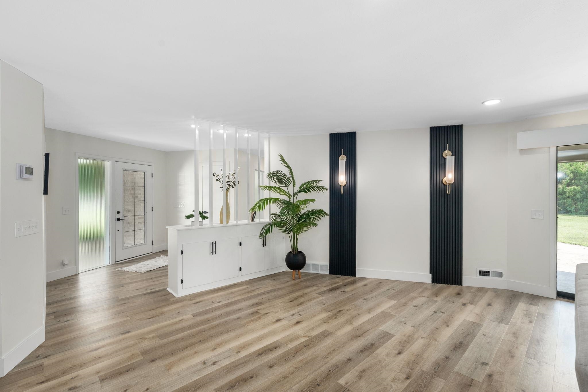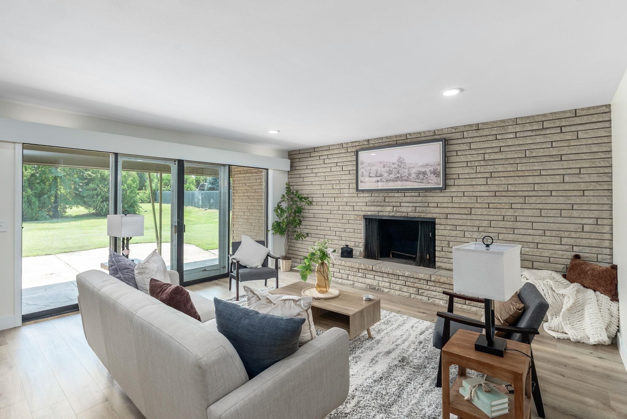 - Description: Welcome home to a world where timeless mid-century character meets modern luxury in this stunning ranch home located in Cedar Village. From the moment you arrive, the incredible curb appeal is undeniable, featuring a classic brick exterior, a charming circle driveway, and a spacious three-car garage. With a newer roof and AC unit (both three years old) and a brand-new electrical panel, this home offers both style and peace of mind. Inside, prepare to be captivated by an ideal layout that seamlessly blends form and function. Upon entering, you are greeted by original mid-century touches like a stylish slat wall, an indoor planter, and a stone fireplace, all beautifully preserved. Gorgeous, new luxury vinyl plank flooring flows throughout the home, offering both durability and elegance. The south wing of the home is dedicated to four bedrooms. Two bedrooms share a beautifully updated Jack and Jill bathroom, while the other two share a hallway bathroom, also updated to perfection. In the heart of the home, a large living room flows into a formal yet open dining area, complete with modern accent lighting that sets the perfect mood for any occasion. The kitchen is a chef's dream, updated from top to bottom with gleaming quartz countertops, a stunning backsplash, and painted cabinetry. Tucked away for ultimate privacy is the fifth bedroom, featuring a cozy electric fireplace—an absolute sanctuary for guests, a quiet home office, or a peaceful retreat away from the main living areas. Speaking of convenience, did we mention the dedicated mudroom, laundry area, and a half bath located right off the garage before entering the breakfast nook in the kitchen? All of this sits on a magnificent 0.8-acre lot, offering an abundance of outdoor space for recreation and relaxation. This home screams luxury, while its price makes it an unbelievably affordable opportunity to own a unique and updated masterpiece on Christy Pl. Show all description