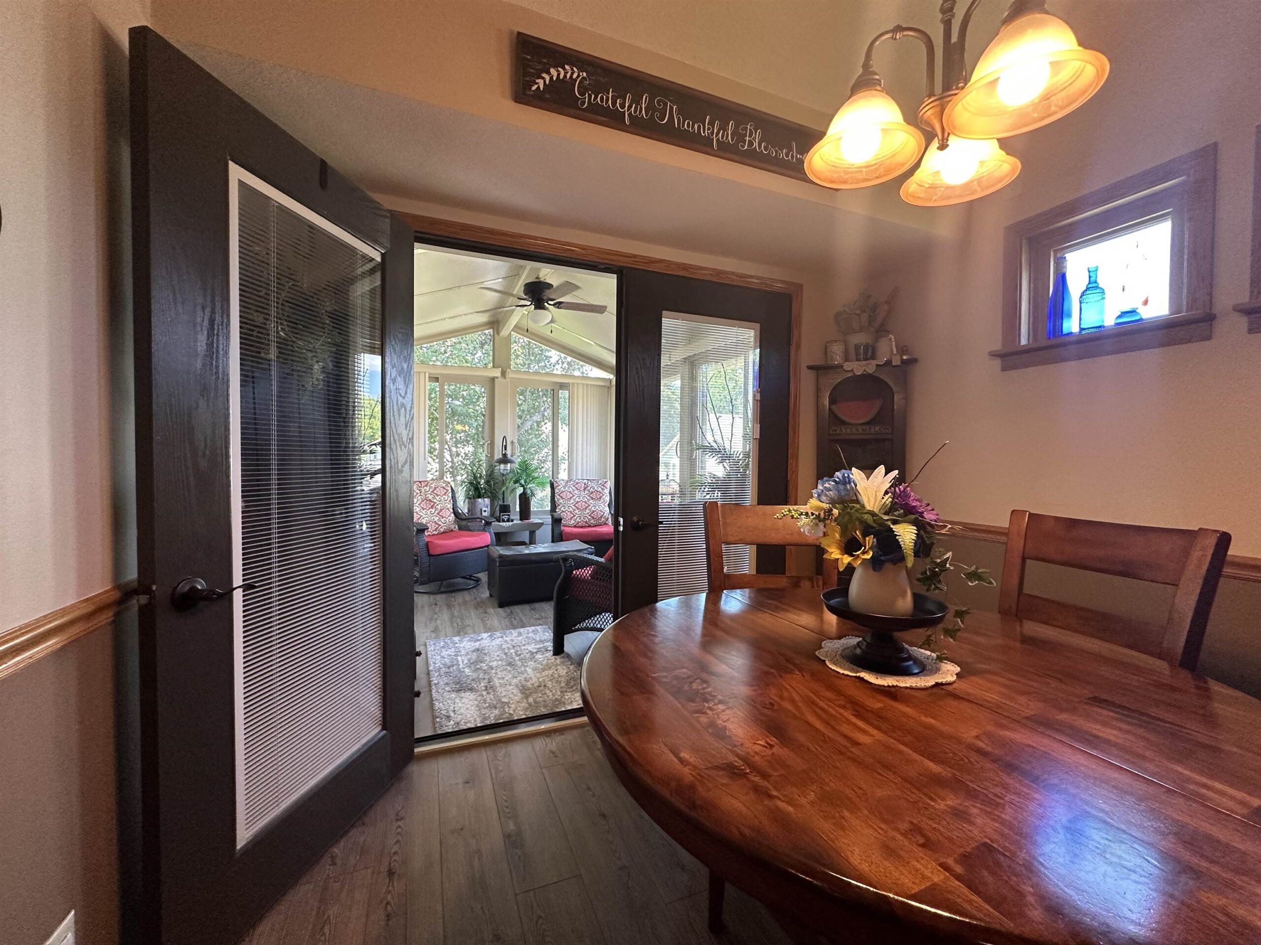 - Description: This well-maintained home is packed with features and ready for its next owner. The main level boasts a beautiful kitchen that opens up to an enclosed deck—complete with its own mini-split HVAC system for year-round comfort. You'll also enjoy two dining areas, a spacious living room, and a large master suite with a luxurious en-suite bathroom featuring an onyx shower. The fully finished walkout basement expands your living space with a generous family room, a wet bar perfect for entertaining, two additional bedrooms, a full bath, and plenty of storage throughout the home. Step outside to a fenced backyard with a convenient storage shed—ideal for outdoor tools or hobbies. Show all description
