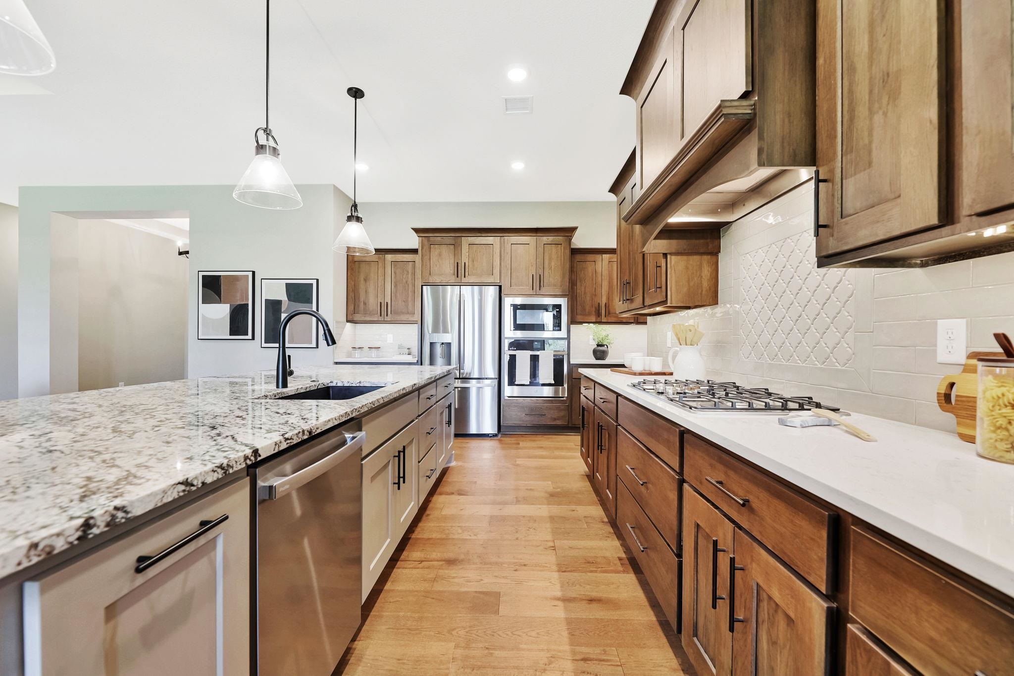 - Master Bedroom: Master Bdrm on Main Level, Split Bedroom Plan, Shower/Master Bedroom, Two Sinks, Quartz Counters