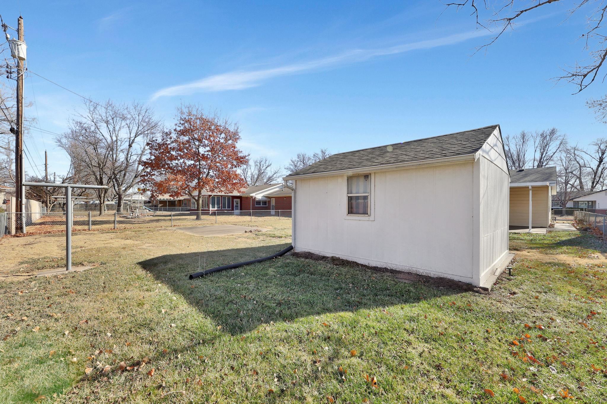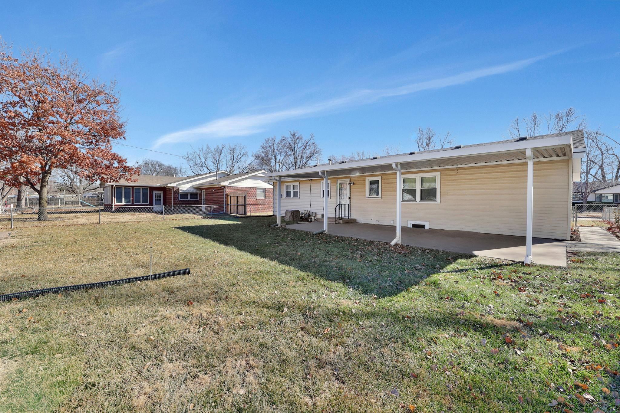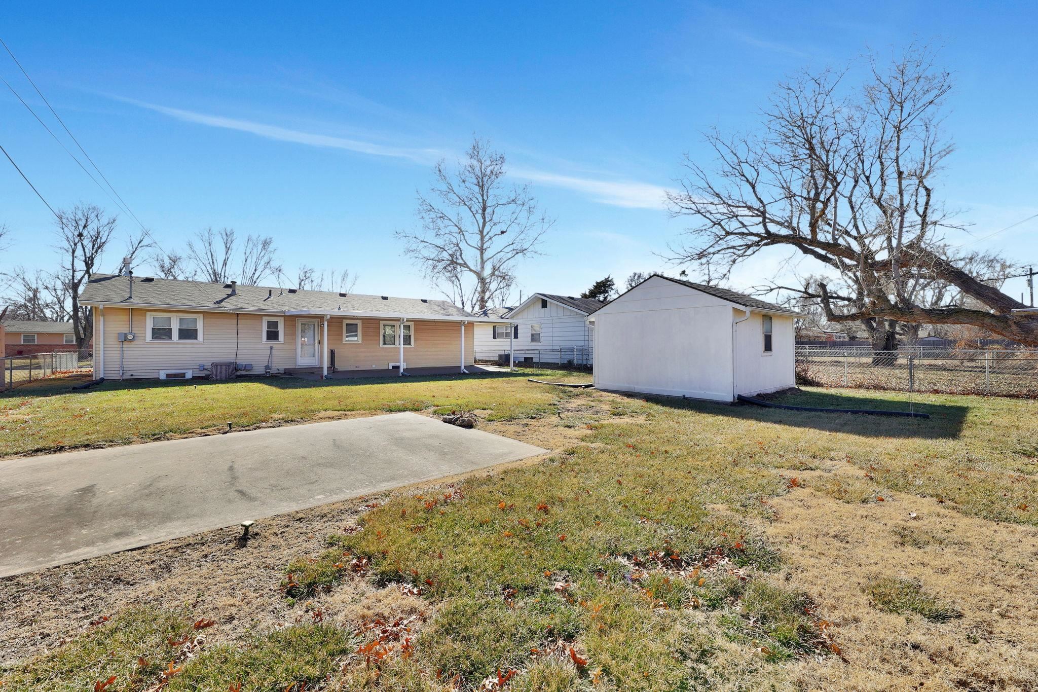 - Description: This home has so much charm. The 3 bedroom / 1.5 bath home is located close to Orchard Park. The main bedroom and an attached half-bath for privacy. The backyard has a spacious covered patio and a nice fenced in yard with storage shed, sprinkler system with private well for watering. The HVAC unit was installed new in 2019. The Impact Resistant roof was installed in 2012 and Leaf Filter protection in 2023. The kitchen features a 2021 Refrigerator / 2019 Microwave / 2022 Dishwasher. Security System. The 2024 Washer/Dryer in the basement is negotiable. You will have easy access to New Market Square, Dillon's, Restaurants and I-235. Home is being sold as-is. Seller will not make any repairs. Seller wishes to keep the rose bush on the westside of home. Seller would like to remove in the spring. Show all description