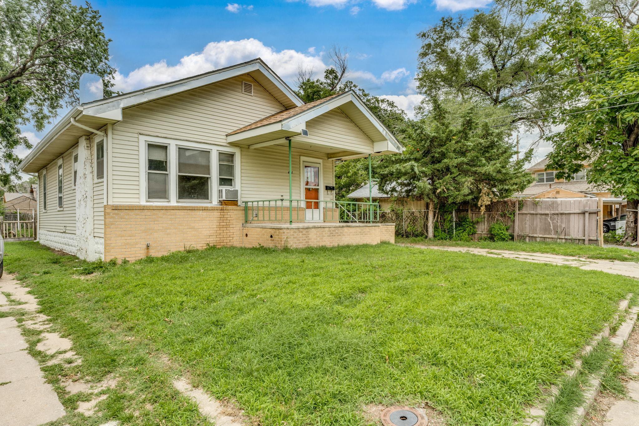 - Description: 2-Bedroom Bungalow with Income Potential Near North High! Discover this unique bungalow, perfectly situated near North High School, offering an incredible blend of comfortable living and potential income generation. This property stands out with its flexible layout, featuring two distinct living areas, each complete with its own kitchen and full bathroom. The main residence welcomes you with an inviting living room, complete with a fireplace, flowing into a formal dining area. This section includes a spacious main-floor bedroom with ample closet space and a full bathroom with a tub. Upstairs, you'll find a charming second bedroom, with original hardwood floors and an abundance of natural light. The kitchen features lot of natural light. Adding to the property's unique appeal is a separate attached studio apartment at the rear. This bright and open space includes a living/sleeping area, a full bathroom with a shower, and its own dedicated kitchen. With a private entrance leading to a partially covered patio, this unit is ideal for guests, extended family, or as a rental to help offset your mortgage! Outside, enjoy the convenience of an oversized detached garage, low-maintenance vinyl siding, and a welcoming covered front porch. The fenced yard offers privacy and a secure space for pets or play. This home is a fantastic opportunity for anyone looking for a property with character and the potential for a savvy investment. Don't let this one slip away! Show all description
