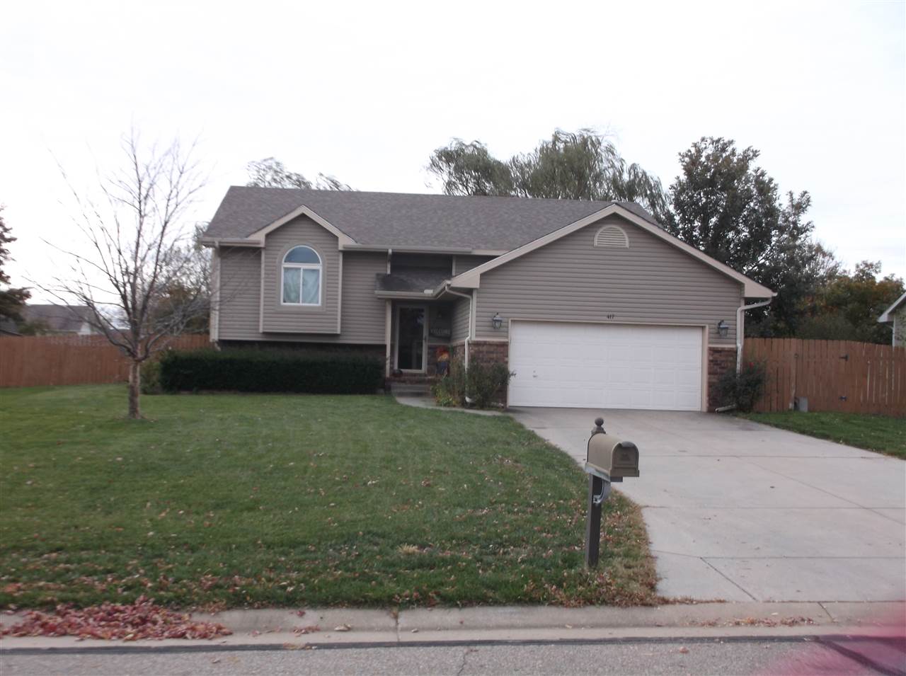 - Description: Call Carson Cross for a private showing (316) 644-0610. Well maintained charming family home. This home has a sprinkler system and cased well, privacy fenced with mature trees, storage shed, covered deck and walk out basement. Open floor plan with fully applianced kitchen with eating bar. Large family room with surround sound. The main bath has granite counter with double sinks and tile floor. 2 bedrooms on the main level and 2 more in the walk out basement. Newer carpet in the basement with neutral interior colors. Show all description