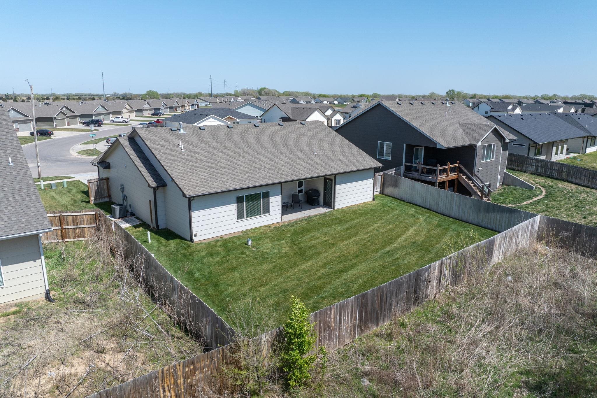 - Description: Better-Than-New Zero Entry Home in the Desirable Maize School District! This stunning 3-bedroom, 2-bathroom patio home offers everything you need and more! Located in the sought-after Maize School District, this home boasts beautiful granite countertops in the kitchen and bathrooms, elegant coffered ceilings, and neutral finishes throughout, making it move-in ready. Enjoy a spacious, open-concept design perfect for both everyday living and entertaining. Take in the breathtaking Kansas sunsets from your covered patio. Do you like to have the best yard on the block? No problem, the well and sprinkler system installed make that a breeze. The backyard is fully fenced, offering the perfect space for outdoor activities or relaxation. Conveniently located near shopping and dining options, this home combines comfort and practicality in an unbeatable location. Don’t miss the opportunity to call this beautiful property yours—schedule a tour today! Show all description