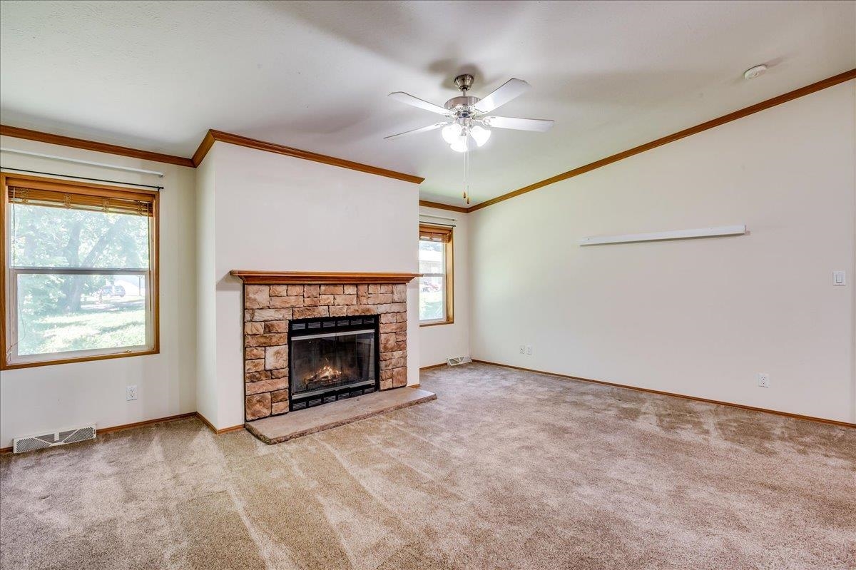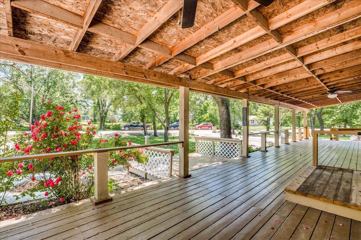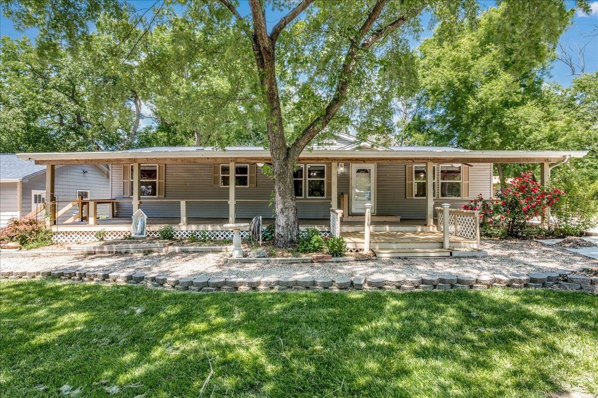 - Description: WELCOME HOME! just shy of a half acre lot. Lush grass, soaring trees on a corner lot. Giant covered front porch. Nice and Clean 3 bedroom two bath ranch. Open Kitchen with Island and under counter lighting. Fireplace in the Living Room. NEW Impact Resistant Roof. MAin Floor Laundry is a separate room. Sunroom on the back. Show all description