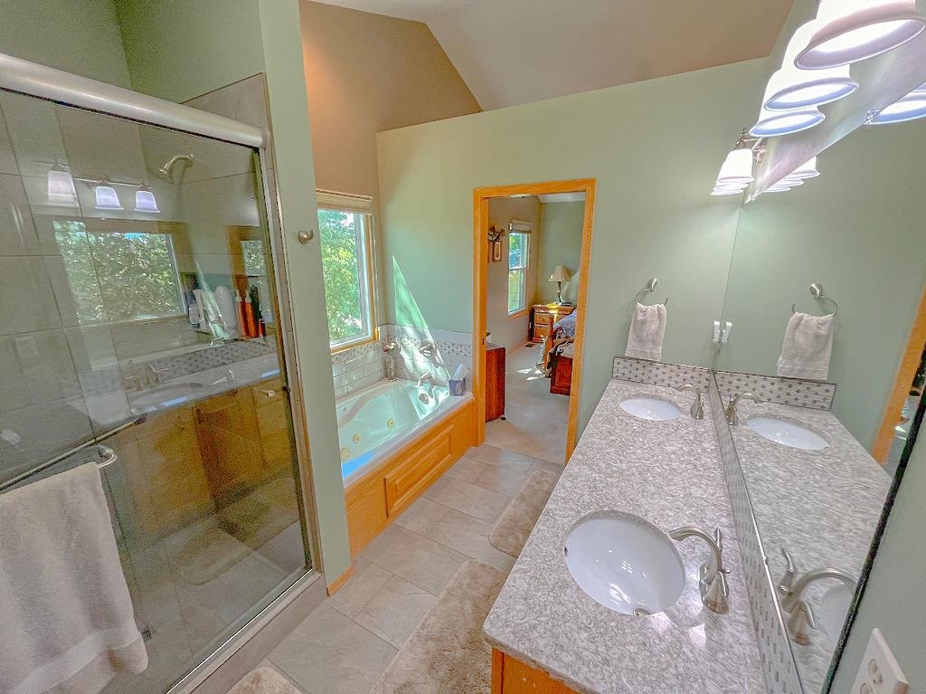 - Master Bedroom: Master Bdrm on Sep. Floor, Master Bedroom Bath, Sep. Tub/Shower/Mstr Bdrm, Two Sinks, Granite Counters, Jetted Tub
