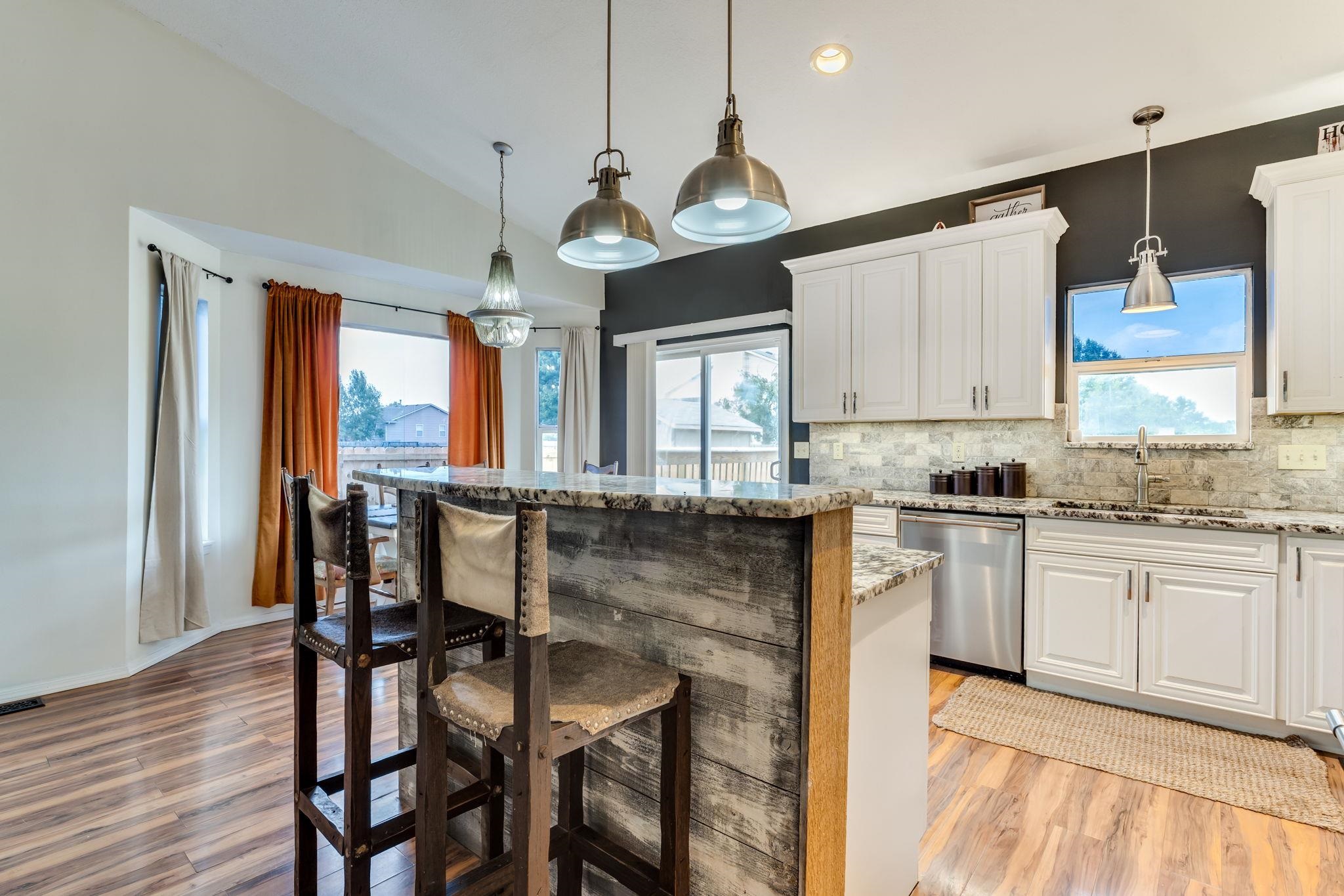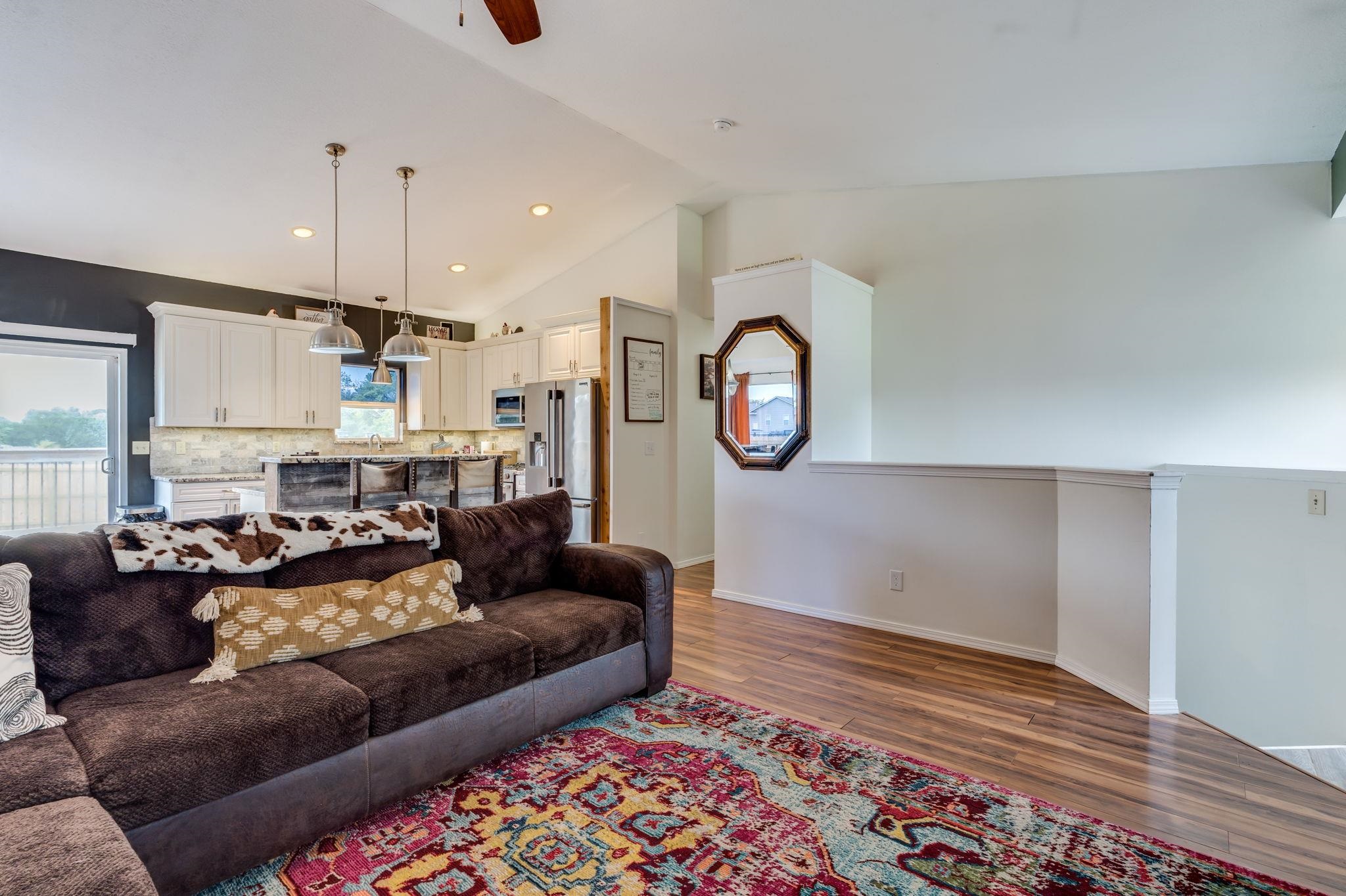 - Description: Welcome to this stunning 4-bedroom, 3-bathroom updated home located in the highly sought-after Country Walk Addition in Mulvane! Enjoy a spacious, open-concept living room, kitchen, and dining area perfect for entertaining. The kitchen features ample counter space and storage with the beautiful granite countertops! In addition, all appliances stay with the home! The main floor offers an additional versatile room that can serve as an office, pantry, or extra storage. The main floor hallway bathroom was beautifully re-done in 2024 with a modern, updated look. The basement has been completely refinished, featuring a large family room, a comfortable bedroom, a bonus room, and a generous laundry/storage room with another full bathroom. Step outside to a lovely backyard deck, completed in 2023, and a newly redone fence from 2025. This updated, beautiful home is truly ready for its new owners! Show all description