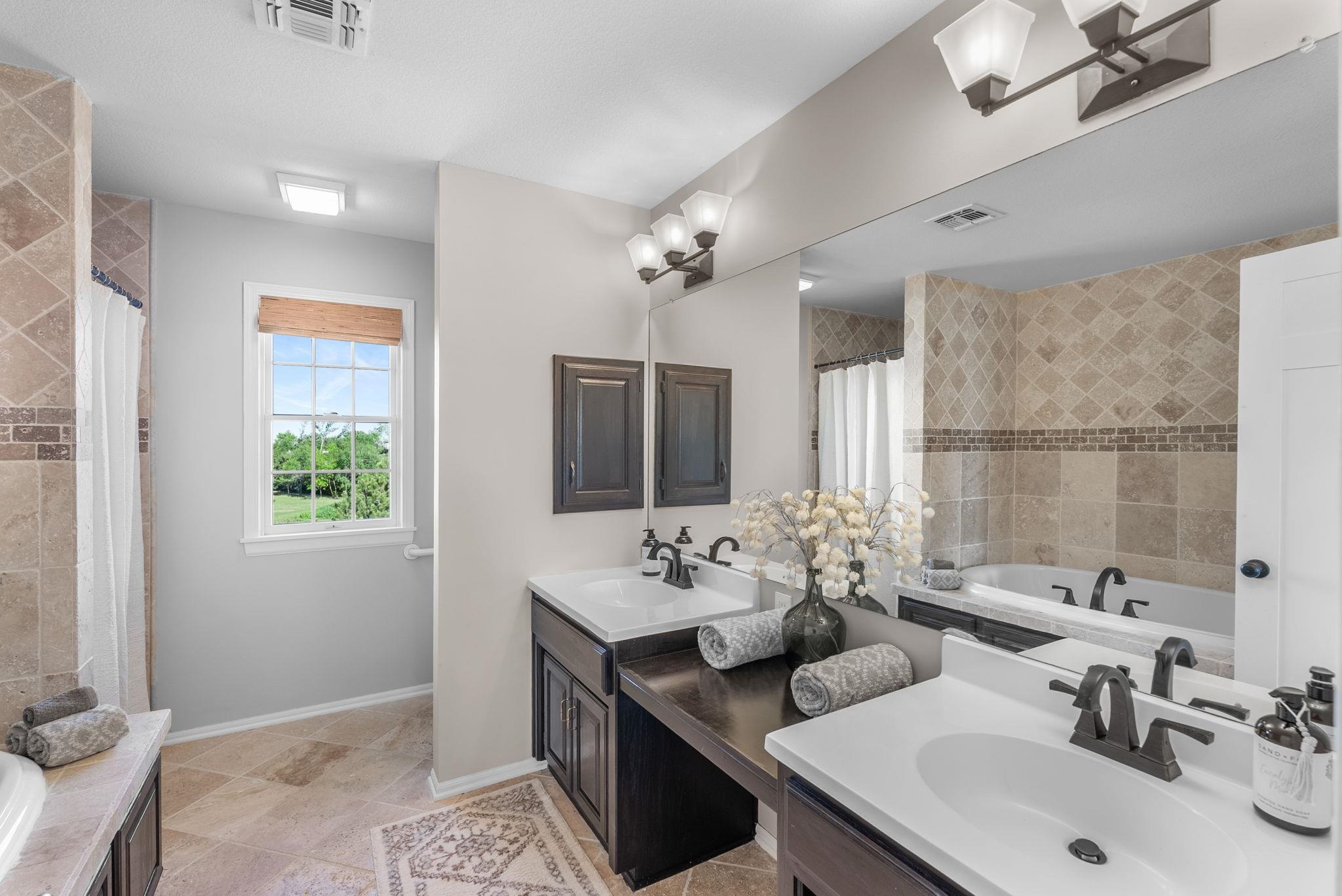 - Master Bedroom: Master Bdrm on Main Level, Shower/Master Bedroom, Two Sinks, Quartz Counters, Water Closet