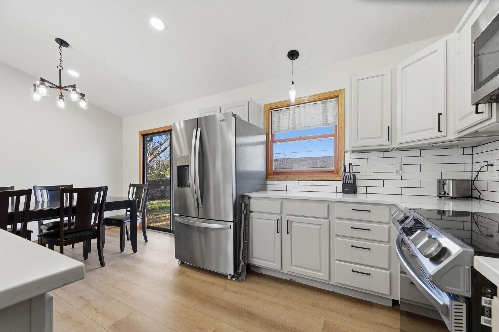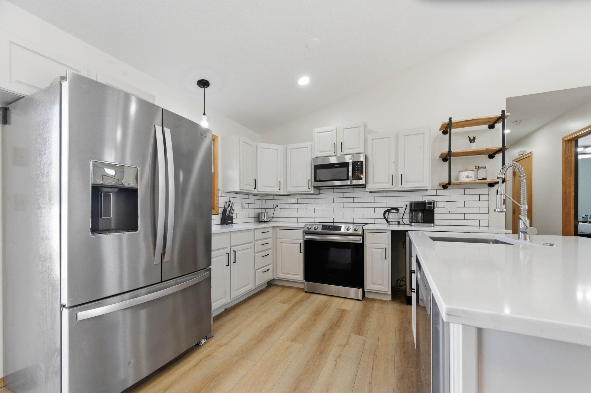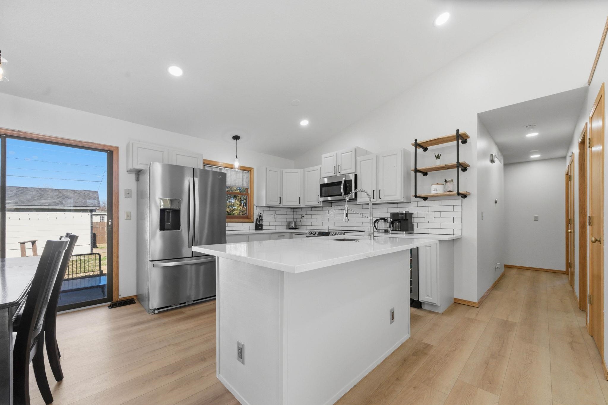 - Description: Beautifully updated 4-bedroom, 2.5-bath home in a prime location—just minutes from shopping, dining, the zoo, Sedgwick County Park, and convenient highway access. Enjoy the convenience of city amenities while tucked away on a quiet cul-de-sac with no through traffic. Step inside to an open floor plan featuring vaulted ceilings, newer flooring, and a remodeled kitchen with quartz countertops and stainless steel appliances. The main floor offers a spacious primary suite with two closets, a sliding door to the privately fenced side yard, plus an additional half bath. Two more bedrooms and a fully renovated hall bath with a gorgeous walk-in shower complete the main level. The finished basement includes a large rec room, a fourth bedroom, full bath, laundry room, and an oversized bonus room with a huge walk-in closet. Basement updates include fresh paint and new carpet. The fully finished 2-car garage features epoxy floors and a new door and opener. Outside, enjoy a large privacy-fenced yard, massive shed/workshop, patio, newer exterior paint, and a sprinkler system with irrigation well. Move-in ready and packed with upgrades—this one has it all! Show all description