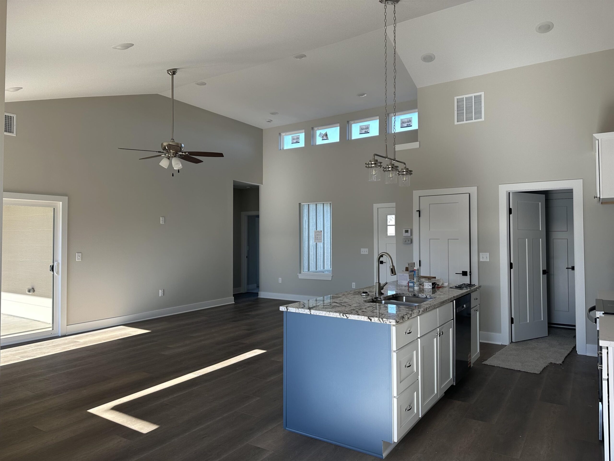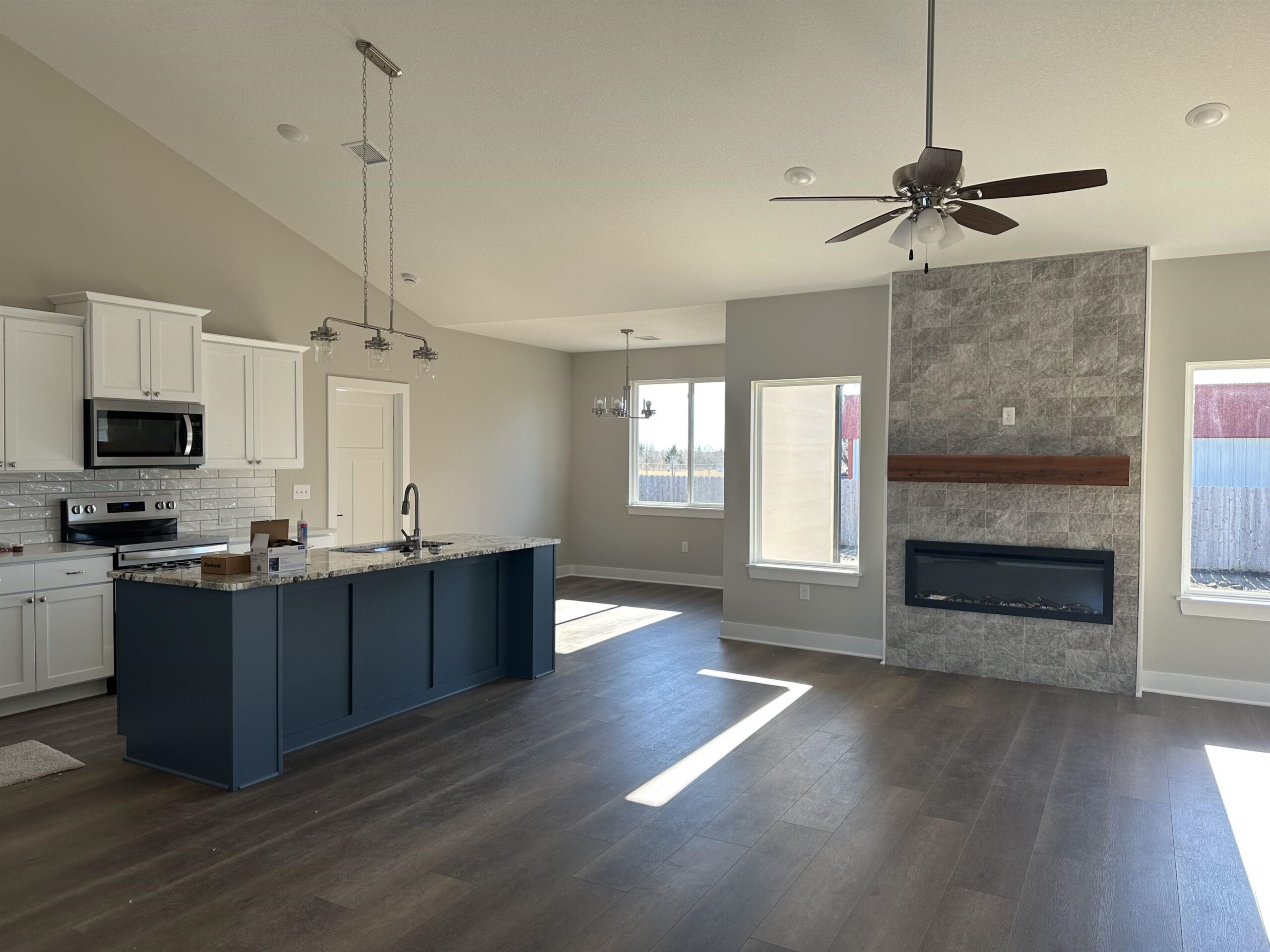 - Description: The "Piccolo" plan made larger with 3 bedrooms, 2 baths, and 3 car garage! Lovely kitchen in the very open plan with a nice island with seating overlooking the living room with electric fireplace. You'll love the pretty stone on surrounding the fireplace! Primary suite is spacious with an extra large closet. Off to the side you’ll enjoy the covered and screened in back patio. Spacious 3 car garage includes storm shelter. Curbless shower in primary bath. Fence is included in addition to an extra large concrete patio out back! Includes well, sprinkler, sod, and landscaping. In Edgewater Patios, the homeowners have control over their own well and sprinkler systems, so you determine when and how much you water. Information deemed reliable but not guaranteed and may change without notice. Room sizes estimated. Taxes estimated and shown on vacant lot. Specials may not be entirely spread yet on this lot. There is a $250 mailbox fee collected at closing. One member of Wells Construction LLC is licensed realtor in state of Kansas. Show all description