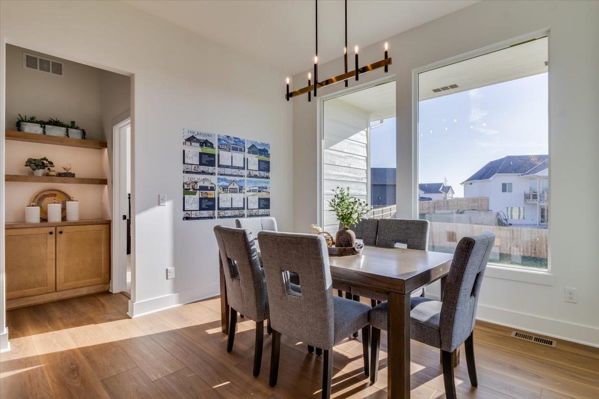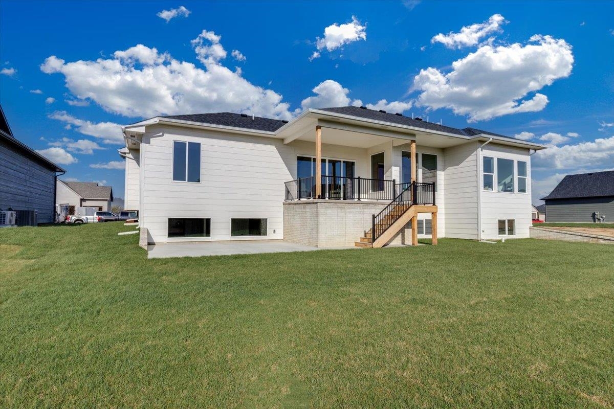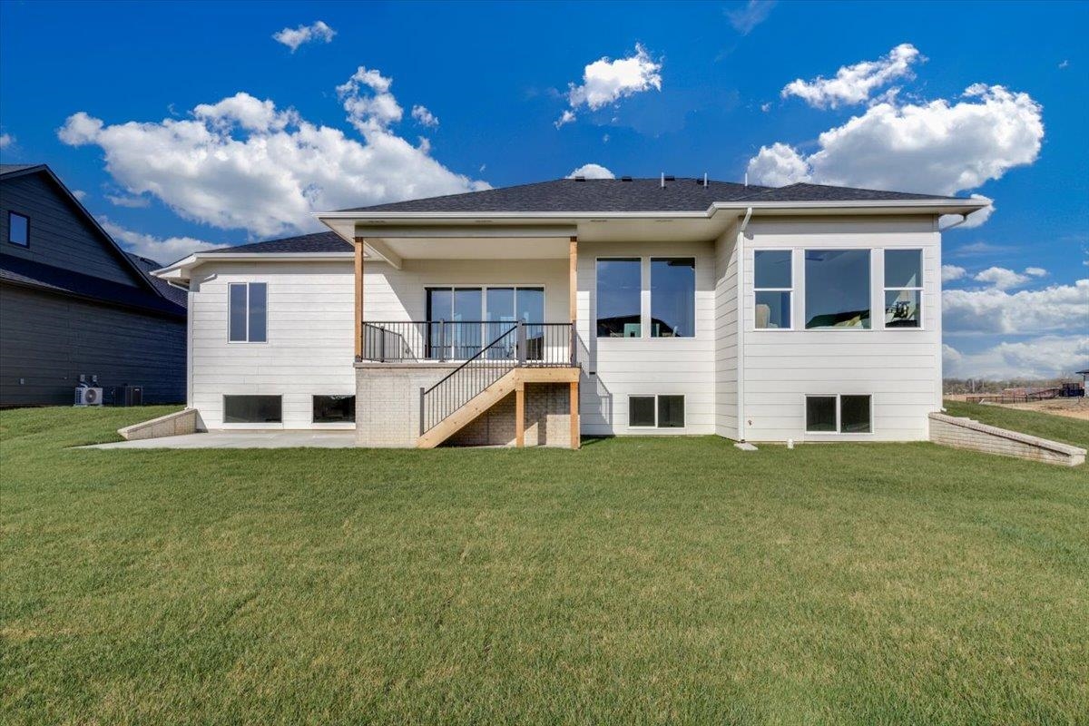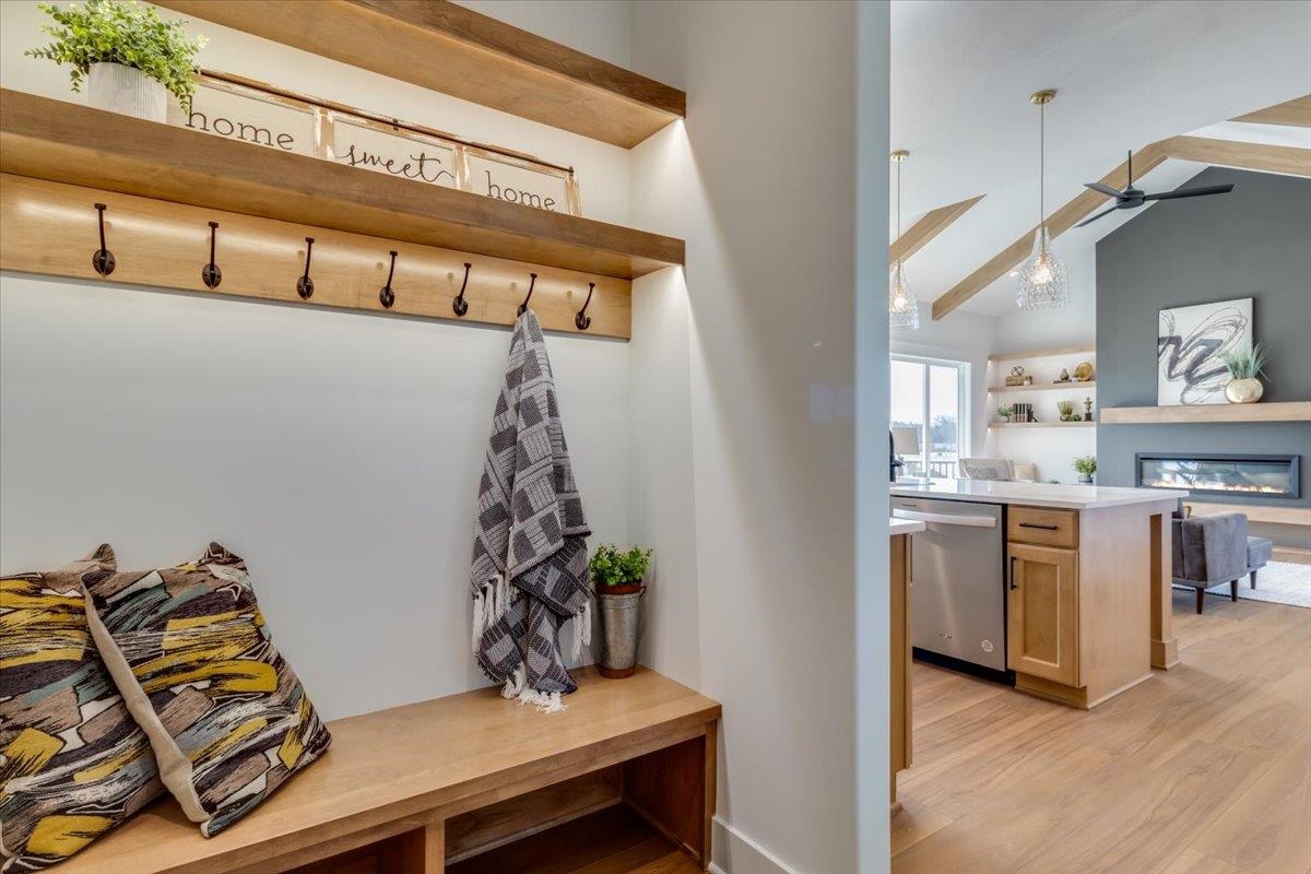 - Description: Introducing the Kenzie 2 by M&M Custom Construction in Henwick—an elevated take on a much-loved floor plan, designed with both luxury and livability in mind. This 5-bedroom, 3-bath home offers standout curb appeal with a stylish hip roof and an oversized 3-car garage featuring 8’ tall doors and a convenient side access man door. Just inside the inviting foyer entry you’ll experience a bright, open layout highlighted by a vaulted living room ceiling with stunning maple beams and a focal point electric fireplace paired by custom lit shelving. The kitchen is a true showpiece, complete with a gas cooktop, built-in oven and microwave, walk-in pantry, and an impressive side beverage countertop area featuring a wine cooler, shelving, and additional cabinetry. The primary suite delivers a high-end retreat with a 12’ ceiling accented by beams and a spa-like bath offering a separate soaking tub, walk-in shower with dual heads, and upgraded sconce lighting. Downstairs, the finished basement is built for entertaining—featuring a spacious family room, a full wet bar with island seating in front, and has room for a full-size refrigerator. Plus, don’t miss the bonus space tucked under the raised concrete patio—perfect for a unique game room, lounge, or speakeasy-style retreat. Outdoor living is just as impressive with both a raised covered concrete patio and an additional lower patio, creating the ideal setup for relaxing or hosting. Thoughtful details throughout include a floating bench/drop zone off the garage entry, custom built-ins with LED lighting, and a sidewalk connecting the driveway to the garage man door on the side of the home. This home is the perfect blend of function, style, and standout features. Don’t miss your chance to tour this home in Henwick! Information deemed reliable but not guaranteed and may change without notice. Specials and generals may not be entirely spread yet on this lot. There is a $250 mailbox fee collected at closing. This is a model home and not for sale at this time Show all description
