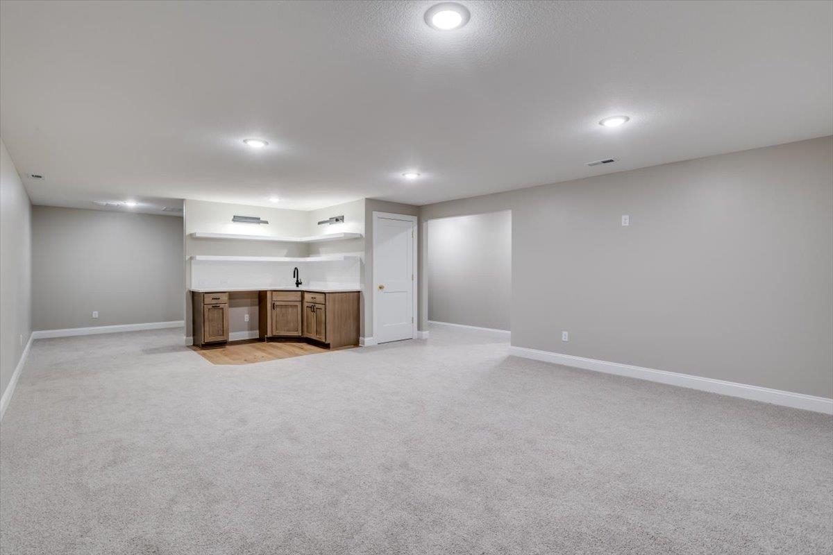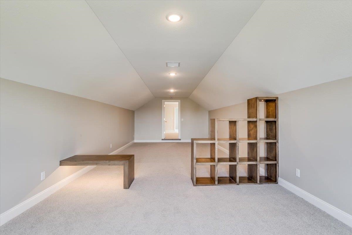 - Description: The stunning “Eden” is a 1 1/2-story home with 5 Bedrooms and 3 ½ baths all designed to offer comfort, luxury, and functionality. As you approach, the charming exterior features classic Craftsman elements and stone along with an inviting covered porch. The oversized, extra-deep garage boasts 8 and 10-foot garage doors, providing ample space for vehicles and storage. Upon entering, the main floor greets you with a spacious and open layout. The living room is the heart of the home, featuring a cozy fireplace surrounded by built-in cabinets, perfect for showcasing your favorite decor and storing essentials. Adjacent to the living room is the gourmet kitchen, complete with a stylish range hood, modern appliances, and ample counter space for culinary adventures. A convenient bench drop zone with cubbies is located near the back family entrance, offering a practical space for coats, shoes, and bags. Also on the main floor, the primary bedroom is a true retreat, featuring a barn door along with a vaulted ceiling adorned with a beam, adding character and charm. The ensuite bathroom is a luxurious haven, complete with a spacious Roman shower, offering a spa-like experience. Adjacent, you'll find a pocket office, an ideal space for remote work or managing household tasks. The main floor laundry has a laundry chute which adds a touch of convenience you’ll love! Upstairs you’ll find 2 more bedrooms and bath, along with a versatile loft area and also a bonus room perfect for a secondary living space or play area however you choose. The finished basement is an entertainer's dream, featuring a wet bar for hosting gatherings and a spacious open area that can be customized to suit your needs, whether it's a home theater, game room, or family lounge. In addition, 2 more bedrooms and bath are in the basement as well. Outdoor living is enhanced by a beautiful concrete patio, providing a low-maintenance space for relaxation and entertaining. This Craftsman-style home combines classic architectural details with modern amenities, upgraded insulation and HVAC system, all creating a perfect blend of elegance and practicality for today's lifestyle. Taxes estimated. Information deemed reliable but not guaranteed and may change without notice. Taxes are shown on vacant lot only. Specials may not be entirely spread on this lot.There is a $250 mailbox fee collected at closing Show all description