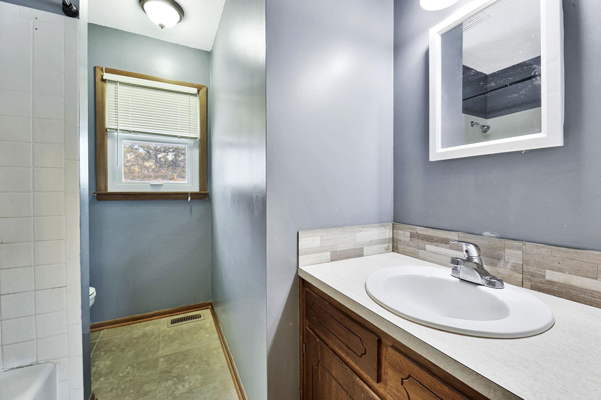 - Description: The space, neighborhood, and location is best experienced in person! Walk into the laminate flooring and light from the updated windows. The house is sectioned off wonderfully with a large living room which starts you on the tour. Or, walk straight through to the dining area and kitchen. Glazed cabinets, bright backsplash, and proverbial window over the sink views to the fully fenced huge backyard accessed by the sliding door. The half bath / laundry room is just off the entrance from the garage. Down the hall are three great sized carpeted bedrooms and the guest bath. The basement features a huge family room with plenty of gaming room or add a bonus room next to the existing one! One more full bathroom and storage room completes the basement. Seller already misses the neighborhood and is excited for the next owner to enjoy it! Show all description