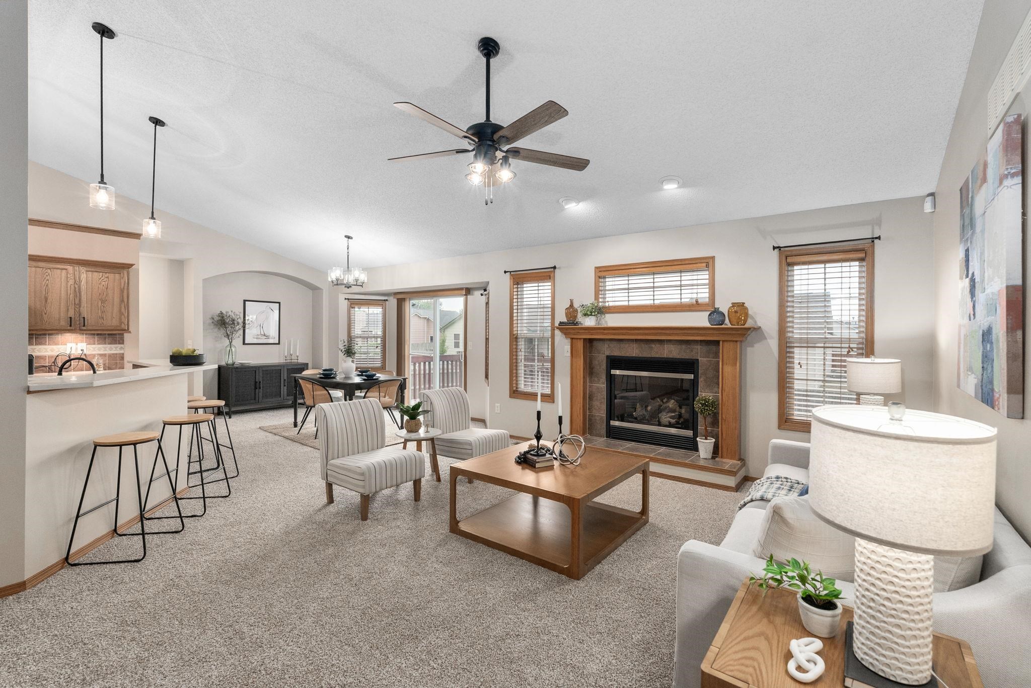 - Description: Welcome home to this super well-maintained 5bed/3bath/3car ranch that boasts a newly finished basement that has never been lived in, offering a blank canvas for recreation, work, or relaxation. Step inside to discover crisp new carpet throughout the living areas and bedrooms, a gas fireplace with tile surround, vaulted ceiling, new door knobs, and new lighting through out. The heart of the home is the kitchen, fully updated with brand-new quartz countertops, new hardware, a hidden walk-in pantry, and a full set of appliances remaining with the sale. An adjacent main floor laundry ensures function and ease. The primary suite offers generous space with wood-laminate flooring, coffered ceiling, and a walk-in closet. The newly refreshed primary bath features a soaker tub with separate shower, and has brand new quartz counter tops and new hardware. Both additional main floor bedrooms are clean and bright with ample closet space, and the hall bath is updated similarly to the primary. In the newly finished view out basement, discover an expansive family/rec room with an extended wet bar and surround sound wiring/speakers, two large bedrooms, a full updated bath with shower/tub combo, safe room, and dedicated storage. Mechanical upgrades include a security system with cameras that remain, and a 2-year-old roof and gutters. Outside, a newly stained deck invites outdoor entertaining, while fresh landscaping out front enhances curb appeal. This home has no special taxes, and strikes the perfect balance of move-in readiness and thoughtful design. Call us today for a showing before it's gone! *See the promo video for additional views of this property.* Show all description
