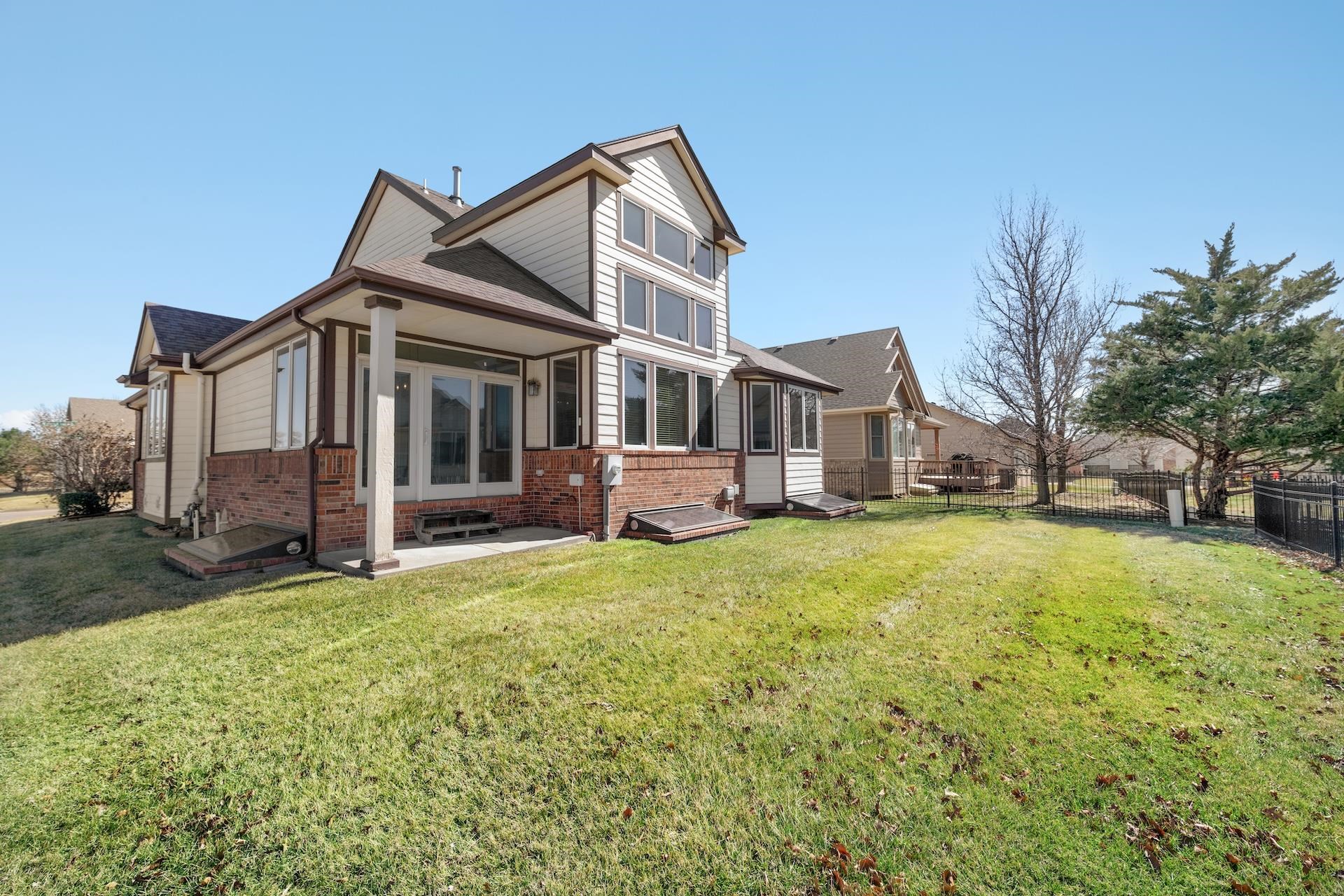 - Description: Welcome to this meticulously maintained and spacious patio home in the highly sought-after Willowbend North neighborhood of Northeast Wichita. With over 2, 900 square feet of finished living space, this stunning one and a half-story home is filled with architectural details that enhance its charm and functionality. As you approach the home, you are greeted by inviting landscaping and a charming front porch. Step inside to a grand entryway that leads to a convenient office with French doors, perfect for work or relaxation. The main level boasts beautiful hardwood floors that flow throughout most of the living spaces, providing warmth and elegance. The spacious living room features a striking two-story wall of windows that fill the space with abundant natural light, a cozy gas fireplace with built-in shelving, and an extra-long mantel for added appeal. The informal dining area, located just off the living room, continues the theme of openness with more windows to enjoy the view. The well-appointed kitchen is a chef’s dream with a gas cooktop, built-in oven, custom backsplash, granite-topped eating bar, stainless steel refrigerator, and ample cabinetry. All kitchen appliances are included with the home. Just a short distance away is the formal dining room, complete with a chandelier, perfect for hosting family dinners or special occasions. The main level also includes a convenient half bath and a large laundry room, adding practicality to the home. The primary suite is a tranquil retreat, featuring more large windows to take in the great views, a coffered ceiling, and a spacious walk-in closet. The en-suite bath offers heated tile floors, a luxurious jetted tub, a water closet, and a large separate shower. Upstairs, you’ll find a spacious carpeted loft with a walk-in closet that overlooks the open living area below. A hall bath with a tub/shower combo and a second bedroom complete the upper level. The daylight basement is perfect for entertaining, with a huge family room showcasing more architectural details, built-in shelving, and a wet bar with an eating bar. Two additional newer bedrooms and a third full bath finish the lower level. The home also offers a small, covered patio in the backyard, ideal for outdoor relaxation, and a two-car garage for added convenience. The HOA covers lawn care, sprinkler system maintenance, snow removal, and trash services, ensuring a low-maintenance lifestyle. Central vacuum system, wired for surround sound, Radon Mitigation system, 2 storage rooms. All kitchen appliances, washer, dryer and blinds stay with the home. Close to shopping, restaurants, churches and entertainment plus ease of reaching all areas of Wichita. Don’t miss the opportunity to own this beautiful home in the Willowbend North community. Schedule your showing today! Show all description