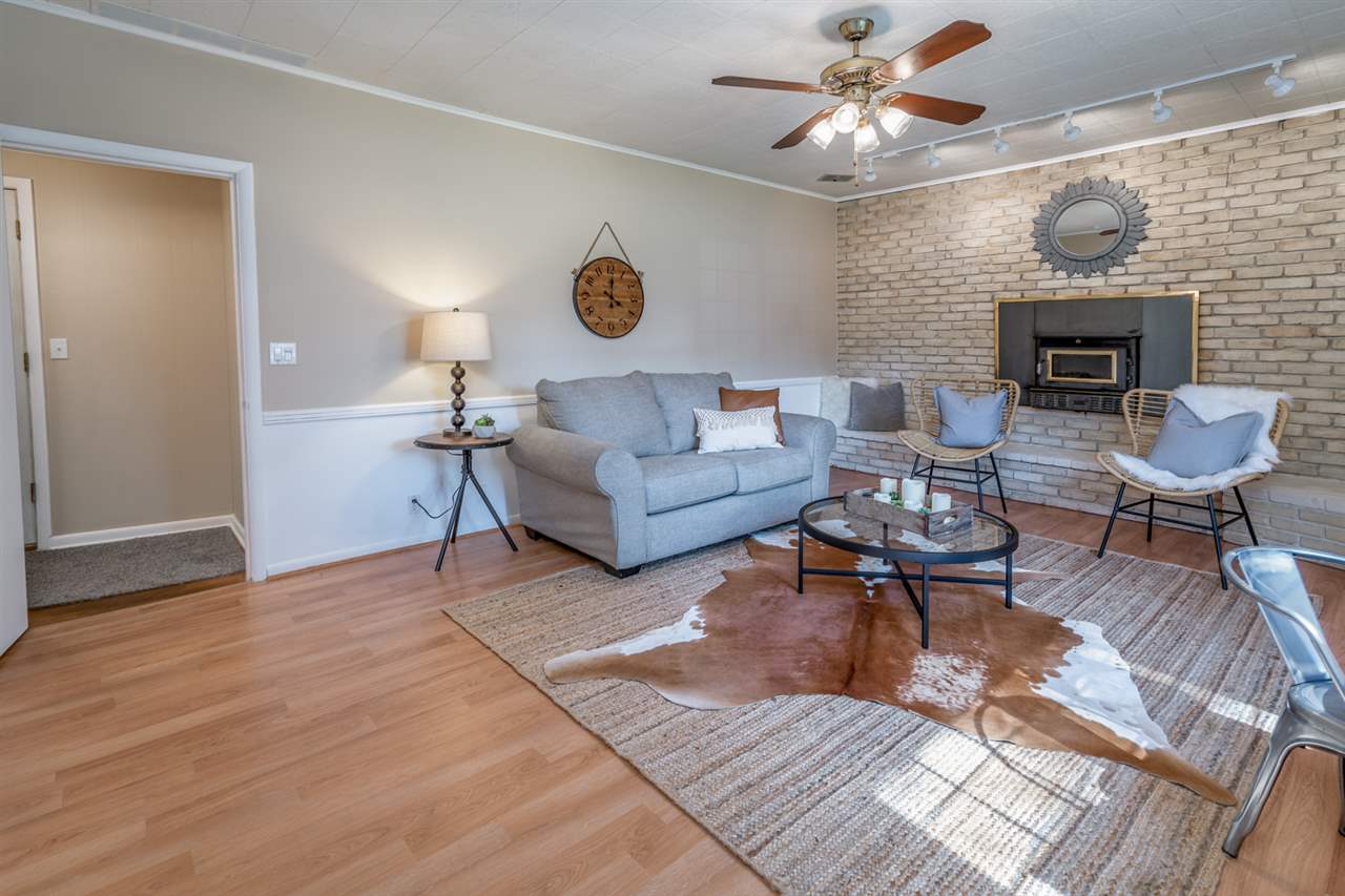 - Description: This solidly built, 1950's ranch style house has been renovated to its former glory to make a comfortable home for today. With 1850 square feet on the main floor, there is versatility in how the home could be used. While it qualifies as a four bedroom, two and a half bath home, the fourth bedroom with a fireplace could also be used as an additional main floor family room. This room also has its own half bath and a separate entrance to the outside which would make it perfect for a small business such as an insurance or real estate office or whatever your home business might be. The spacious galley kitchen features a large pantry, a new gas stove and new dishwasher, a beverage fridge. The glass front cabinets along one side provide china cabinet like space. The large, dine-in area in the kitchen opens to a formal dining room area and the living room with a floor to ceiling brick fireplace with a stunning custom mantel. Oversized sliding glass doors provide wonderful light into the entire living area as well as access to the deck and beautifully landscaped backyard. With mature trees and plantings, it wouldn't take much to restore this yard to its former glory. The backyard is fully fenced with a quaint picket fence along the northwest side of the house. There is also a one car garage/shop that can be accessed through the back yard by a man door. There is access to both the detached garage and the two car attached garage from Taft Street. The detached garage/shop has power and heat and would make a great shop area. The attached garage has attic storage with easy access stairs. The master bedroom suite has a walk in closet. Two more bedrooms and a full bath round out the main floor. The basement has a large family/rec room and a bonus room. There is a separate finished room for the laundry. The electrical panel and service to the home has been updated and there are newer windows throughout the house. Lawn care for this half acre plus lot is made easy with a sprinkler system and separate well for irrigation. There is a water softener for the home and a reverse osmosis unit in the kitchen. Show all description