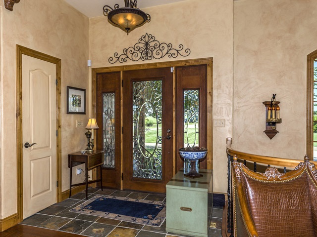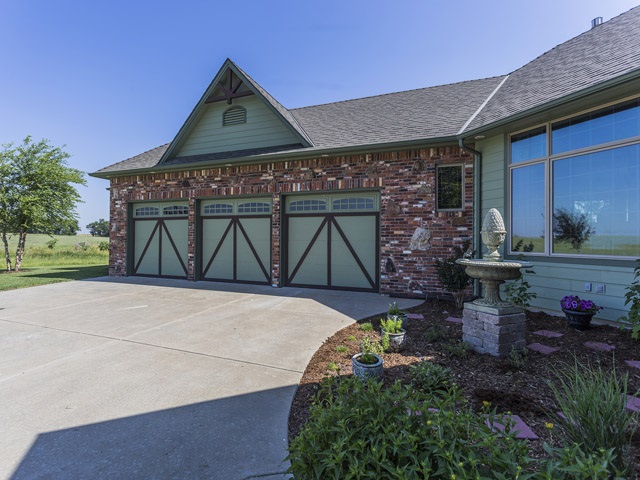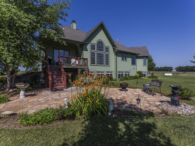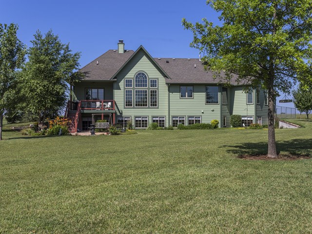 - Description: RARE OPPORTUNITY - 20 MINUTES FROM DOWNTOWN WICHITA - DREAM LOCATION - RURAL WATER - NO SPECIALS: This custom-built executive home is situated on 80 rolling, low maintenance acres of native prairie grass & features a 3-acre pond. Add'l adjoining 40 acres optional. It is 1 mi from paved road & located just 2 1/2 mi N of Andover I-35 access. From the moment you arrive, restored antique leaded bevel-glass entry door & sidelights beckon you inside! The soaring 17' vaulted ceiling of the living room features custom open-timber trusses with carved corbels. The mantle of the fireplace was adapted from an English-style salvage piece & crafted from 5 hardwoods. A vast window overlooks the pond & back meadow where deer are often seen grazing at dusk. The formal dining room window looks toward the west horizon & perfectly frames many gorgeous KS sunsets. The crystal chandelier & doors to kitchen are imported from Italy. TV/den area could also be 2nd main floor bedroom (for a total of 5 bedrooms) or an office. Tile flooring on the main level & scored concrete in the basement have radiant heat in addition to the geothermal heat-pump system for economical year-round comfort. Relax in the afternoon on the 16x12 covered deck while watching the bi-planes from Stearman Airfield dance overhead or gather with friends around a fire pit on a crisp evening on the Flagstone patio while gazing at stars unseen in the city. Bring your horses & build your outbuildings - the possibilities are endless! Write your own legacy of many wonderful memories made here on the prairie in this spectacular “designer showhouse!” Show all description