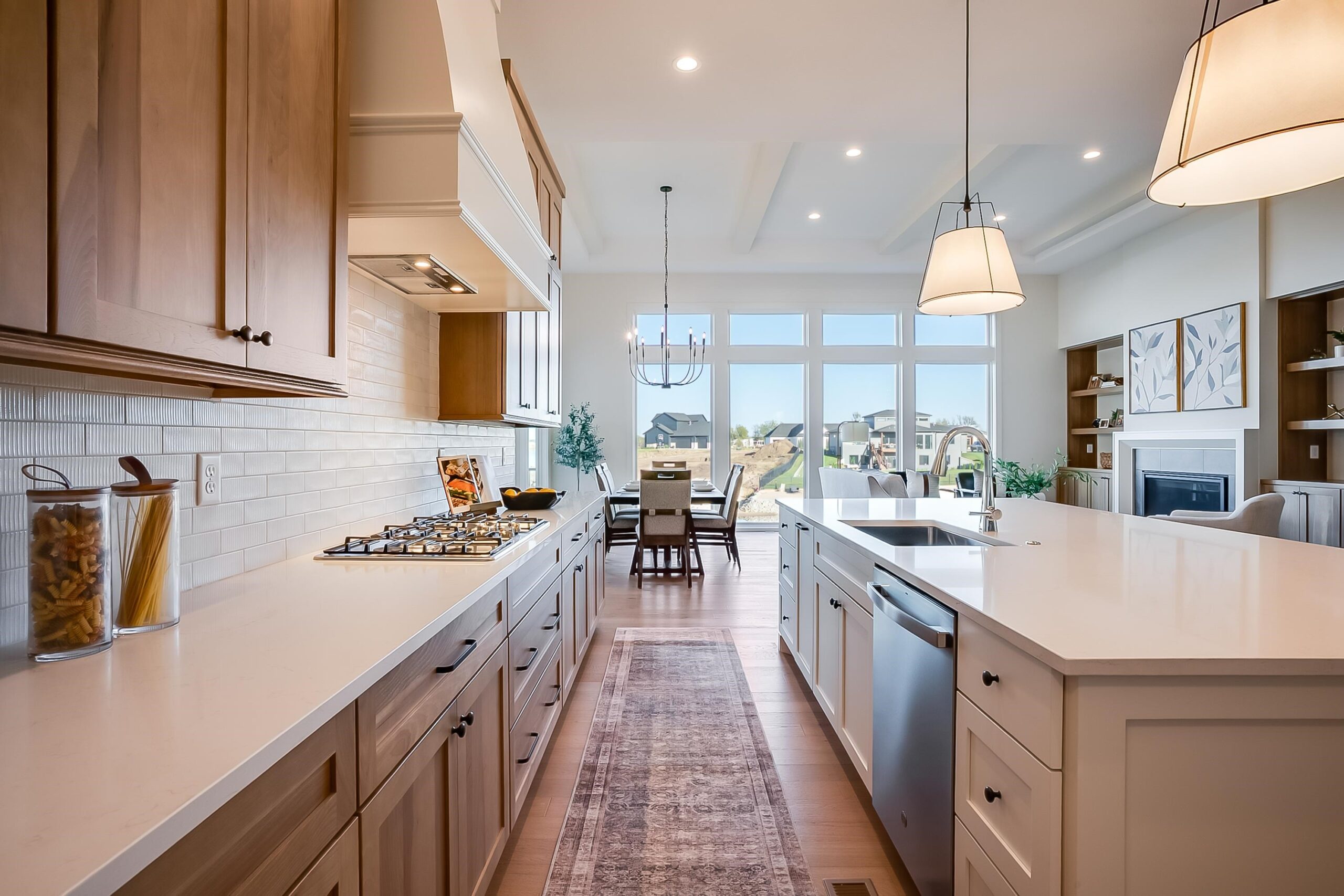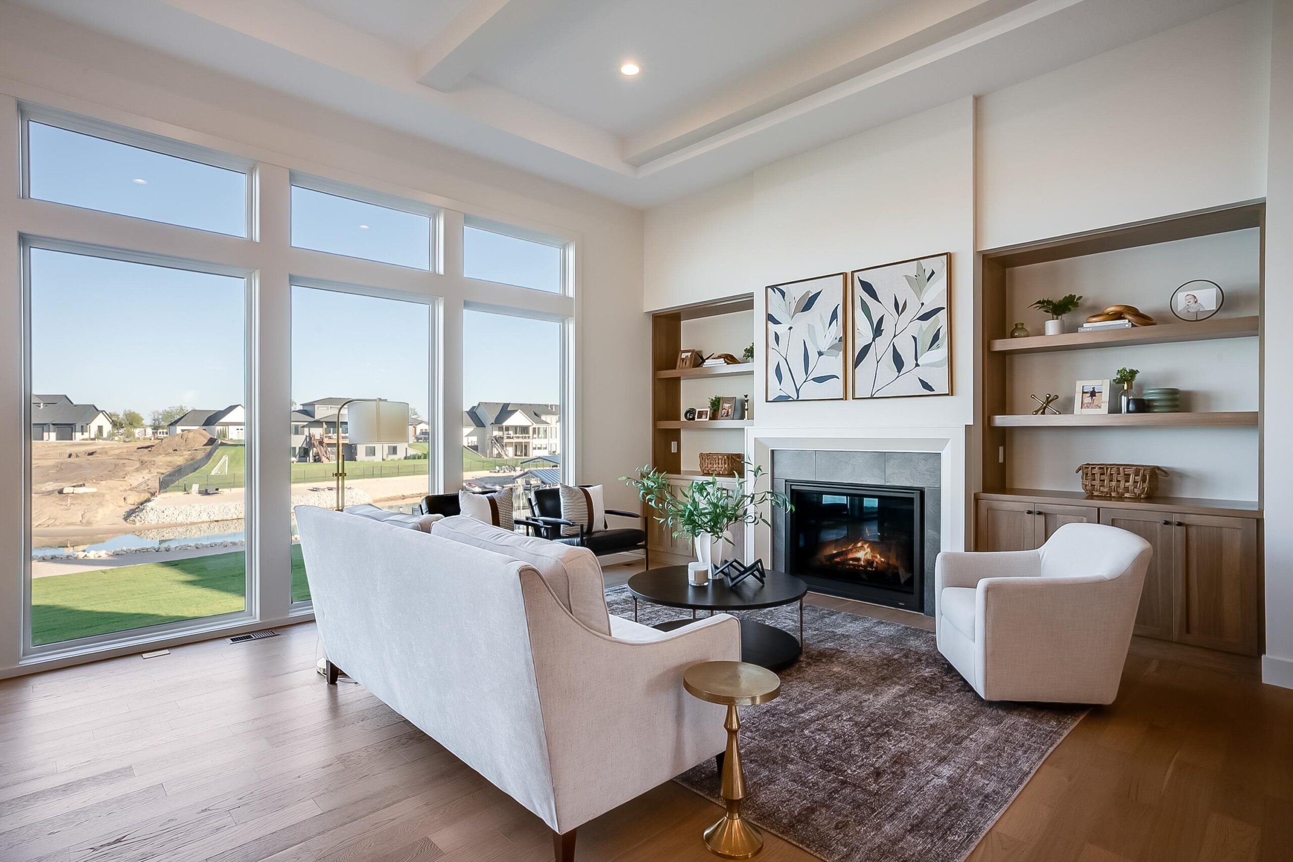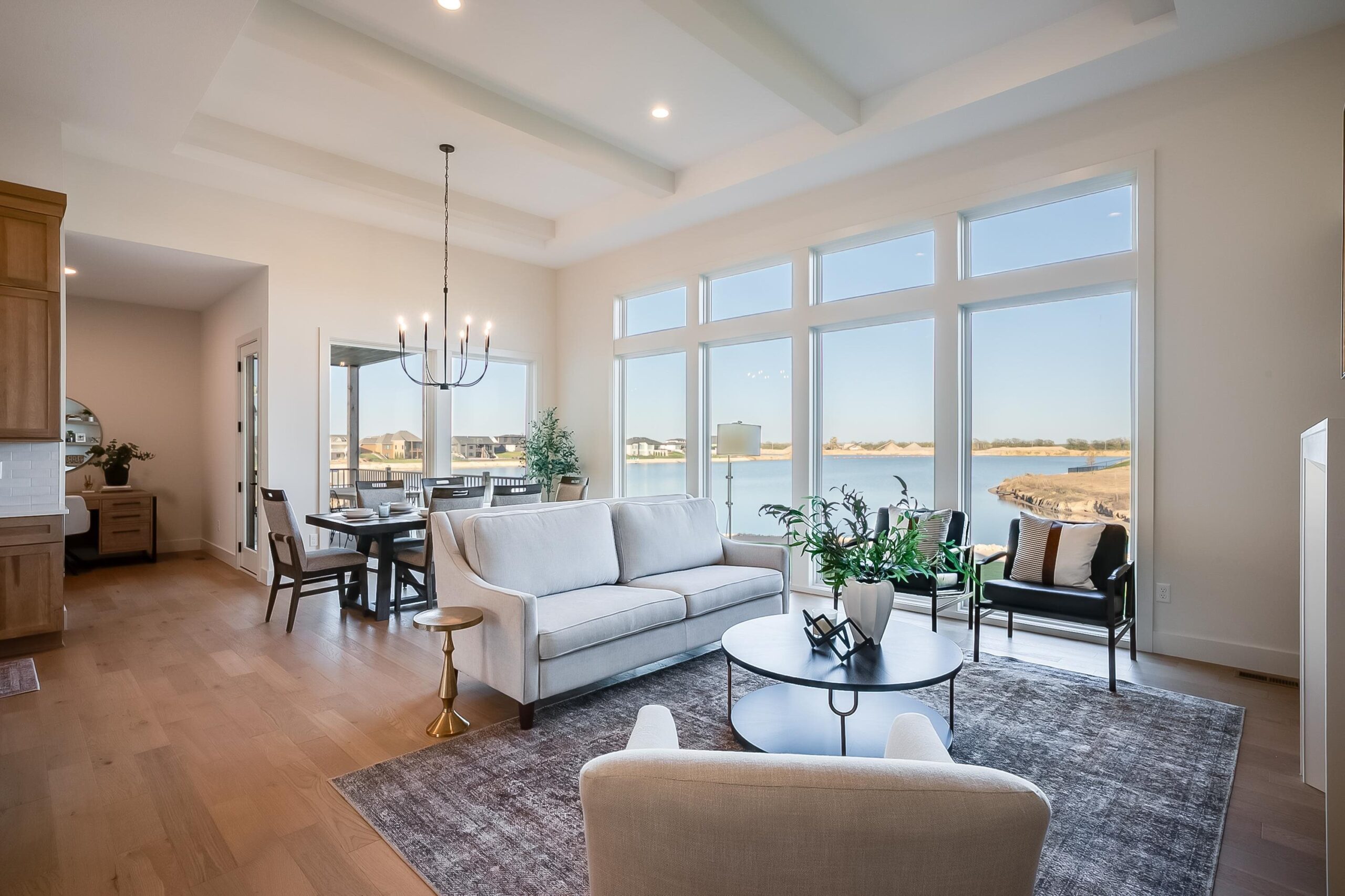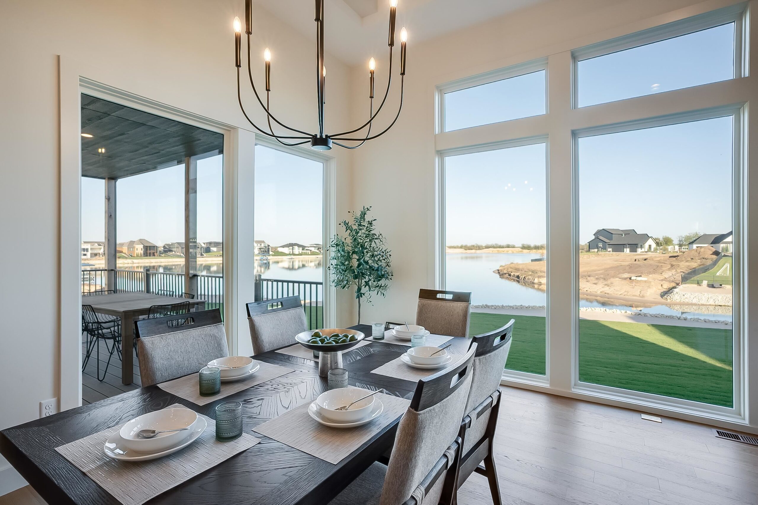 - Description: Welcome to The Linden Plan by Nies Homes—where luxury meets lake life in the exclusive Castaway community. Situated on a premium lakefront lot, this home boasts a timeless elevation with rich brick, wood accents, dormer windows, and an elegant arched entryway. Inside, you're greeted by soaring ceilings, a grand living room with floor-to-ceiling windows showcasing breathtaking water views, and a stunning fireplace flanked by custom built-ins. The gourmet kitchen features a 10’ island, gas range, double ovens, walk-in pantry, and endless cabinetry. The luxurious Master Suite includes a spacious bedroom, dual vanities, custom tile shower with dual heads, and a private dressing room. Main floor also offers two additional bedrooms with walk-in closets accompanied by a stylish hall bath, a private office, a convenient half bath for guests, and access to the covered deck. The walk-out basement impresses with 9' ceilings, expansive living space, game room with wet bar, two more large bedrooms, and two baths—one perfectly placed for easy access from your private beach. Step outside to your covered patio and enjoy direct access to the 140-acre spring-fed boating lake. Castaway offers unmatched amenities including a lakeside clubhouse, pool, playground, basketball court, and public beach areas. Live every day like a vacation—right here at Castaway. Some information may be estimated and is not guaranteed. Please verify schools with USD 266. Show all description