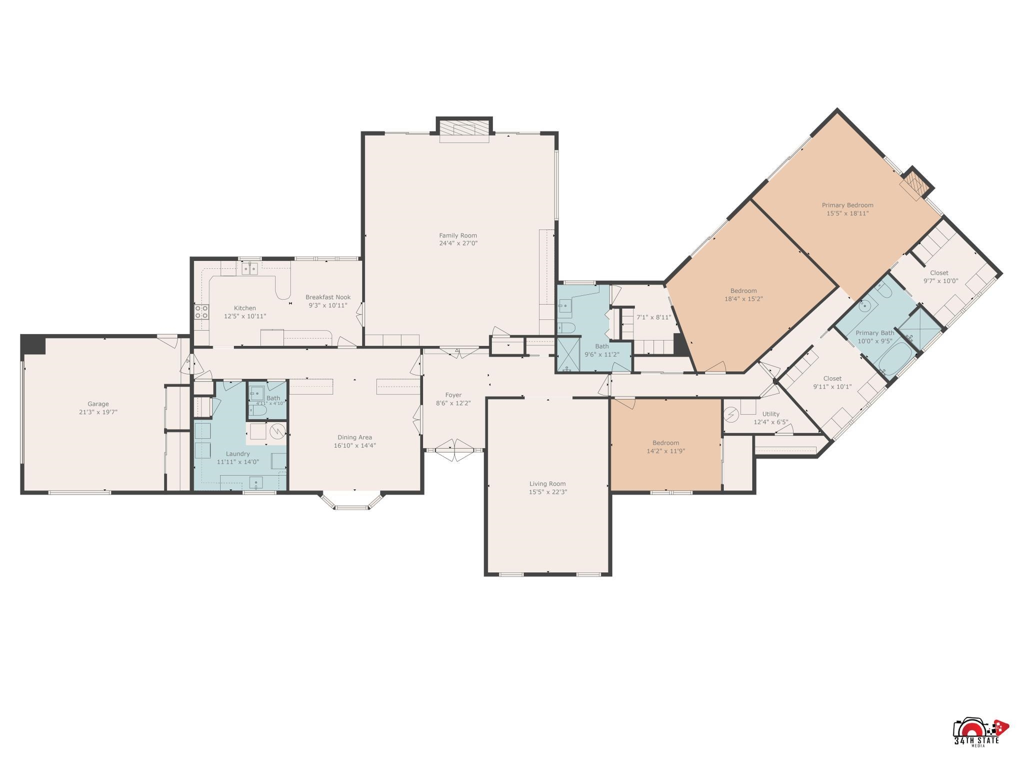- Rooms: Room type Dimensions Level Master Bedroom 15'5" x 18'11" Main Living Room 15'5" x 22'3" Main Kitchen 21'8" x 10'11" Main Family Room 24'4" x 27'0" Main Master Bedroom 18'4" x 15'2" Main Bedroom 14'2" x 11'9" Main Dining Room 16'10" x 14'4" Main Foyer 8'6" x 12'2" Main Laundry 11'11" x 14' Main