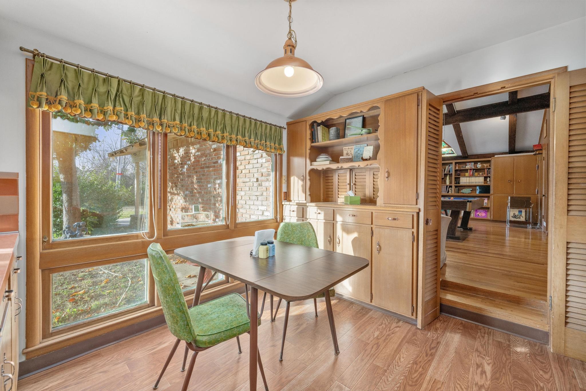 - Description: STUNNING MID-CENTURY RANCH ON JUST UNDER AN ACRE Nestled on a quiet street in Willow Lakes Estates, this 3, 633 sqft. true ranch offers iconic mid-century style with modern convenience. Minutes from Bradley Fair, WSU, Koch Industries, restaurants, and major highways, the home features multiple large gathering spaces with hardwood floors, exposed beams, and inviting warm wood tones. The stunning great room impresses with a brick fireplace, built-ins, wet bar, and clerestory windows that bathe the space in natural light. The formal dining room, cozy den, and vintage-inspired kitchen with pass-through and breakfast nook add to the home’s charm and functionality. Rare dual primary suites each include an en suite bath and backyard patio access—perfect for multigenerational living, guest space, or a home office. All bedrooms are generously sized with ample storage. The backyard offers a private and peaceful retreat with mature trees a LOT of space. A circular driveway and attached, two-car garage add practicality and curb appeal. Full of character and thoughtful design, this home is a must-see. Schedule your private showing today! Show all description