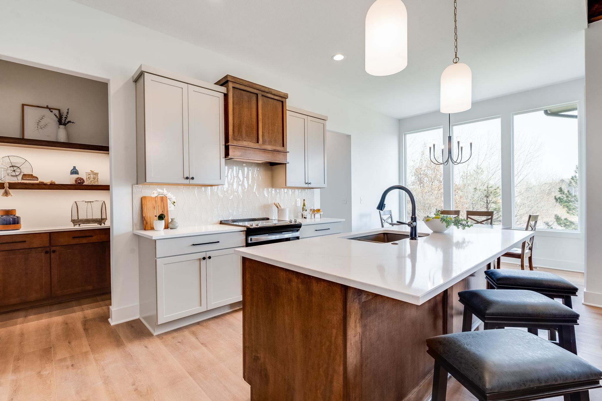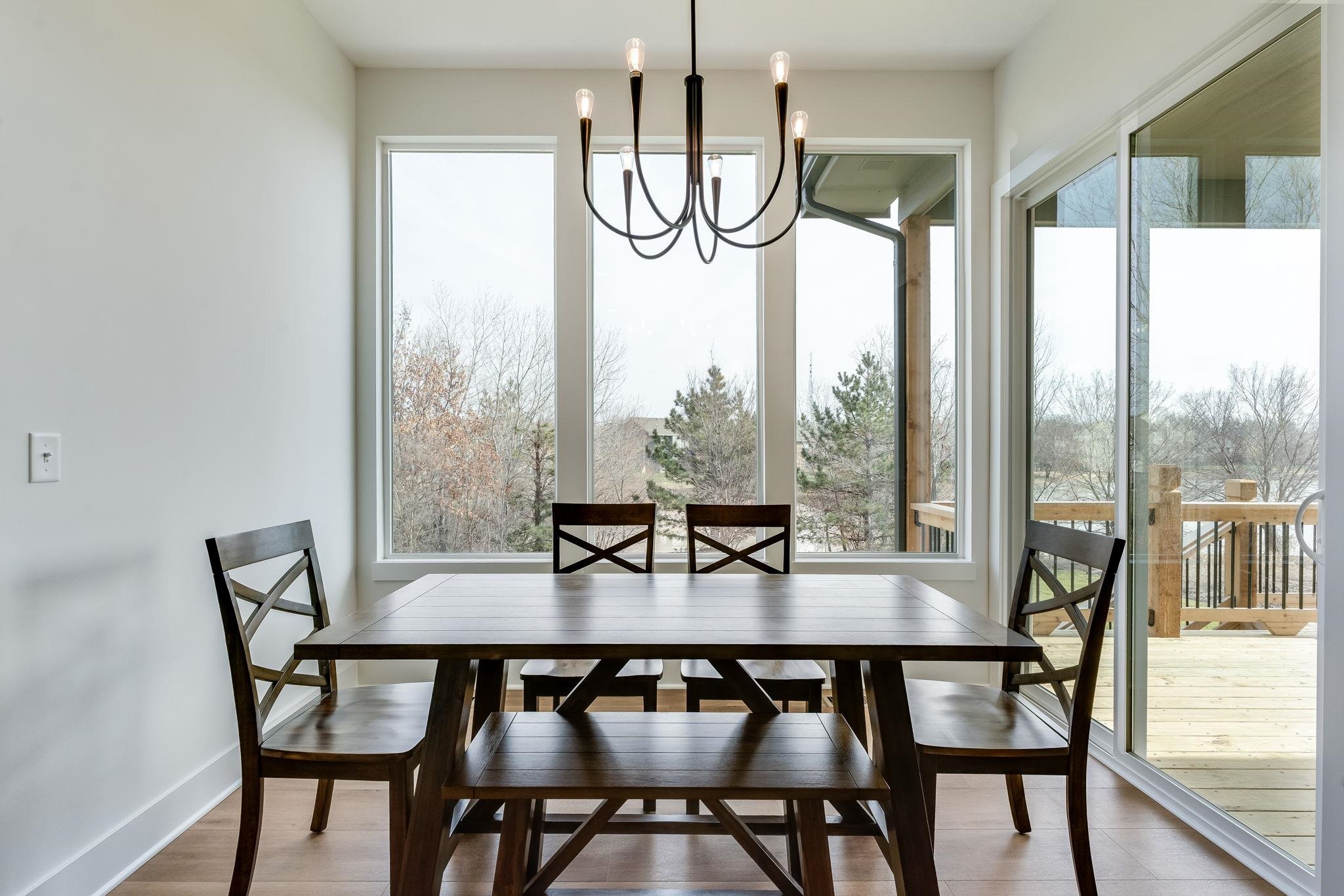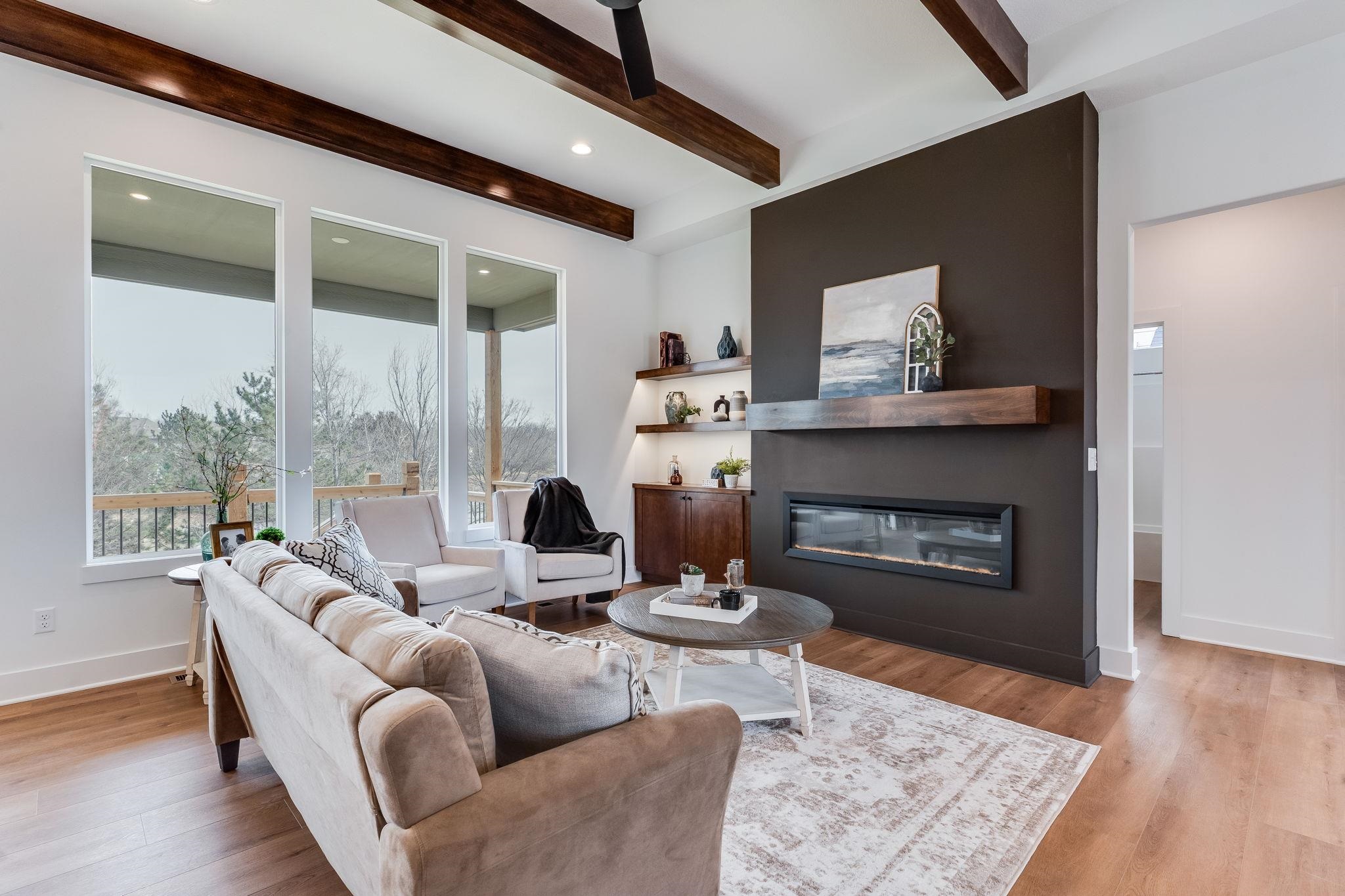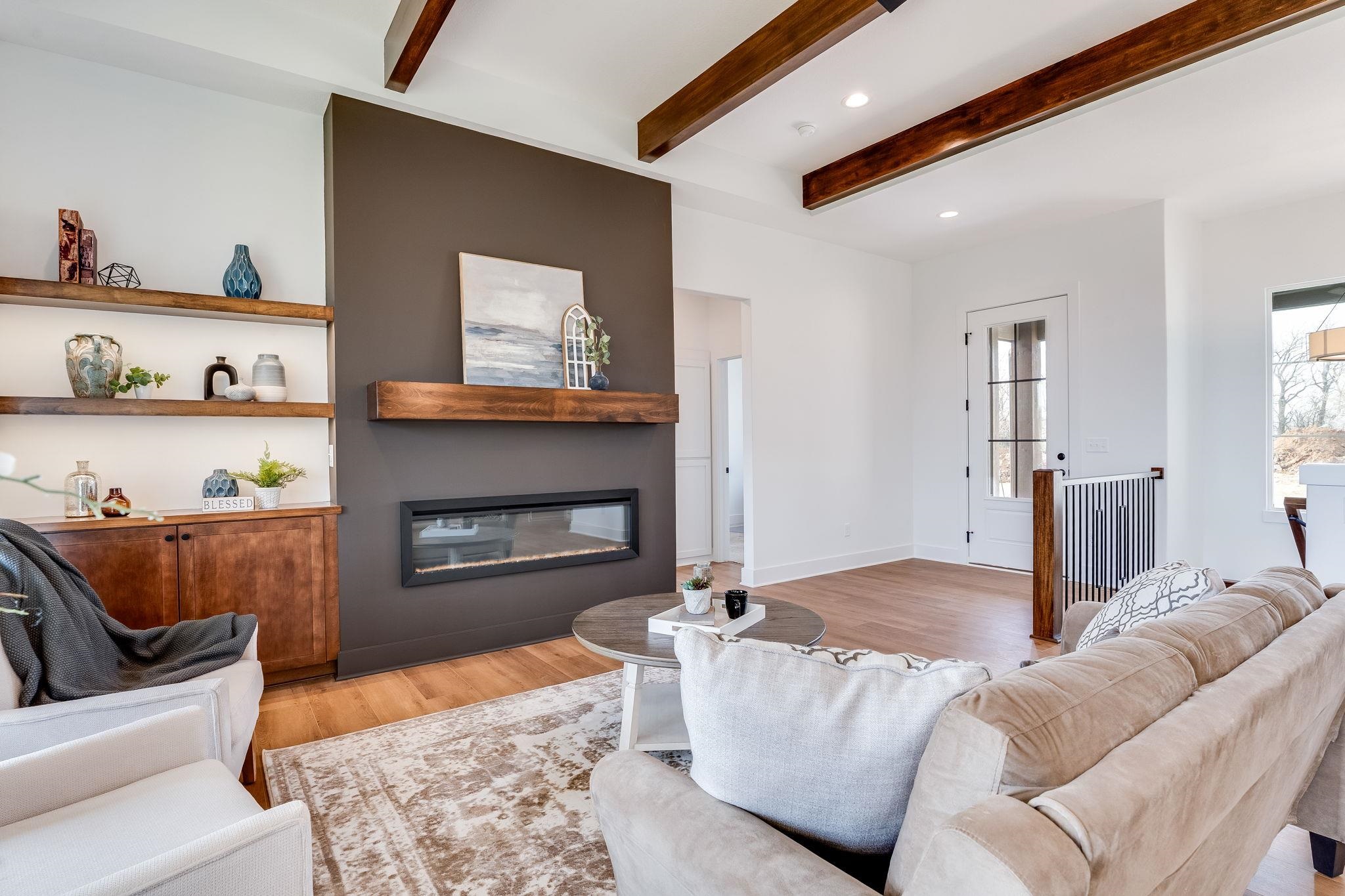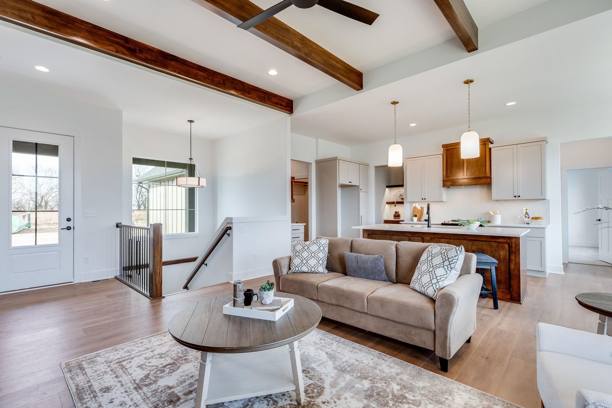 - Description: The Oakley floor plan by M&M Construction is now available for purchase. This great split 3 bedroom design with open kitchen/dining and great room with LVP flooring, quartz counter tops, decorative electric fireplace and floating with shelves and beamed ceiling. The master has large walk in shower with double shower heads, double vanities and walk in closet. There is a covered deck that overlooks the water view with an east backyard. The lower level is unfinished but could be added to this delightful home. Price includes sprinkler system, sod and landscaping. Show all description