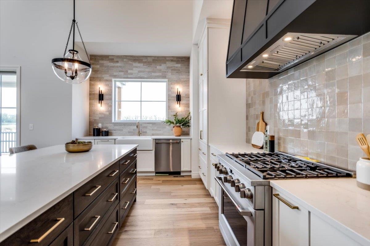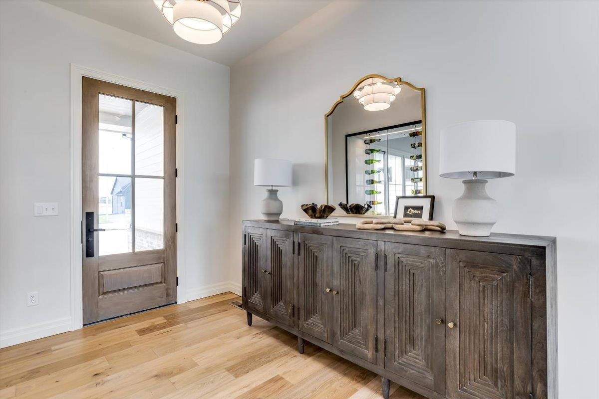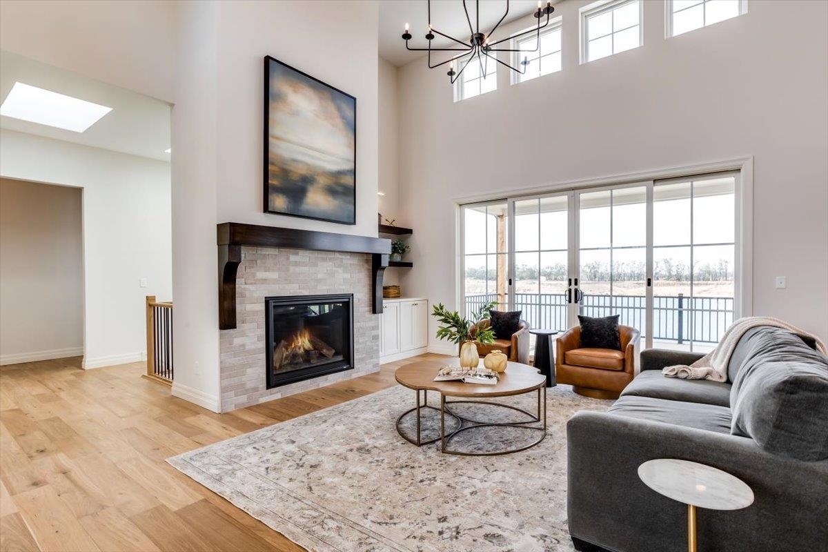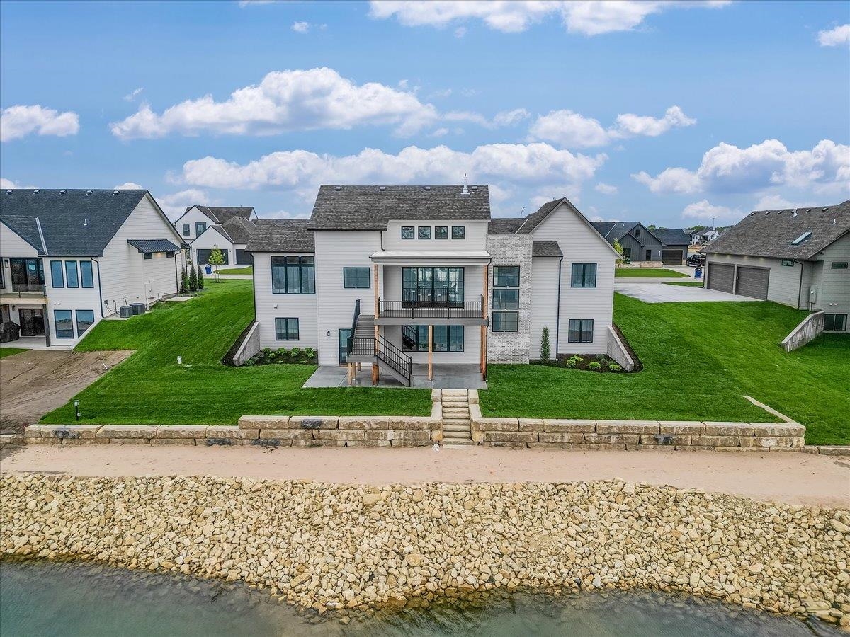 - Description: Introducing the All-New Willow Plan by Nies Homes – Where Sophisticated Design Meets Lakeside Living. Step into a lifestyle of luxury with the Willow Plan by Nies Homes, perfectly nestled in a quiet cul-de-sac on a prime lakefront lot in Castaway—Wichita’s premier spring-fed surf lake community. This architectural masterpiece is designed for those who appreciate stunning views, thoughtful details, and effortless indoor-outdoor living. From the moment you arrive, the Willow Plan captivates. A charming front courtyard—accessible from the dining room—welcomes you with a private seating area, setting the tone for the elegant experience inside. The grand entryway opens to soaring 16’ ceilings and breathtaking two-story windows that frame panoramic lake views. A striking glass wine rack artfully separates the dining room, creating a bold and refined focal point. The main living area is both inviting and impressive, with a gas fireplace, towering ceilings, and walk-out access to the expansive covered deck—the perfect setting for entertaining or simply soaking in the tranquil lakefront scenery. The chef-inspired kitchen is beautifully appointed with a large island, premium Café appliances, and a spacious walk-in pantry. Retreat to the luxurious Master Suite featuring a spa-like bath with a tile shower, soaking tub, and a generouswalk-in closet with direct access to the laundry room for added convenience. Two additional main floor bedrooms share a stylish Jack & Jill bath, offering comfort and privacy for family or guests. The walkout lower level expands your living space with a spacious family room, wet bar, and two more bedrooms—each with walk-in closets—and a full bath with direct access to the backyard for easy beach-day cleanups. A large storage area offers flexibility for a future home theater or game room. Outside, enjoy your own lakeside oasis with a ground-level patio with custom limestone steps down to the private beach area overlooking Castaway’s pristine spring-fed waters. The Willow Plan is more than a home—it’s a destination. Some information may be estimated and is not guaranteed. Pricing is subject to change without notice. Please verify schools with USD 266. Show all description